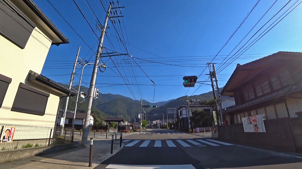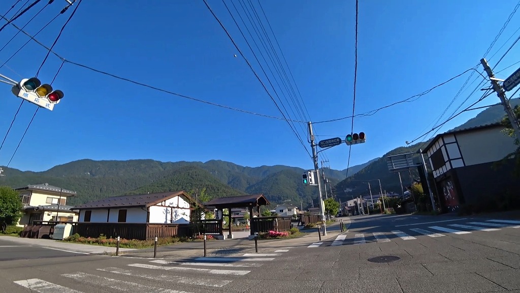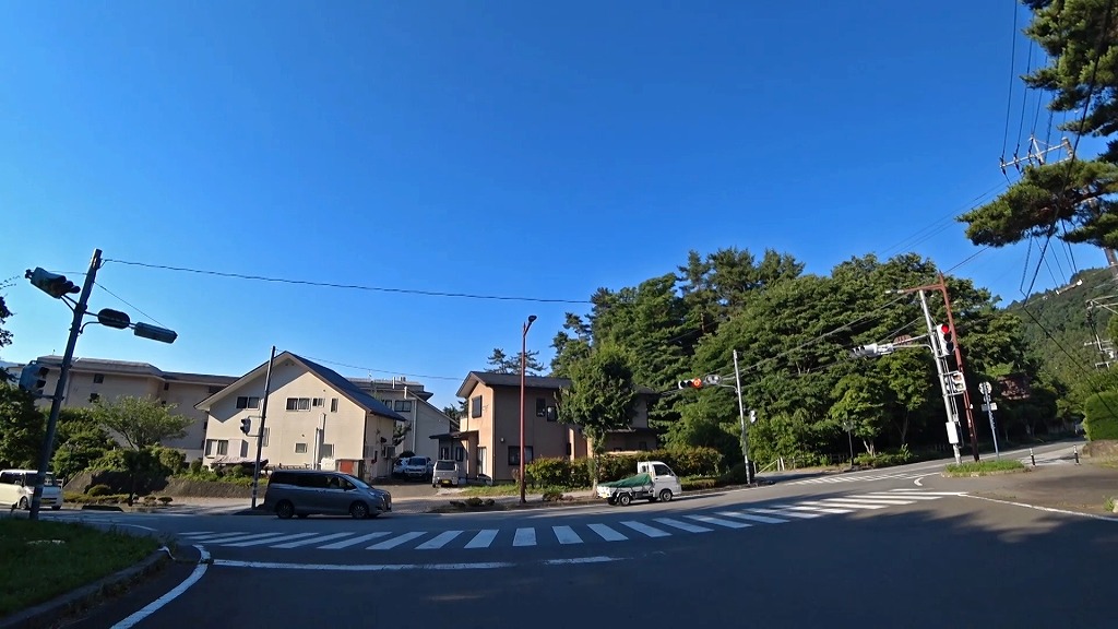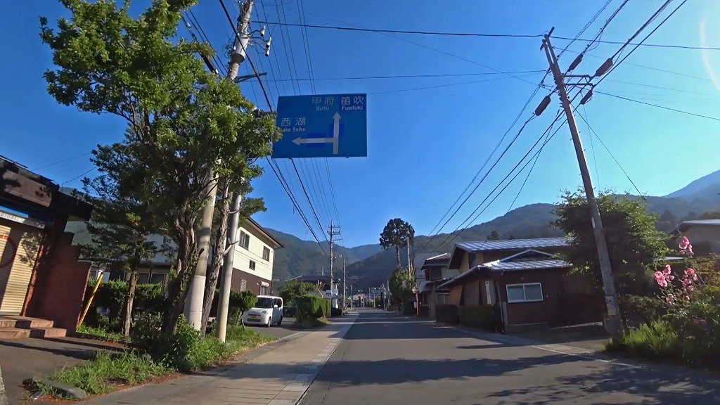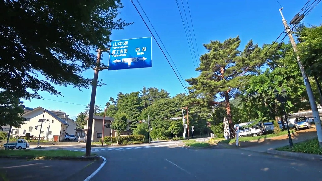 (S)スタートは山梨県南都留郡富士河口湖町にある河口浅間神社前交差点(信号あり)から