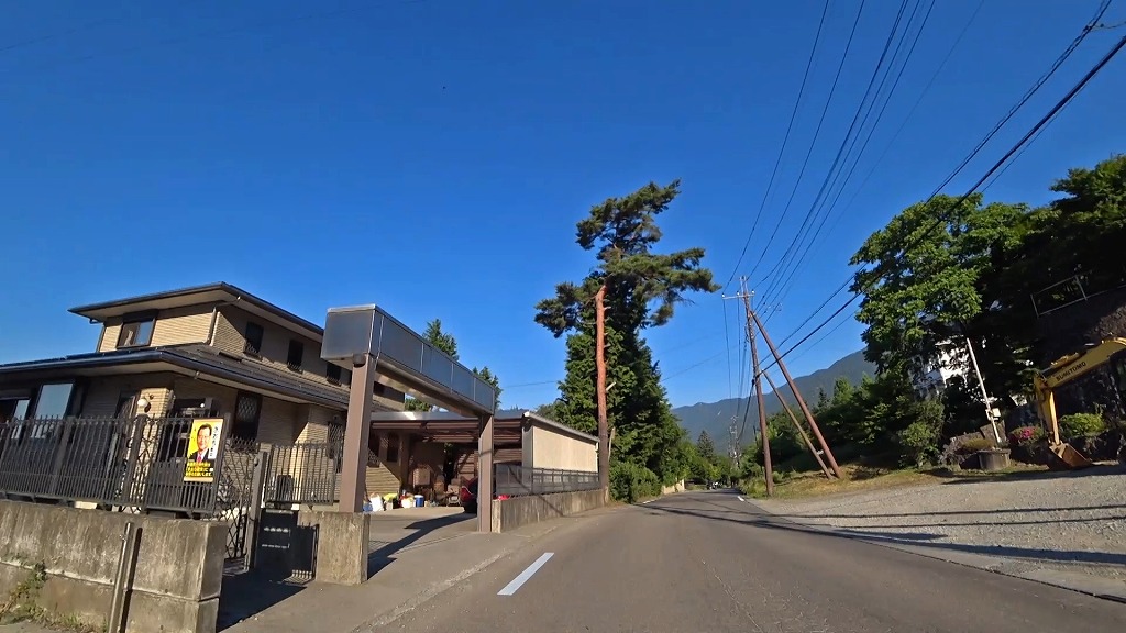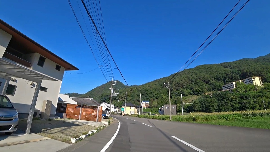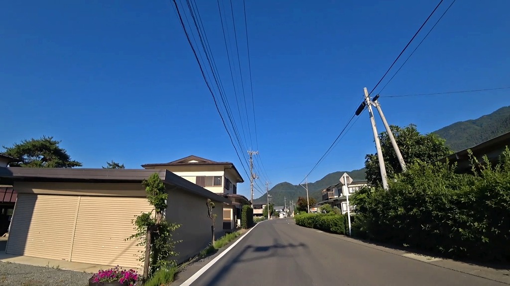 暫く進むとセンターラインのある道になりますが、道の周辺には民家多し。