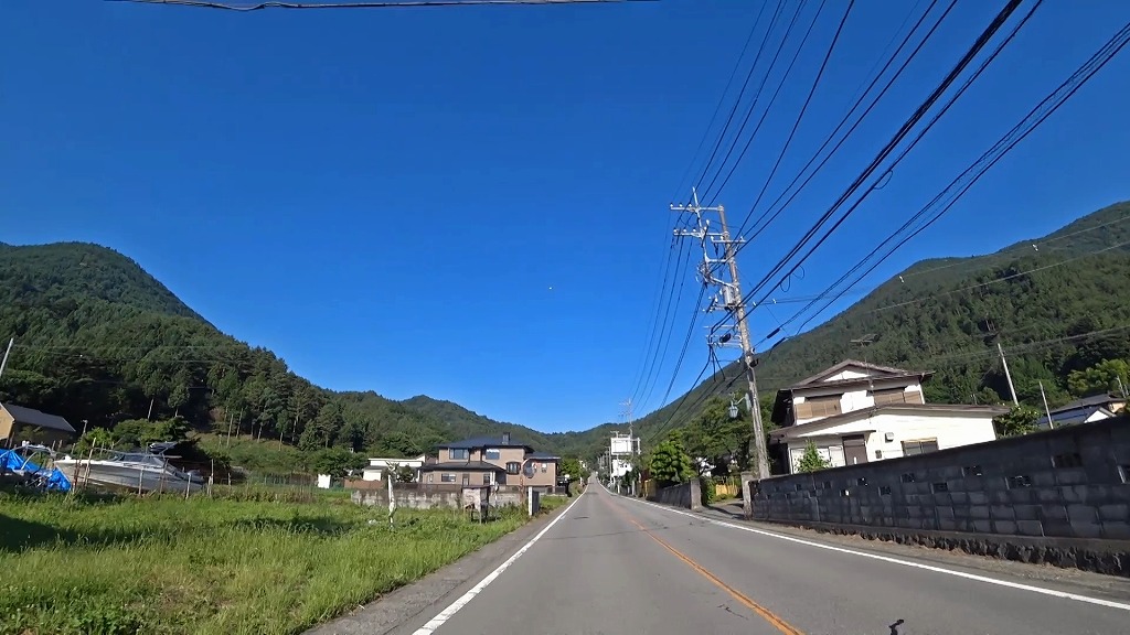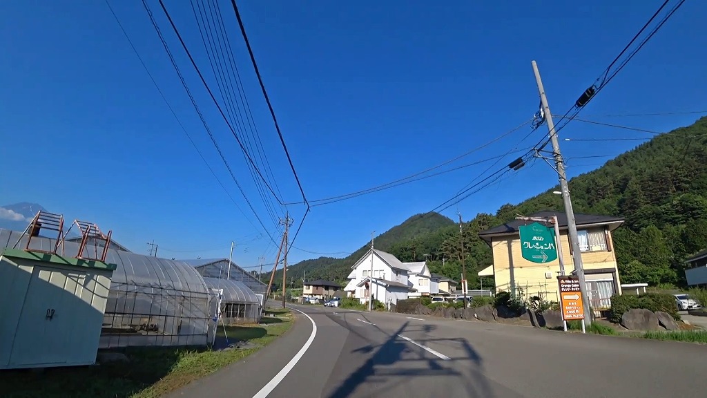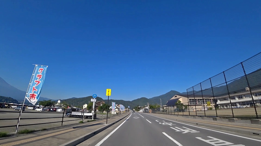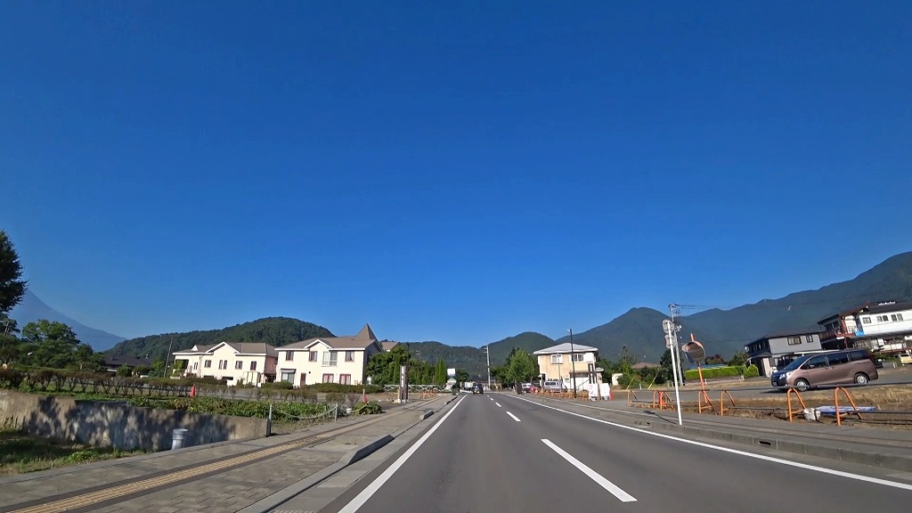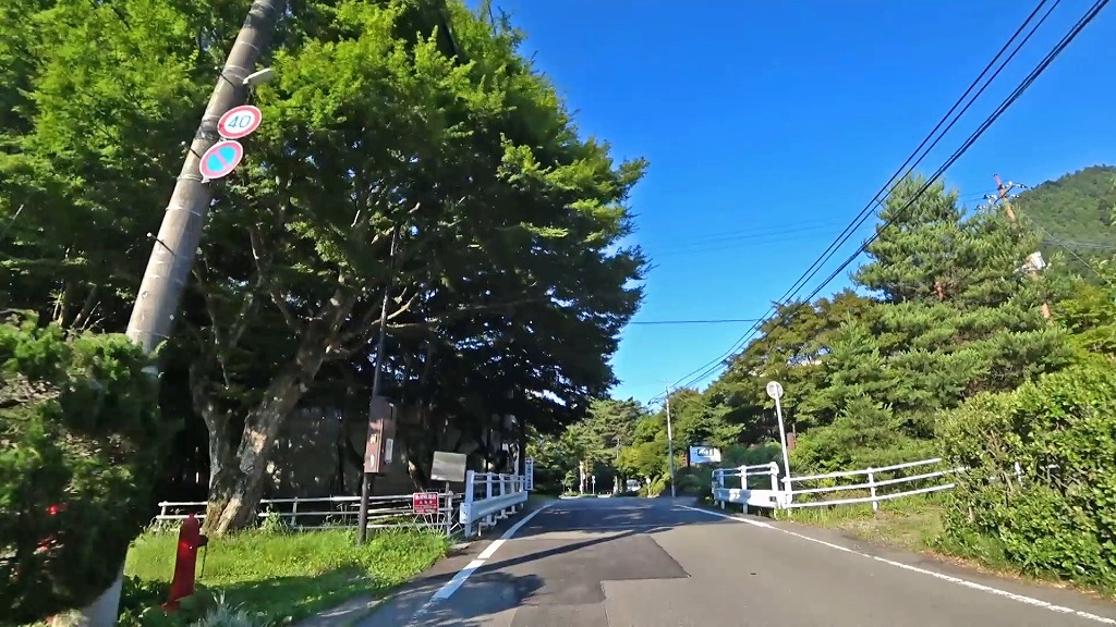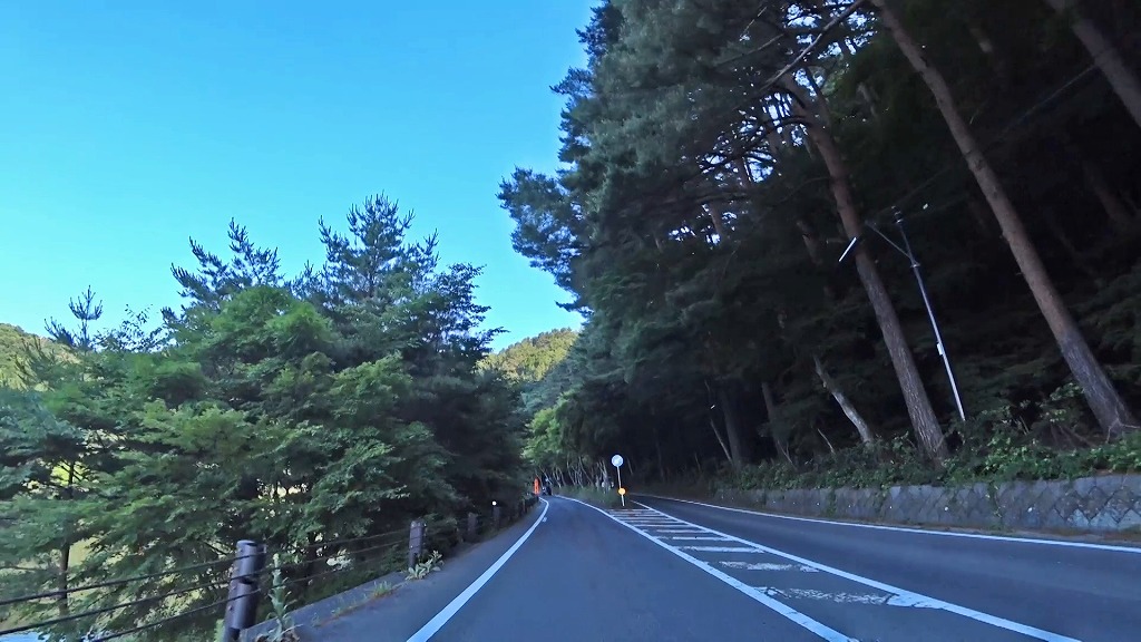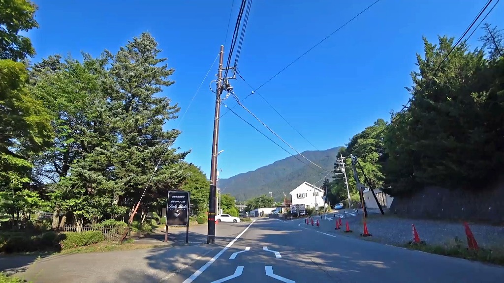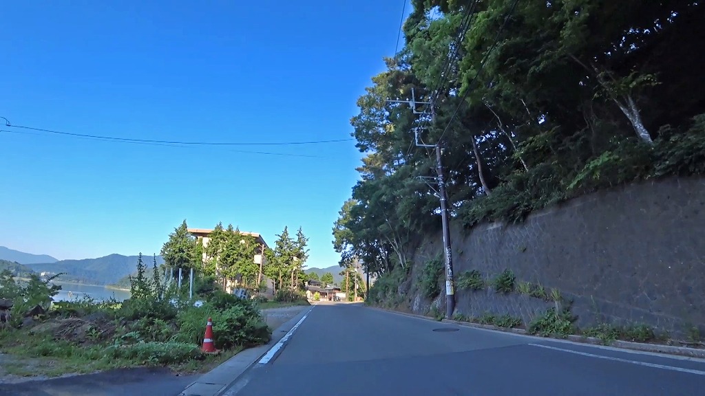 河口湖とは違い、ずっと片側一車線の道が続きます。が、圧迫感のあるやや狭い道。