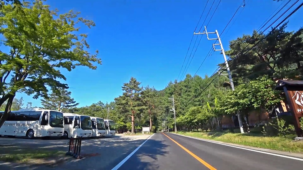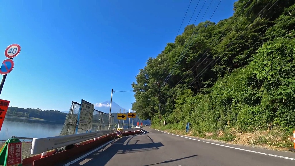 河口湖の観光施設周辺は綺麗に整備された道になっていますが、途中には工事中や狭い区間が存在するのでご注意下さい。