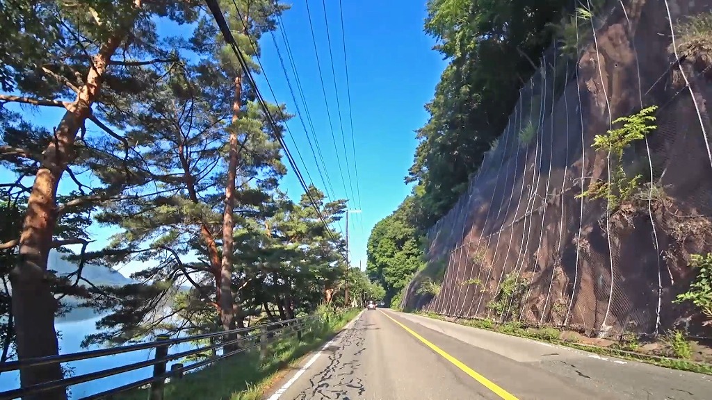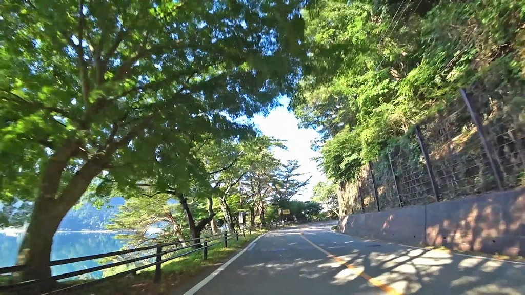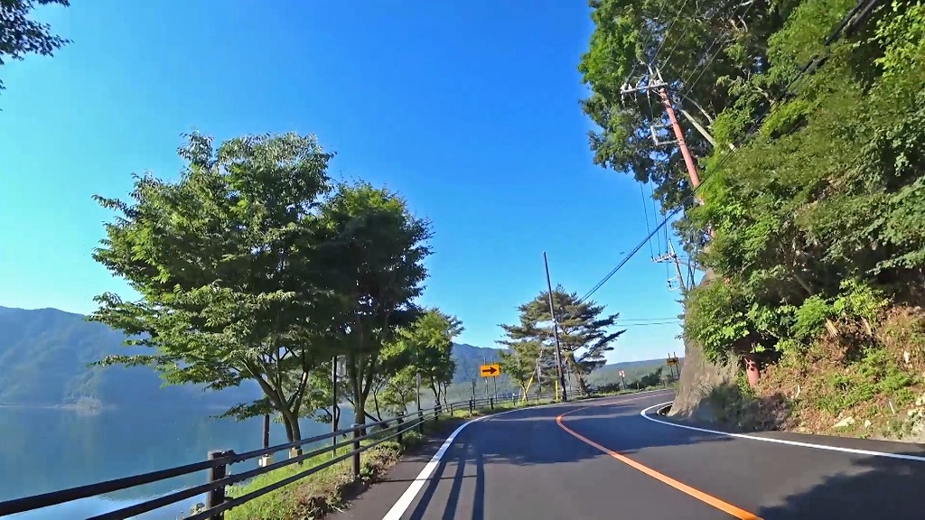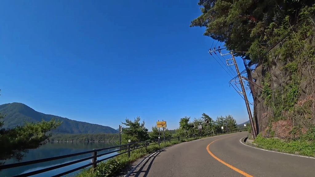 そして、この先。景色の良い場所を走るのですが、湖畔沿いの急なカーブが幾つもある区間になります。十分注意して下さい。J急カーブ