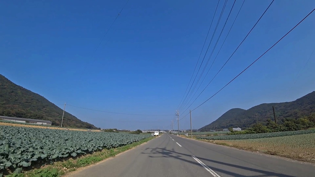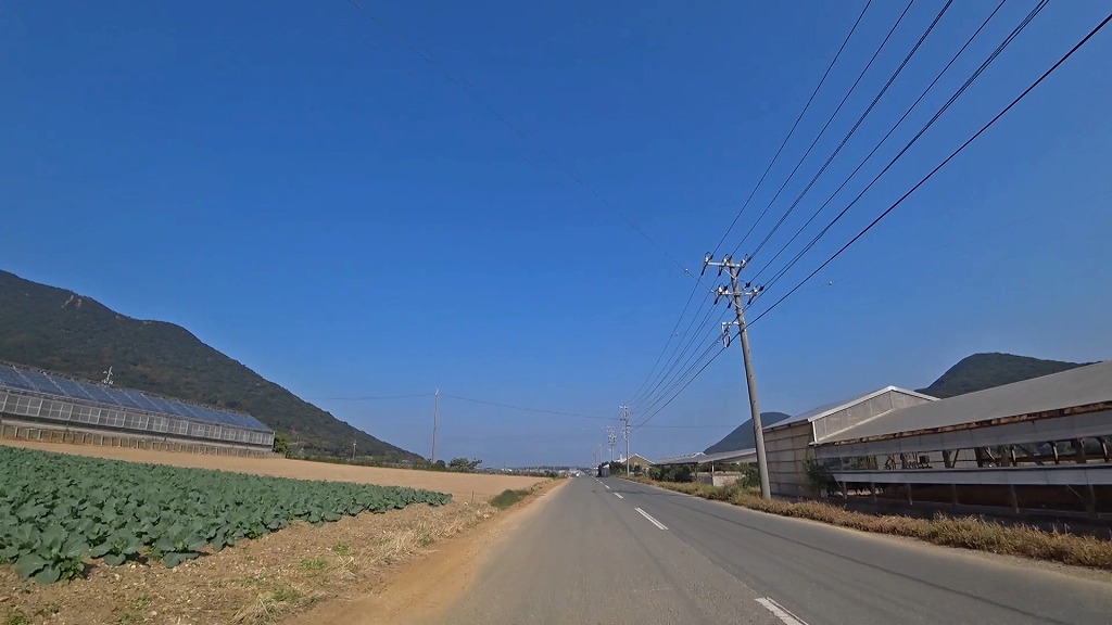 山道を降り終えると、農免農道らしい長閑な畑の中を進む道へ。