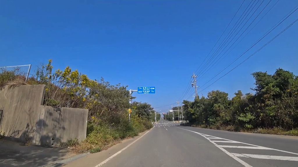 渥美農免農道の先へ進み、同じく田原市にある国道259号との交差点までの約6.5kmのドライブコースです。