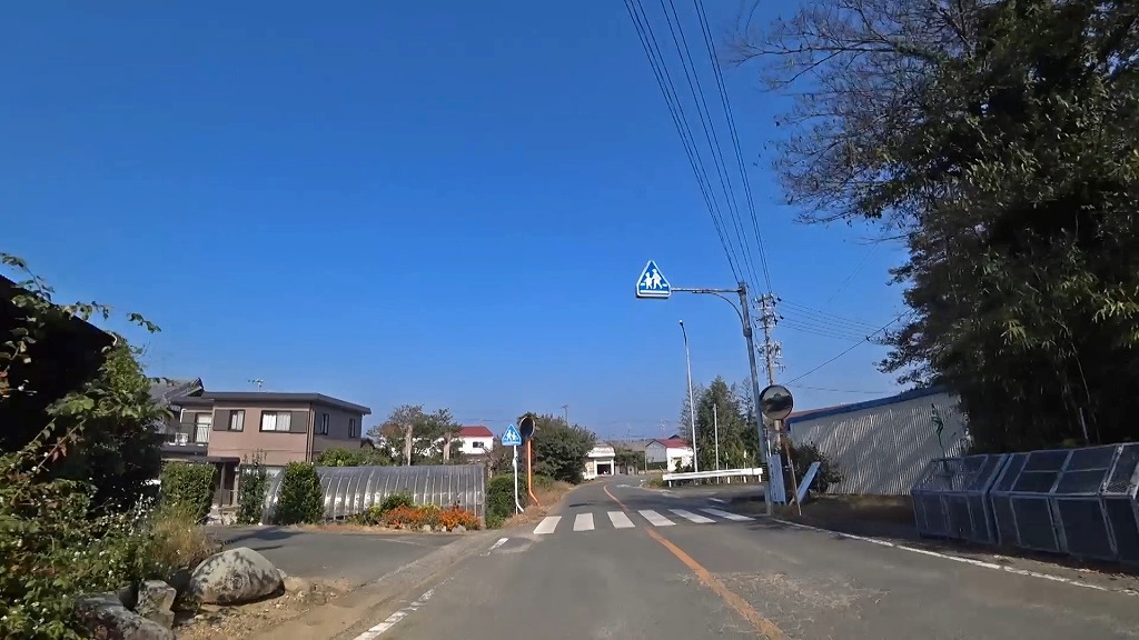 この辺りは民家との距離が近く、見通しの悪いカーブもあるのでA歩行者注意