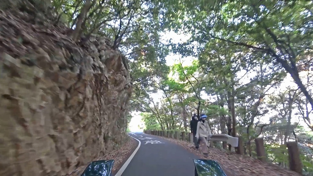 また、見通しも悪く、カーブは特に注意。@狭路、カーブ注意