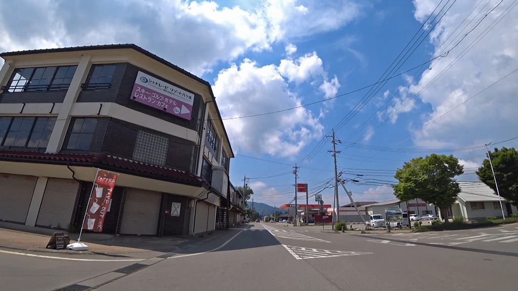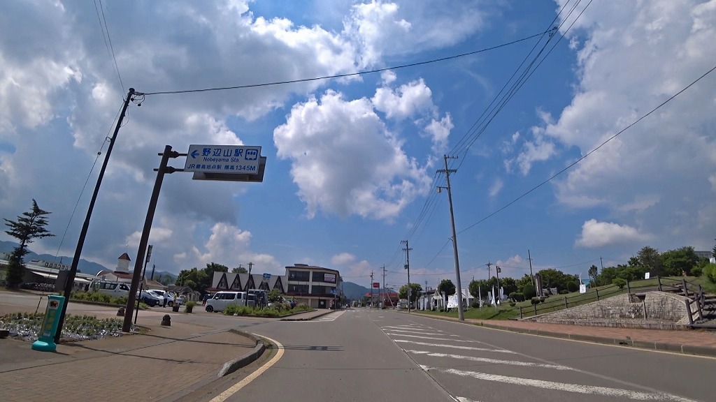 野辺山周辺の道は直線路が続き、周辺には店舗などが点在する道になっており、観光地っぽい雰囲気。