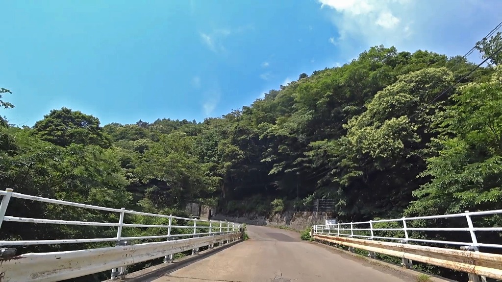 このカーブからの橋を渡った辺りから、少々狭い道に。