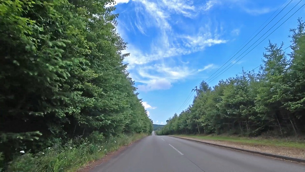 眺望は木々に囲まれた場所が多いですが、畑の中や牧場の様な草原が広がる場所などもある道になっています。
