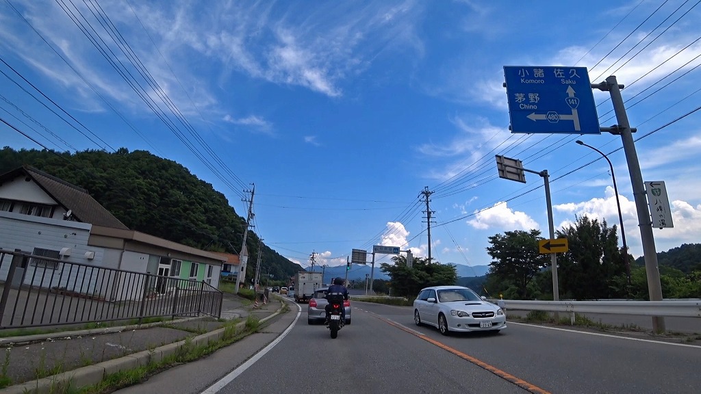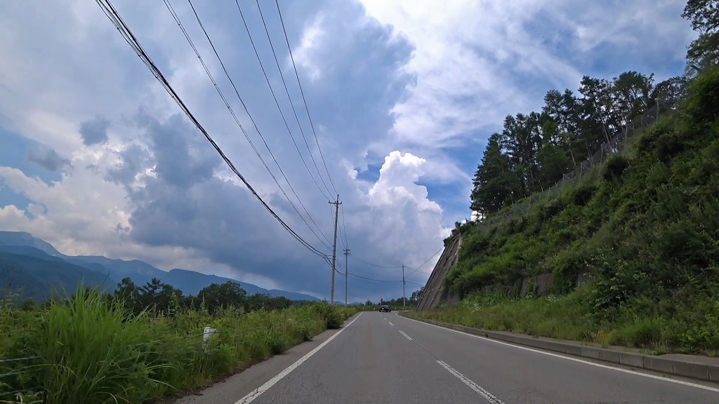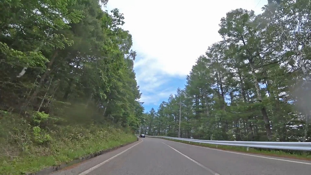 松原湖近くの道でやや狭い場所があったものの、それ以外の区間では走りやすい片側一車線の道。