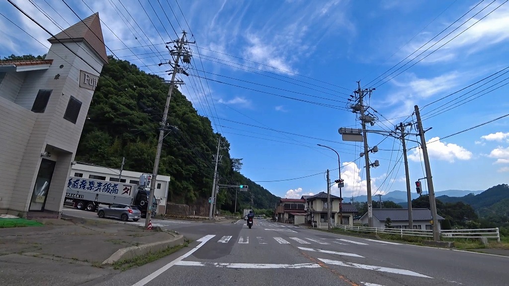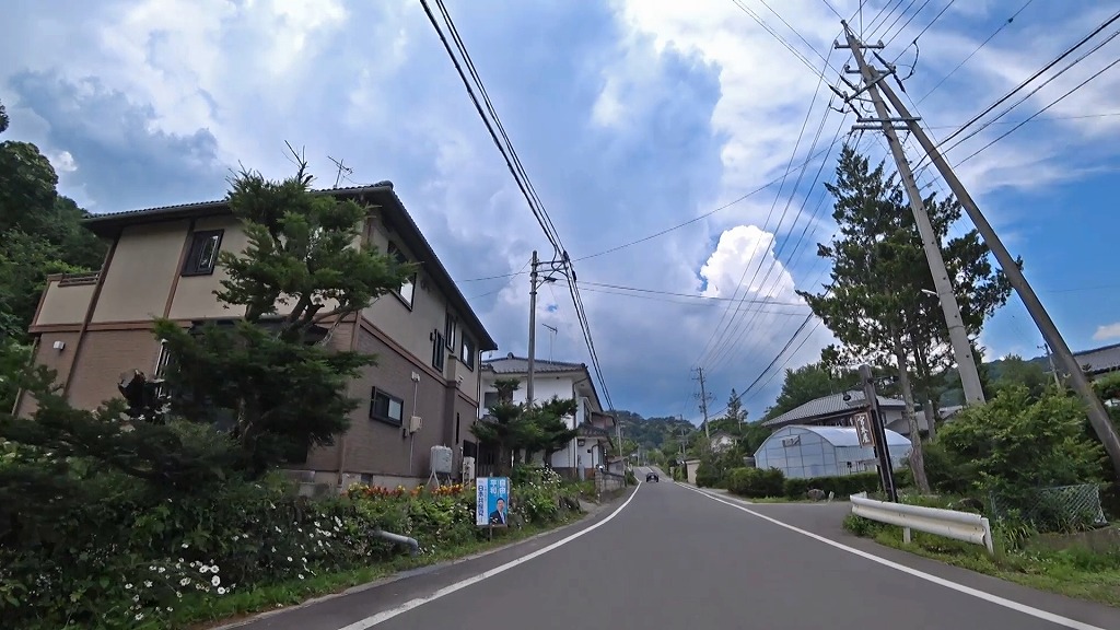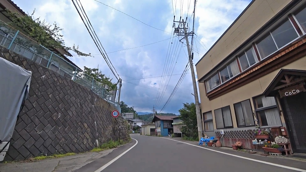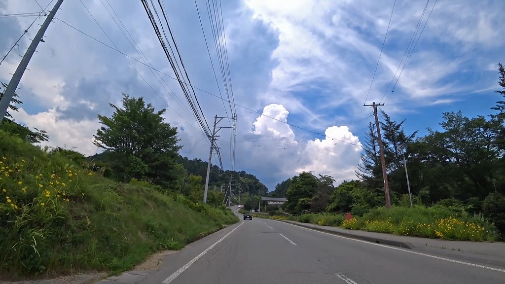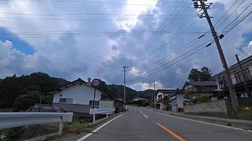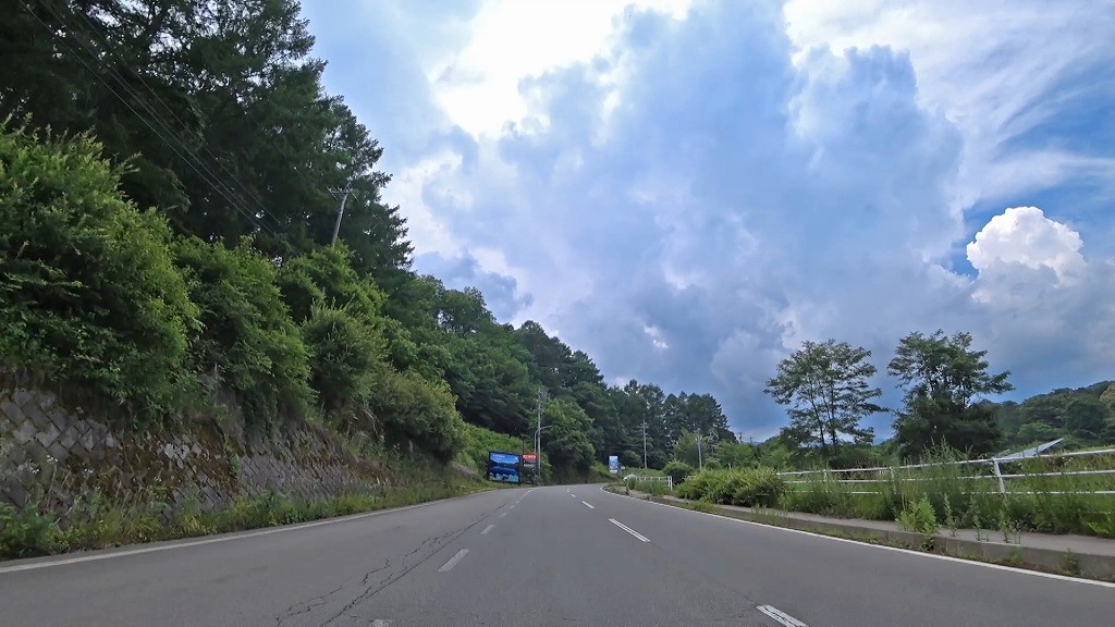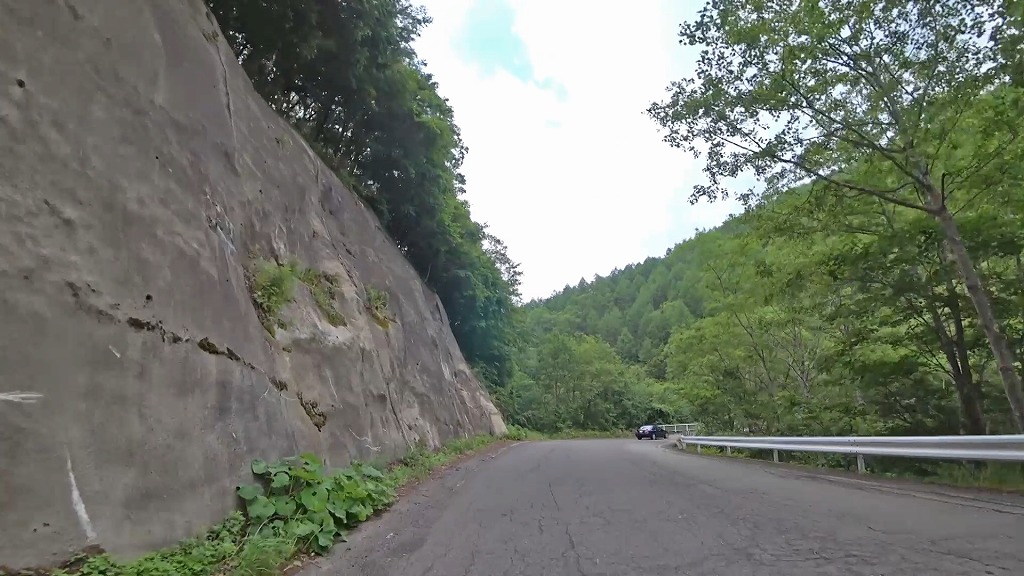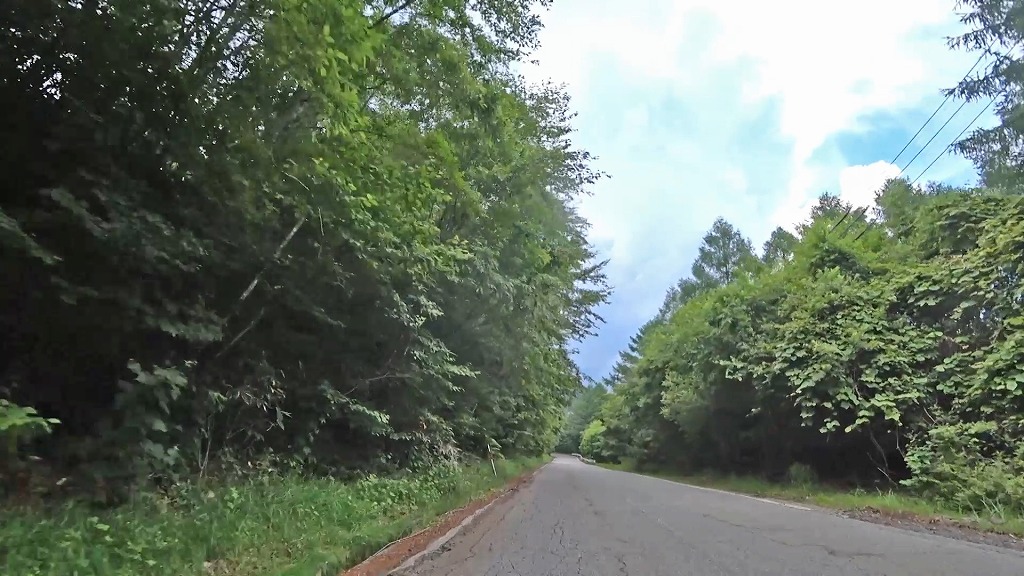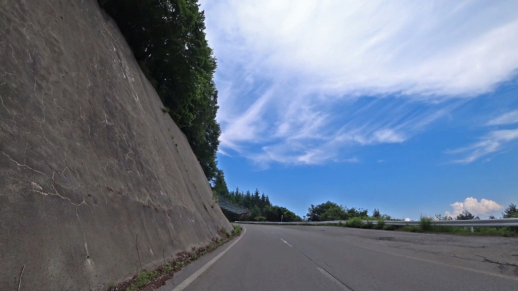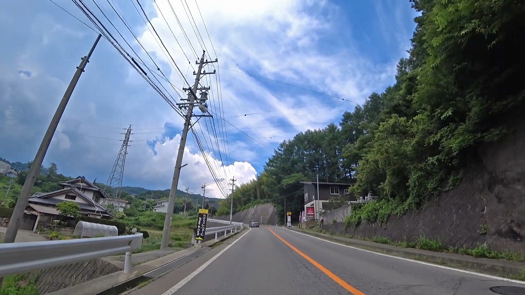 更に進むとセンターラインが消えかけているやや狭く感じる区間へ。