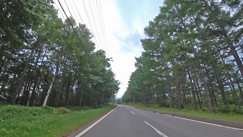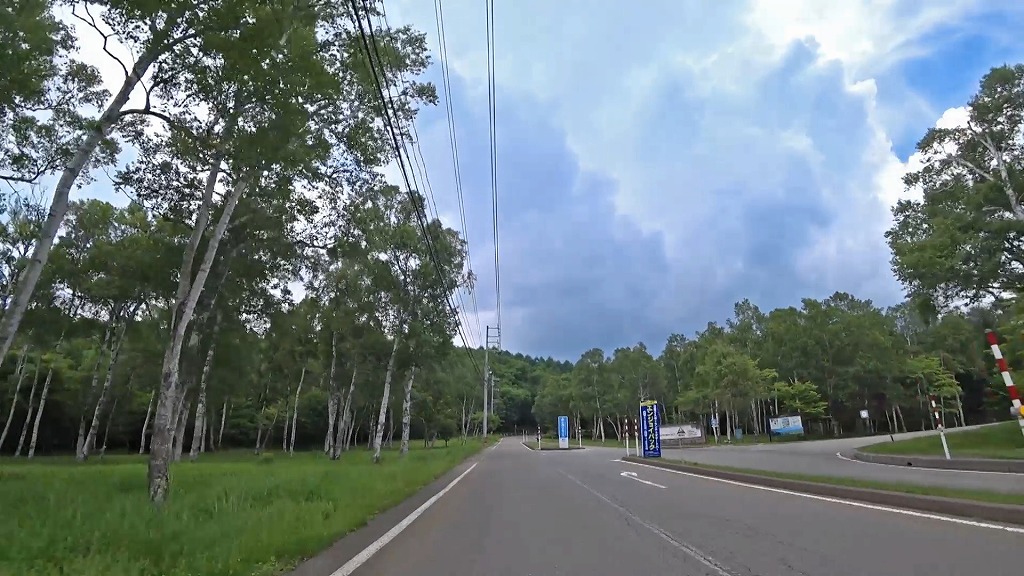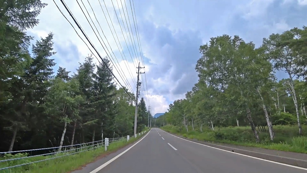 スキー場やゴルフ場の入口付近になると白樺に囲まれた道へ。