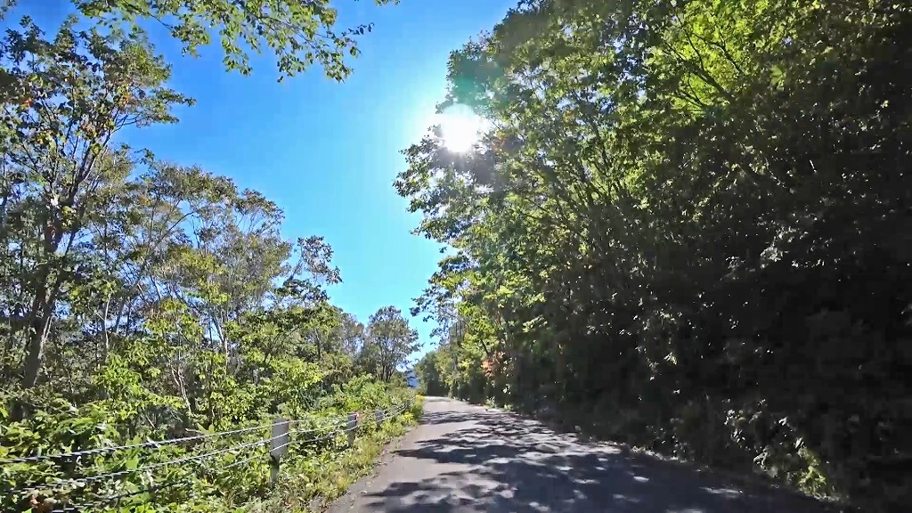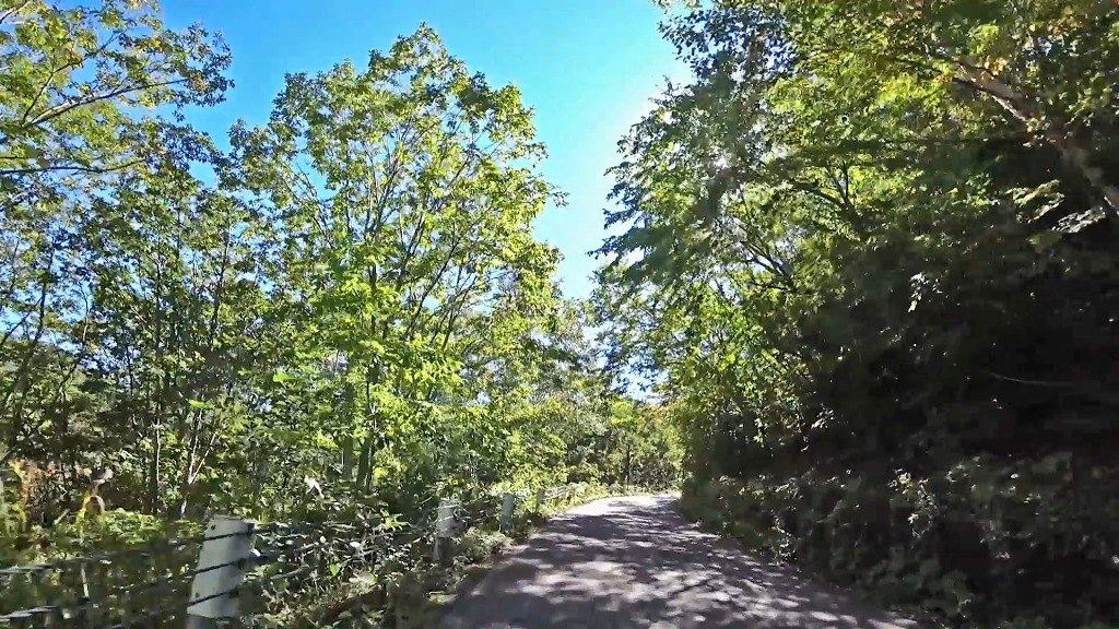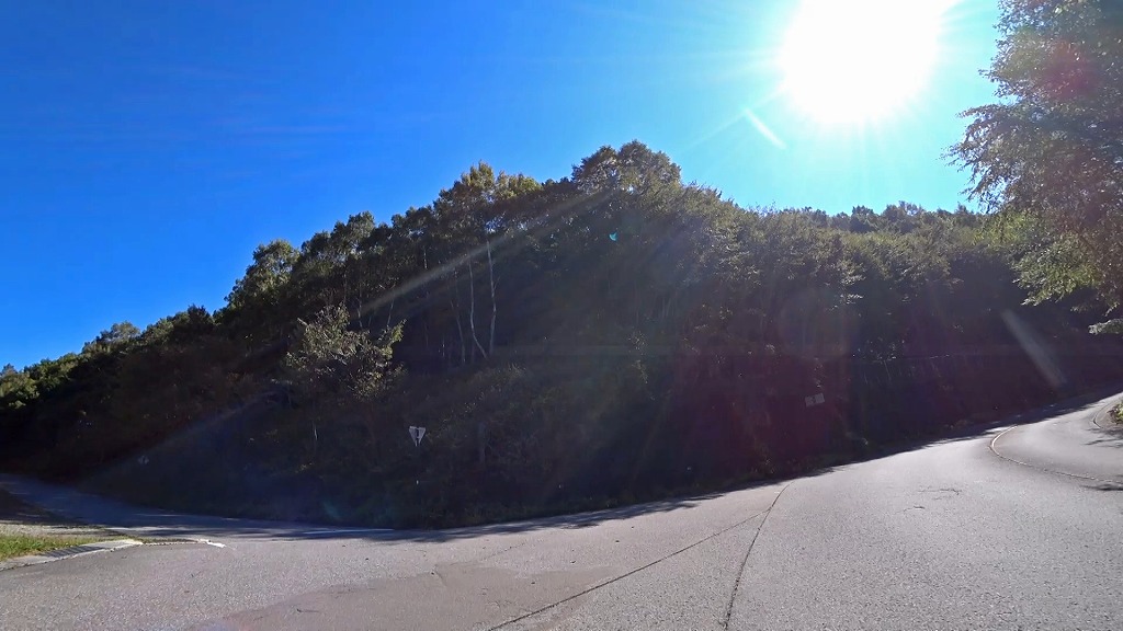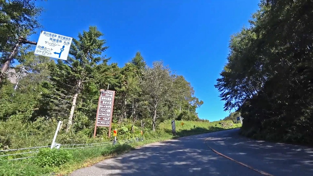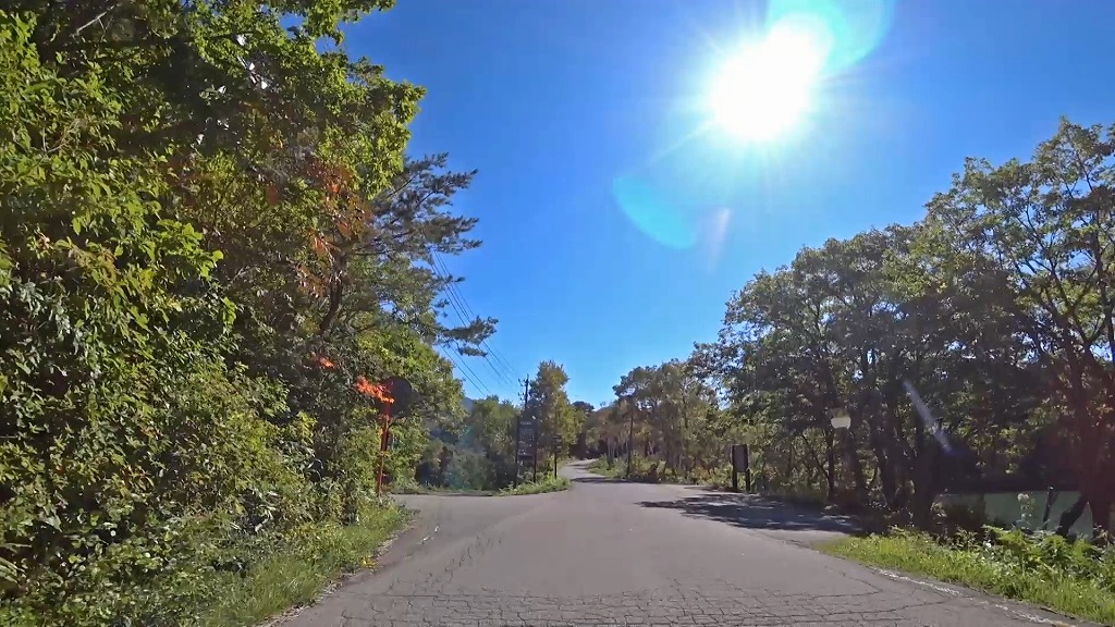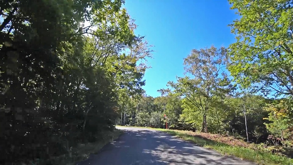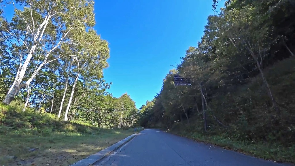 今回はこの白樺ルートを長野県下高井郡山ノ内町にある国道292号(志賀草津道路)との交差点(琵琶池:西側)から、同じく山ノ内町にある国道292号(志賀草津道路)との交差点(琵琶池:東側)までの約2.5kmのドライブコースです。