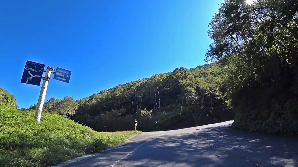 (S)スタートは長野県下高井郡山ノ内町にある国道292号(志賀草津道路)との交差点(信号なし)から(琵琶池の西側)