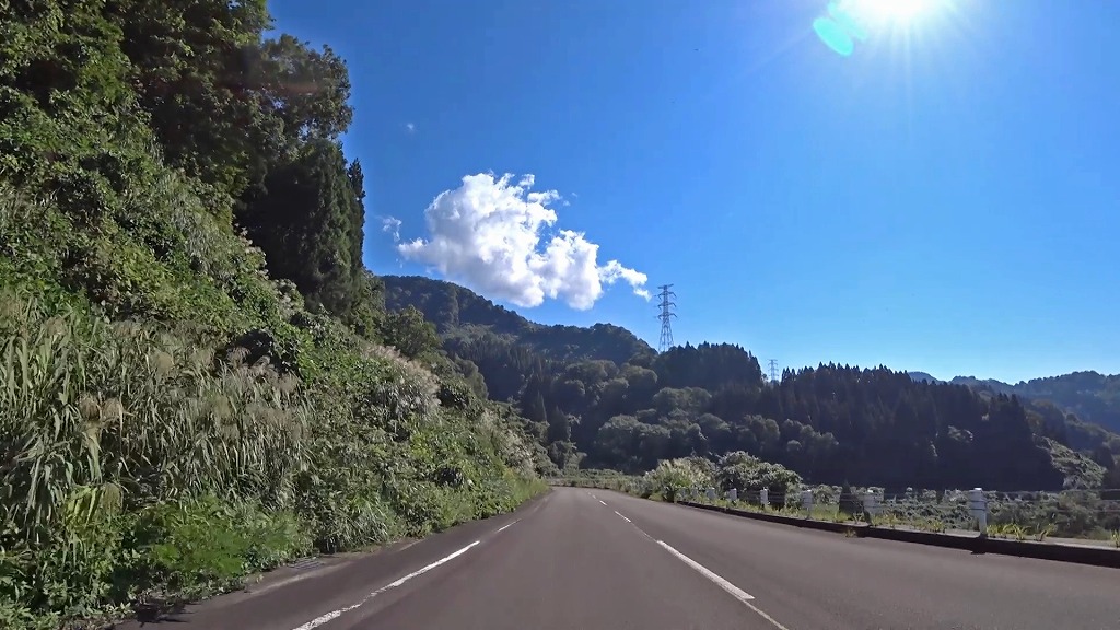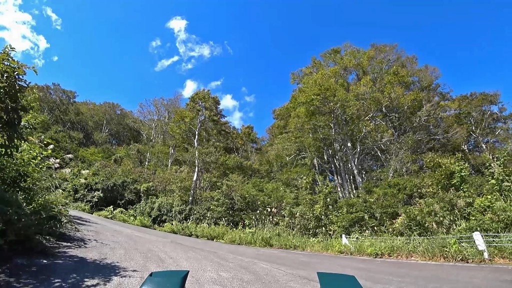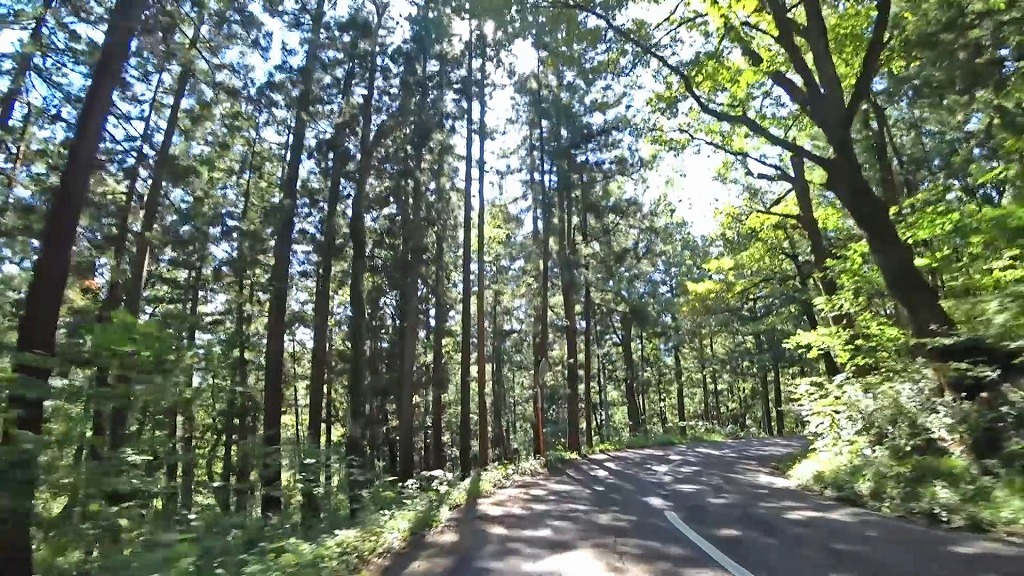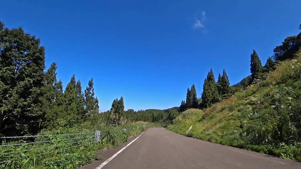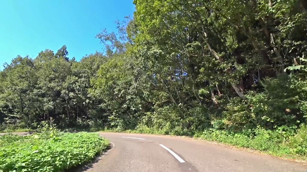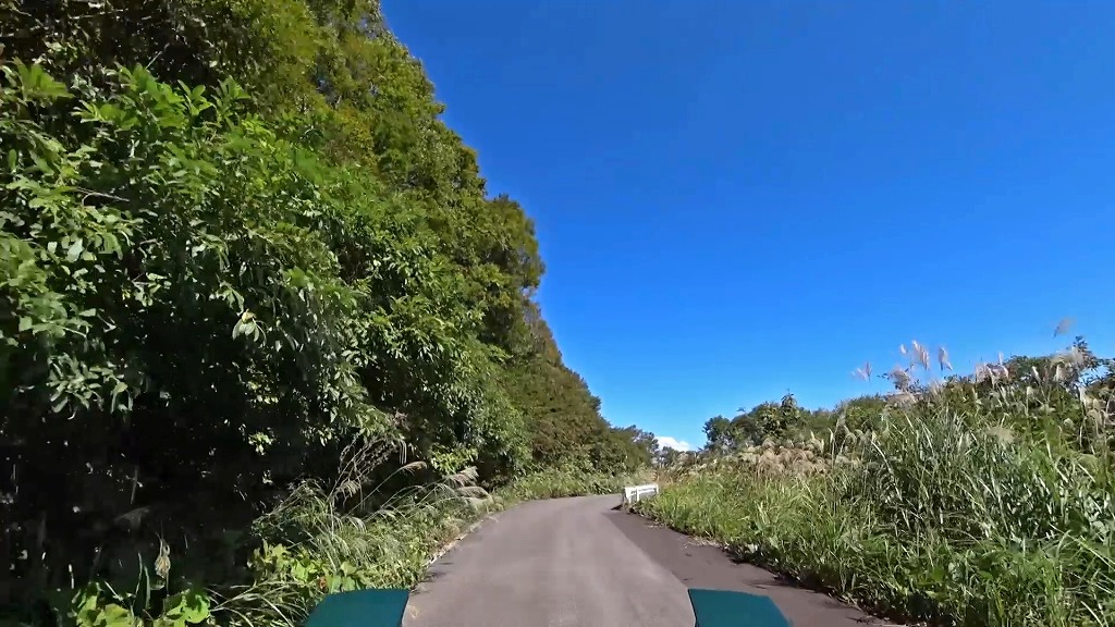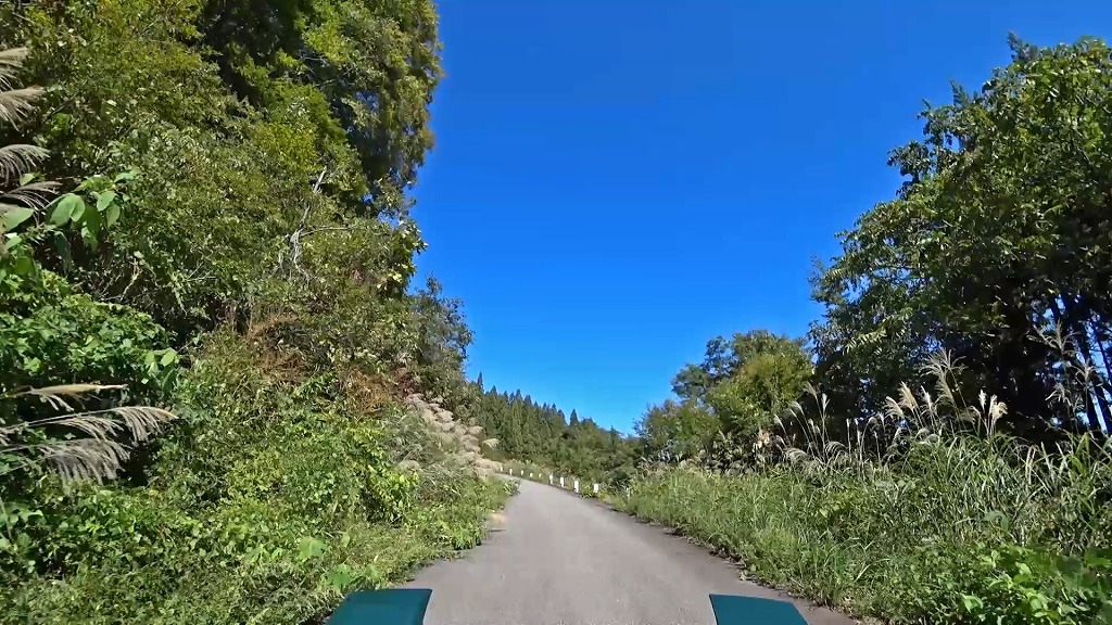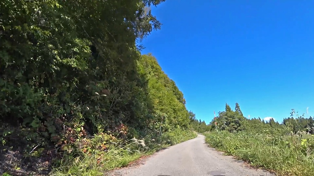 道幅は狭い場所が多いと言う訳ではありませんが、路肩から伸びた草木が道路上に迫出しており、かなり圧迫感があります。