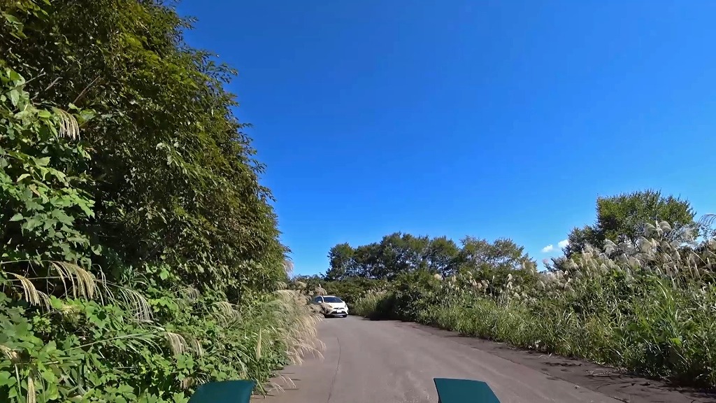 また、ススキの幻想的な景色とは裏腹に、カーブでのブラインドとなり対向車等の発見が遅れる可能性がありそうでした。