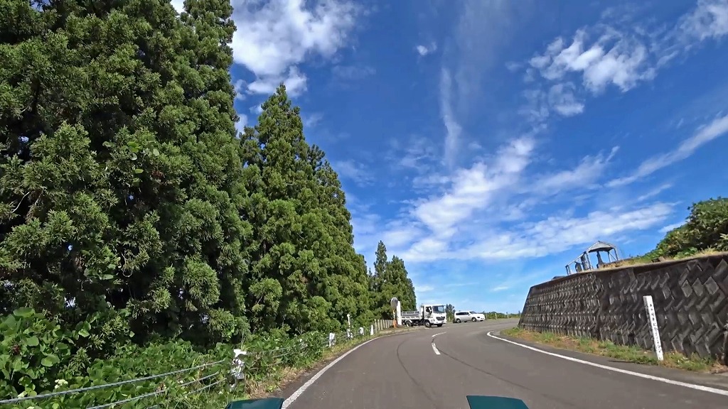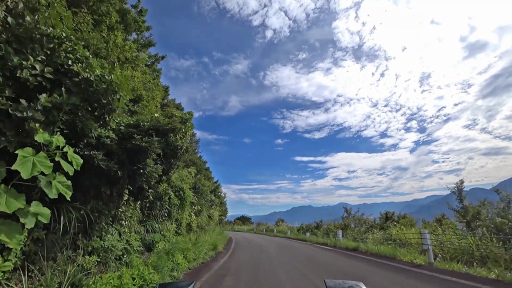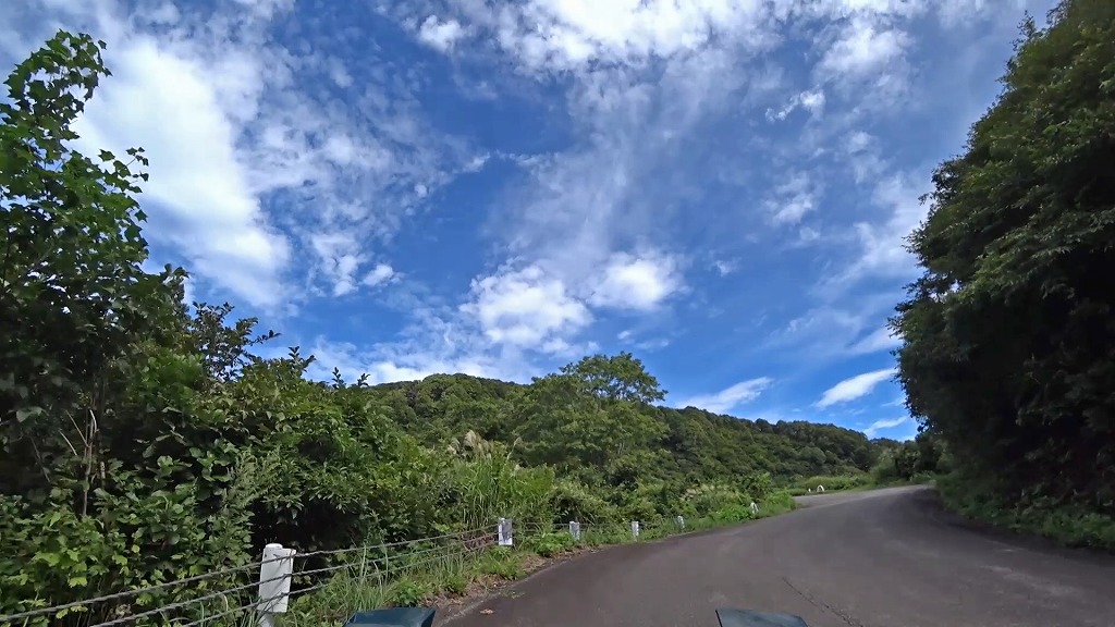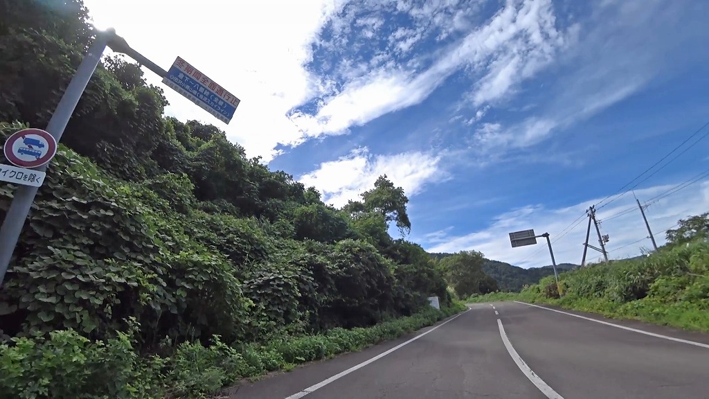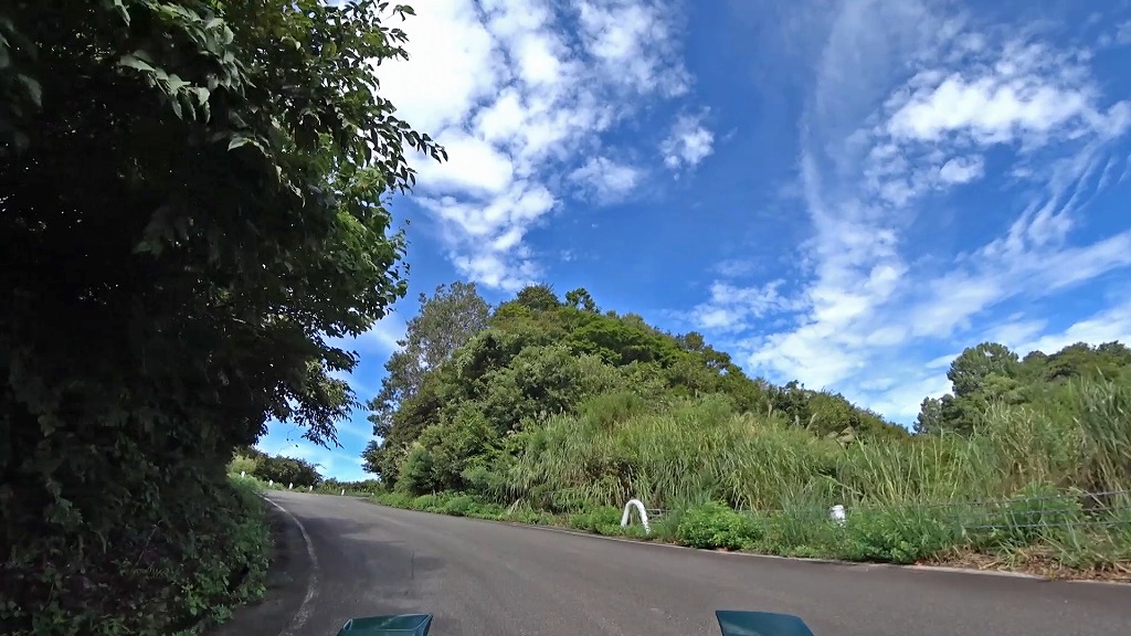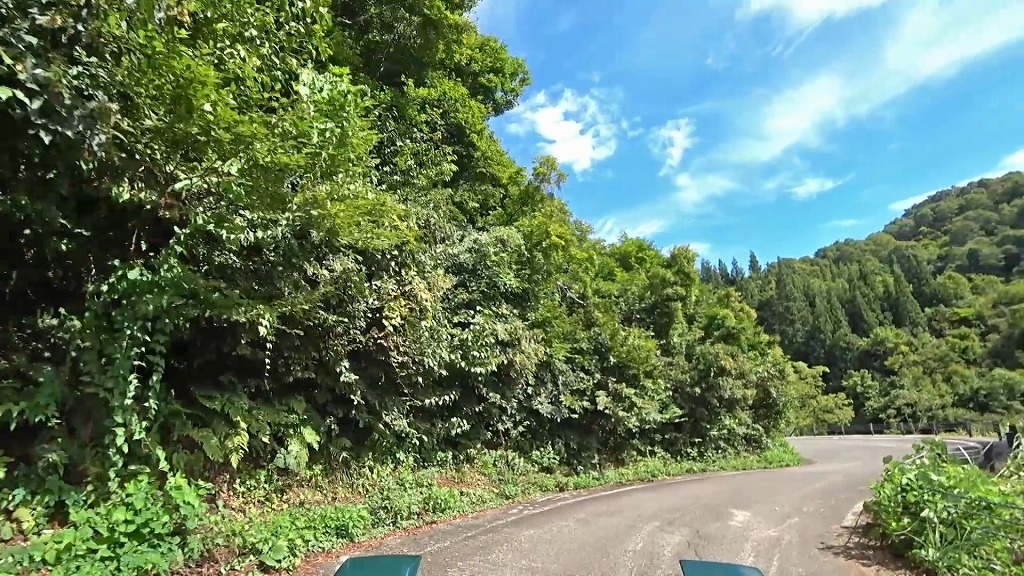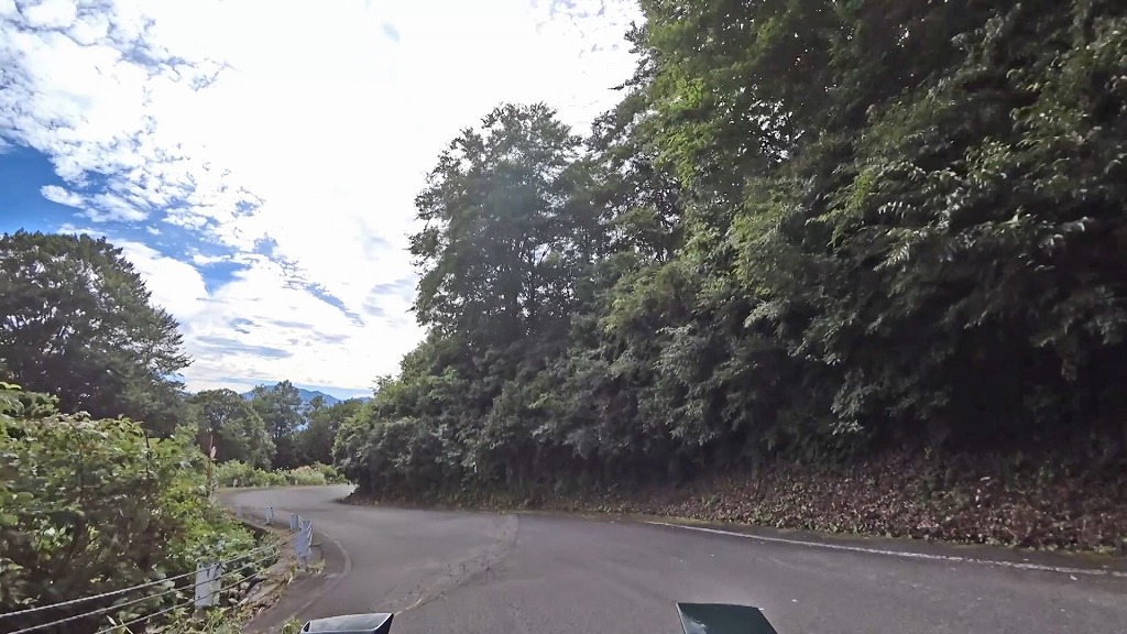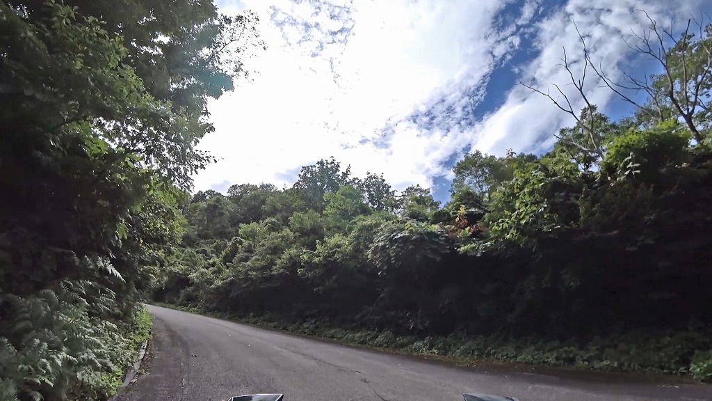 路肩には草木が鬱蒼としており、カーブでの見通しは悪いです。