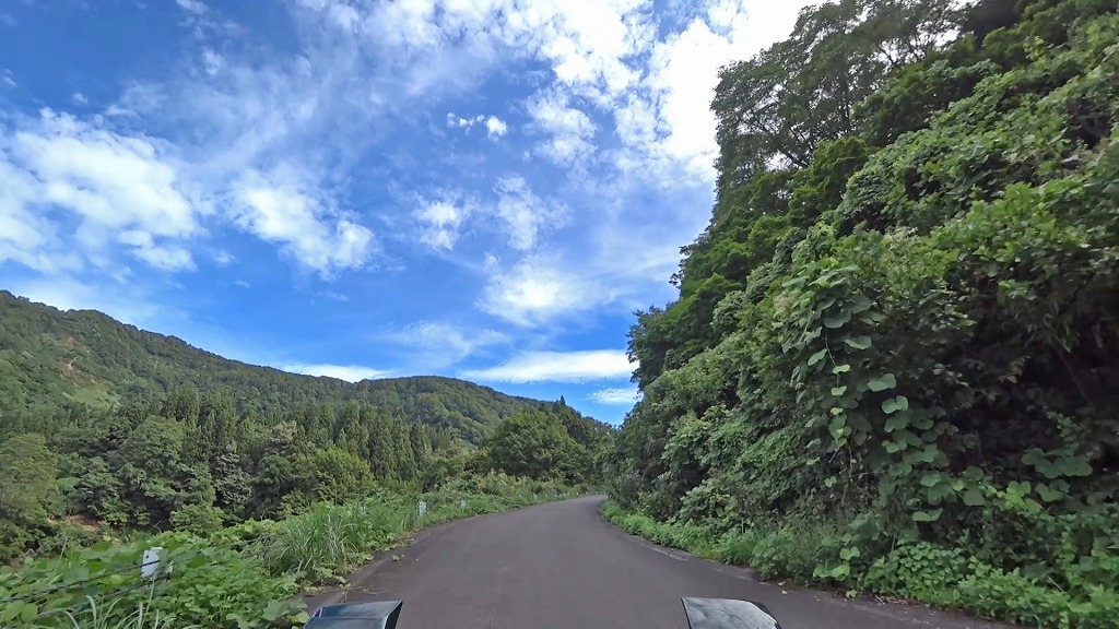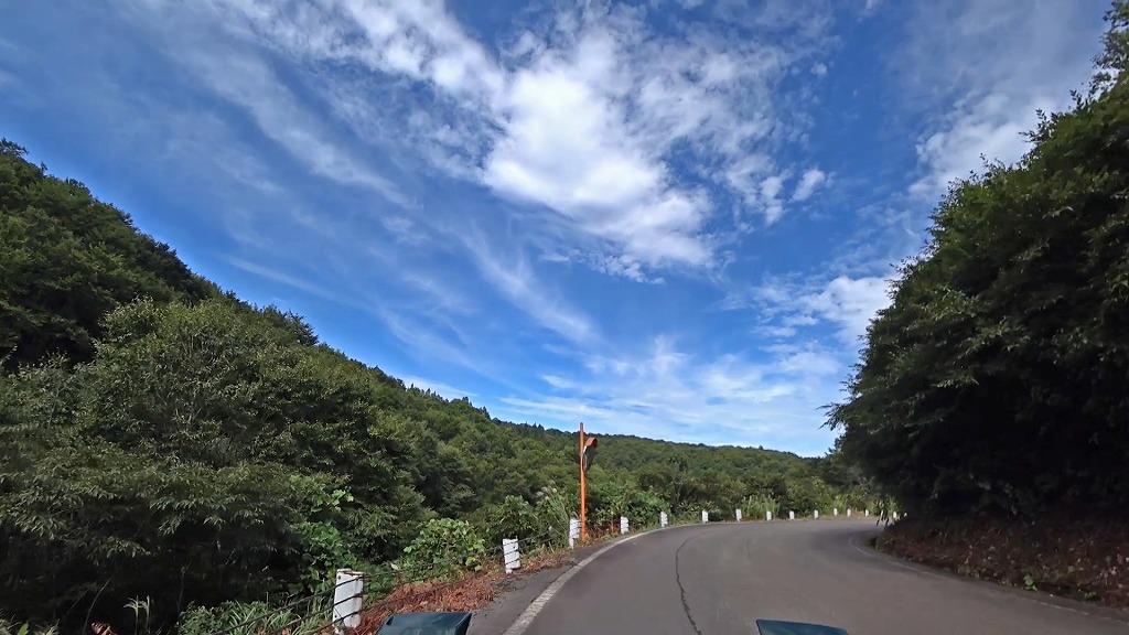 実際の魚沼スカイラインですが、道幅が安定しておらず、狭くなったり広くなったり。また勾配もかなり急な場所が多くありました。