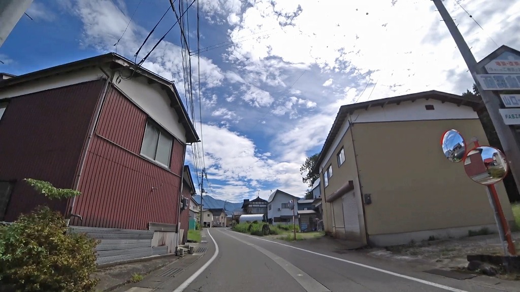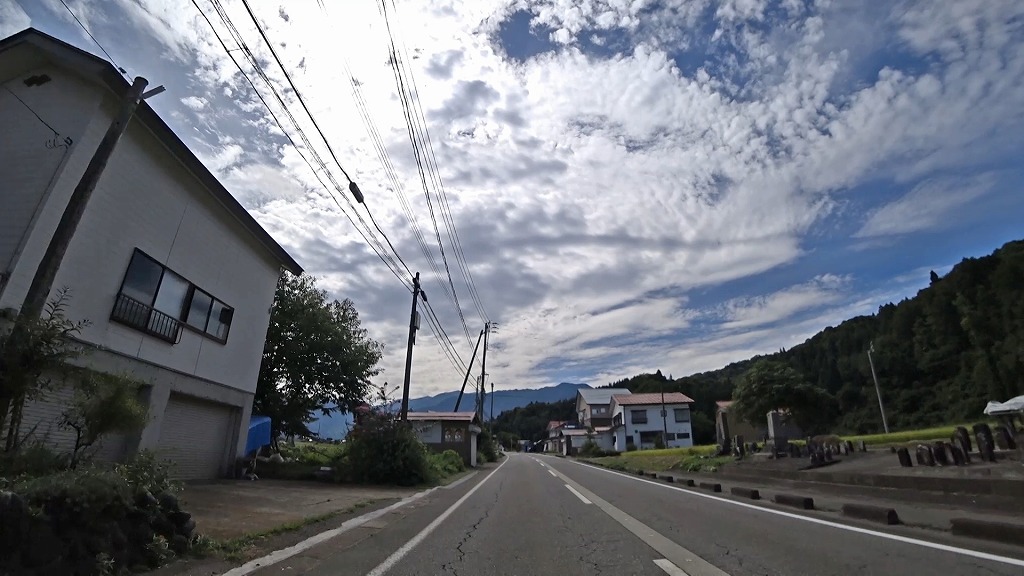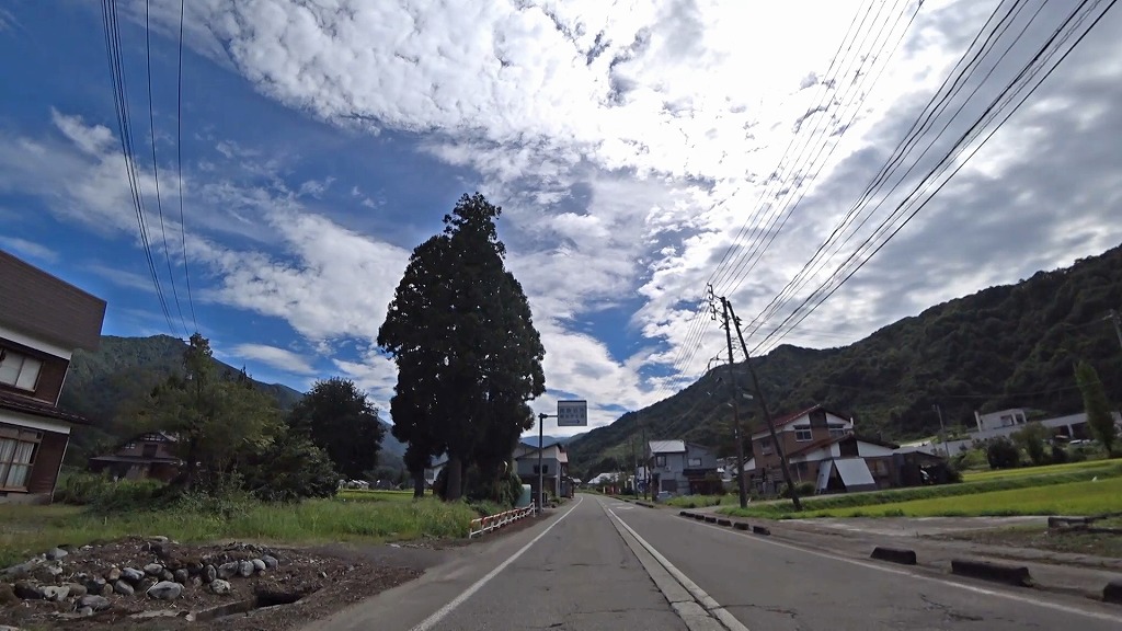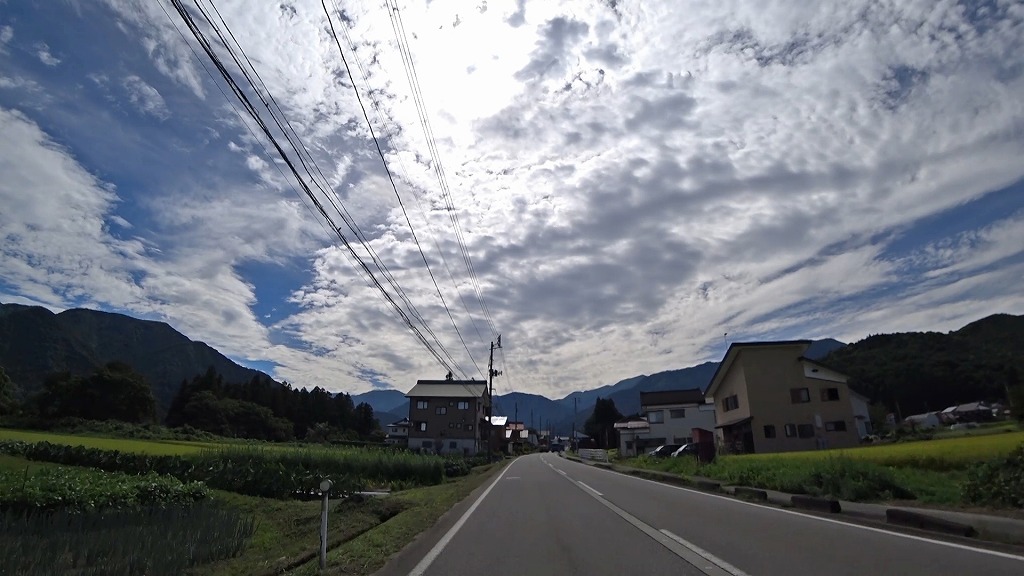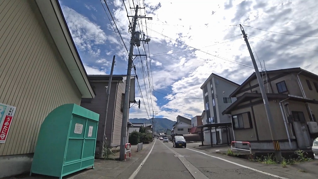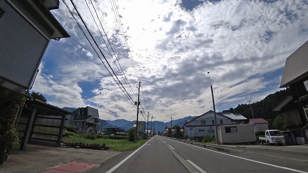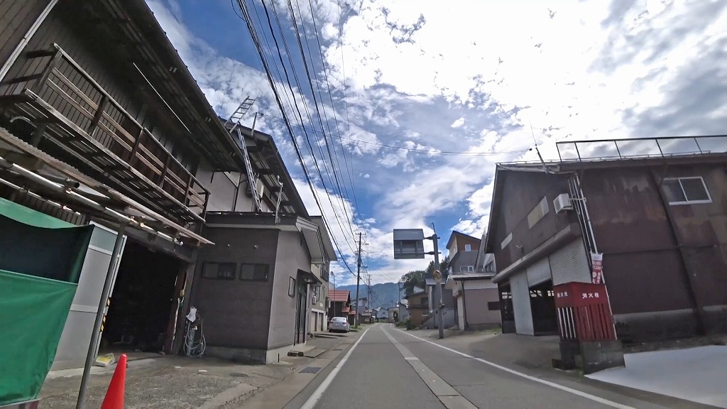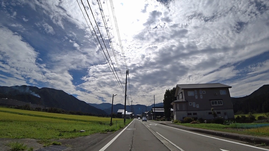 暫く進むと、まだまだ民家が多く建ち並ぶものの、道幅に余裕あり、片側ですが歩道も備わった道へ。