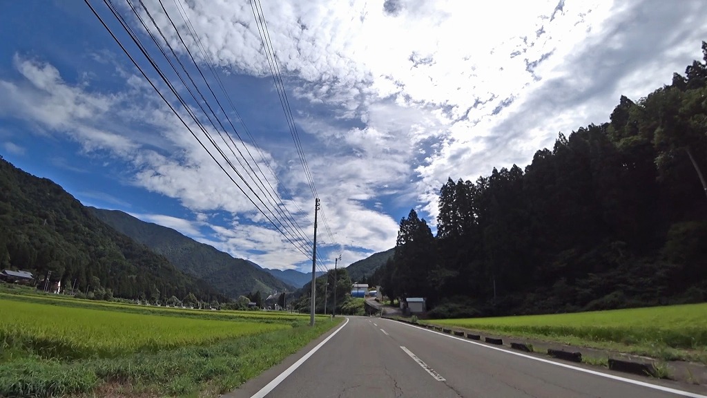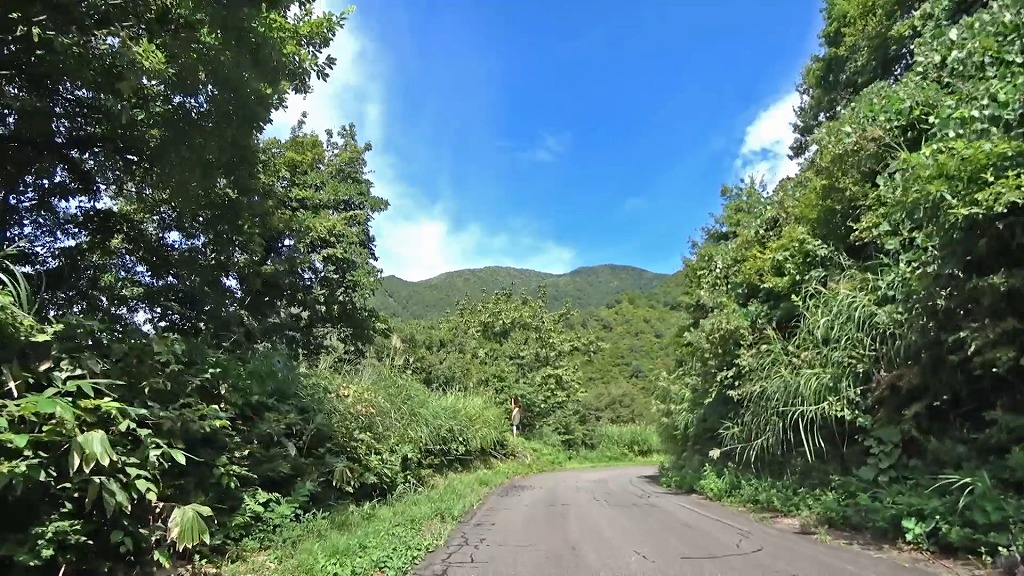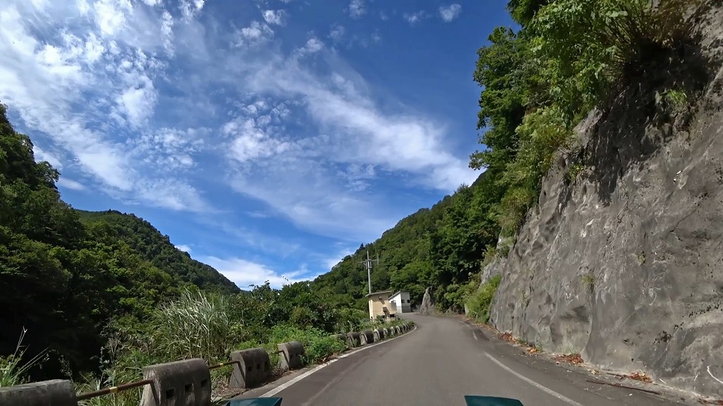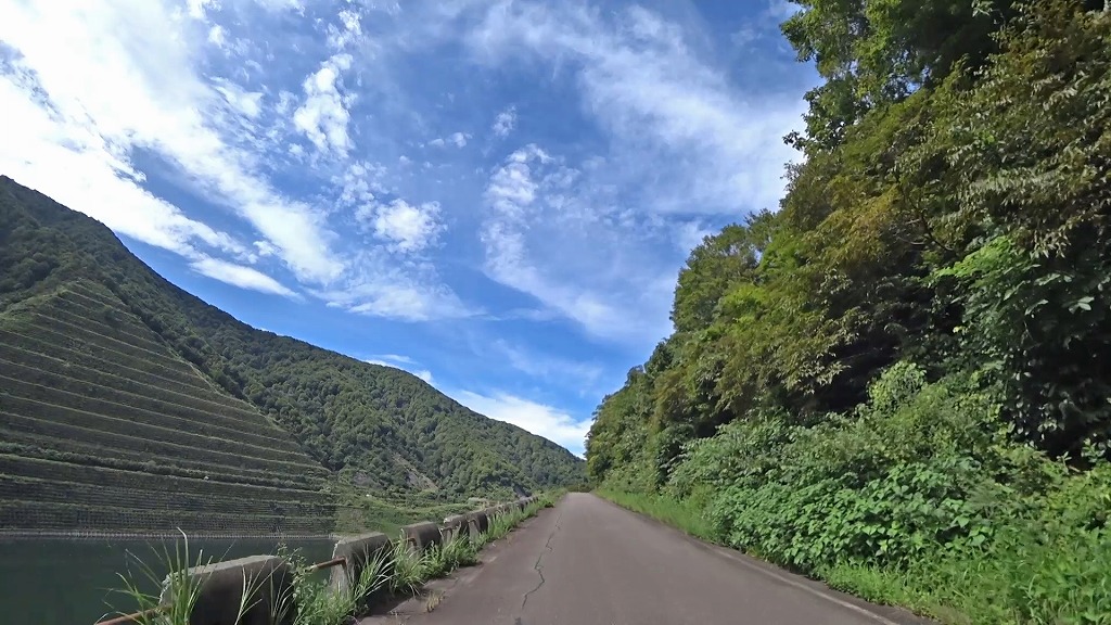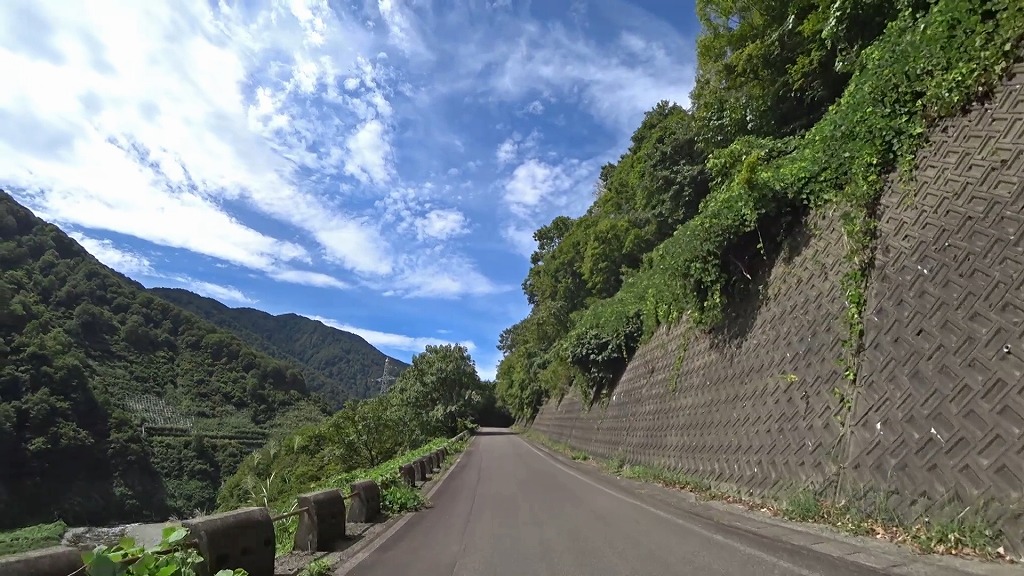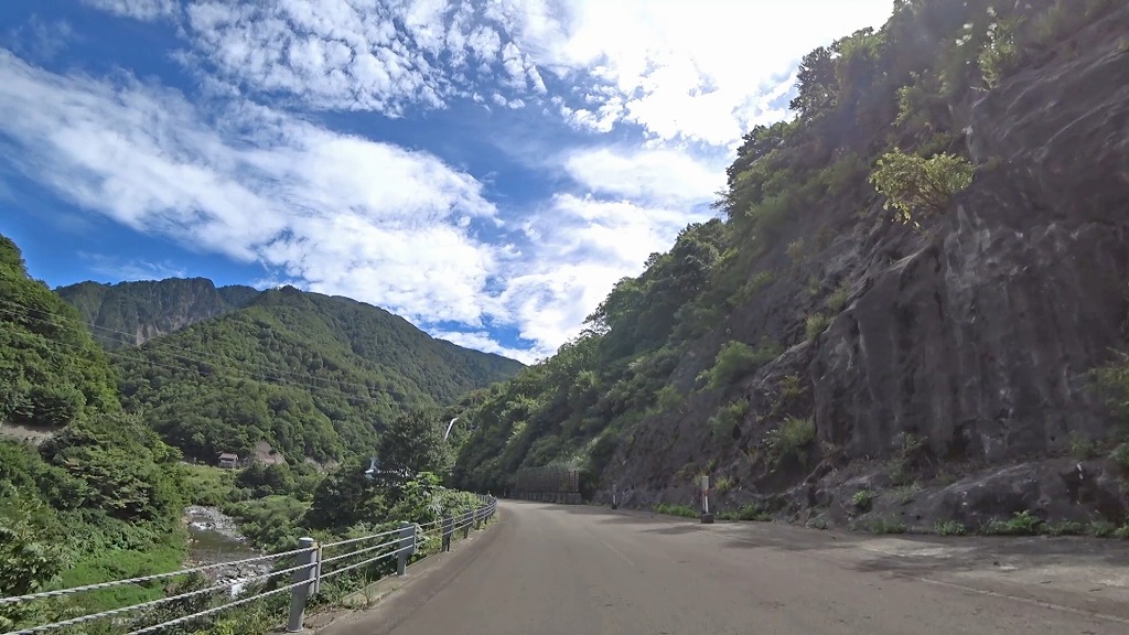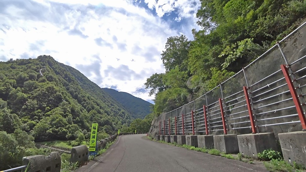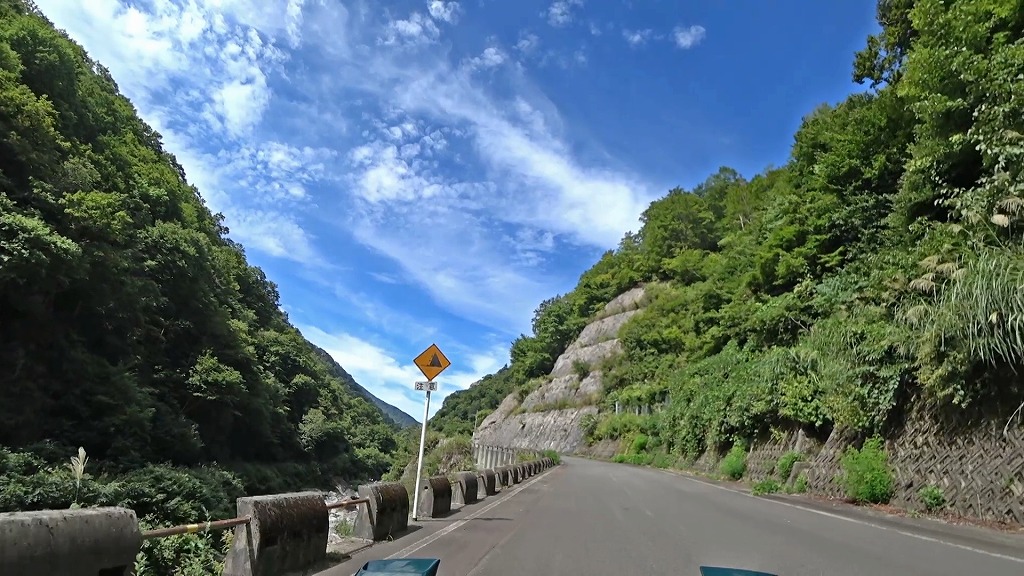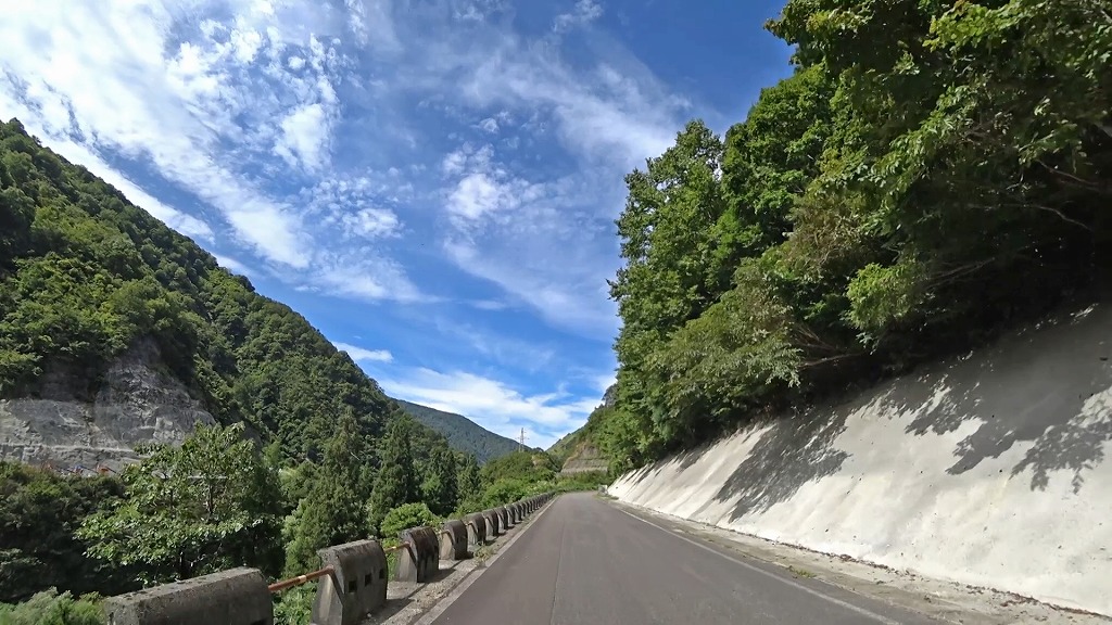 県道の終点に向け、少しずつ荒々しい印象になってきましたが、それでも走りやすい片側一車線の道。