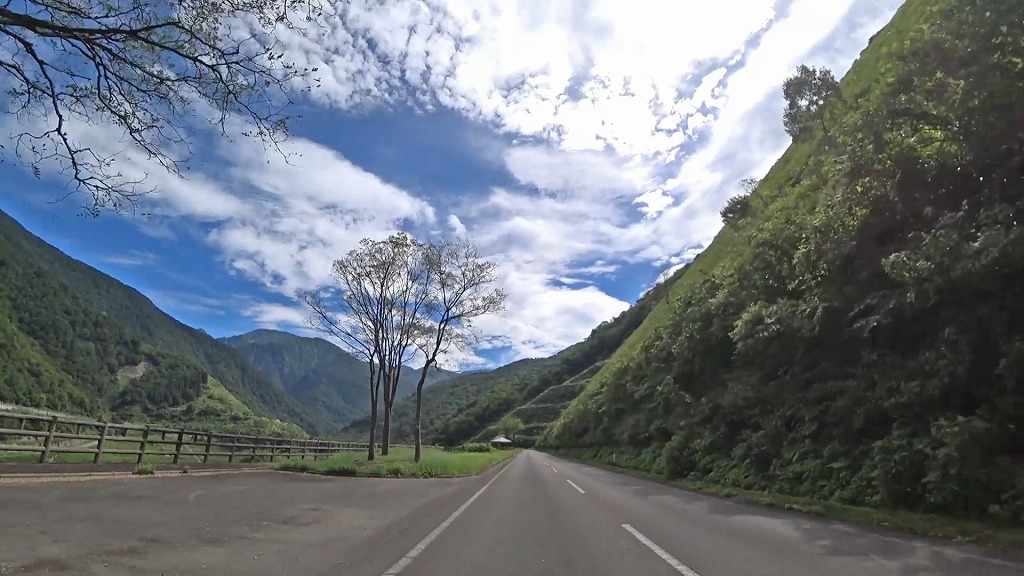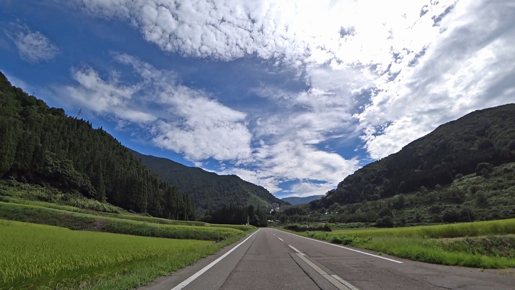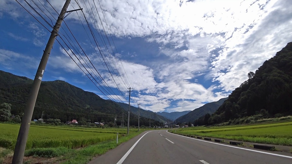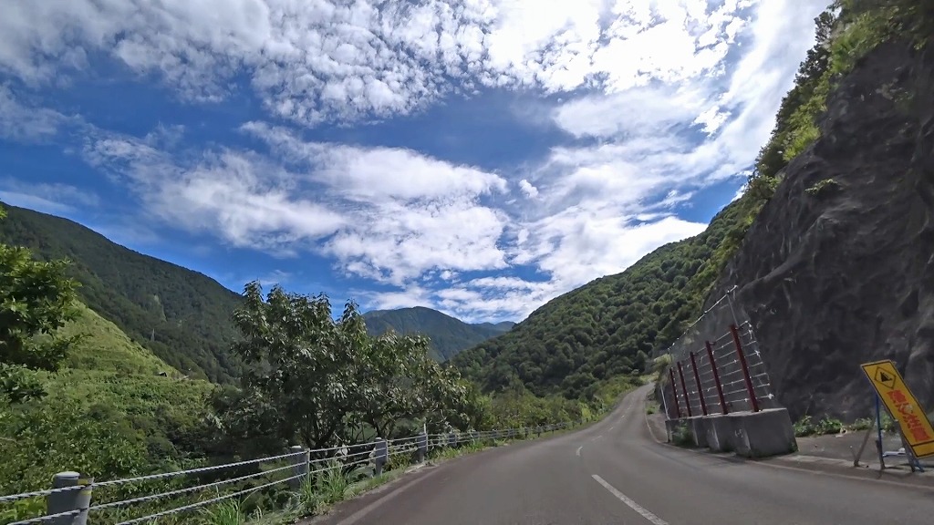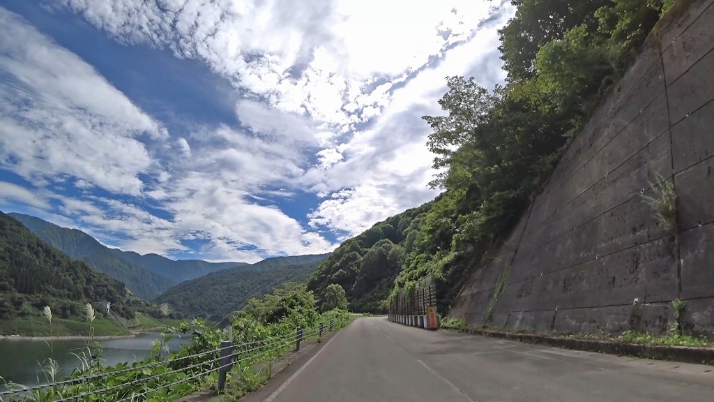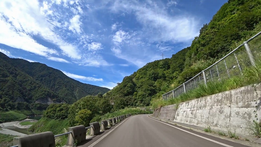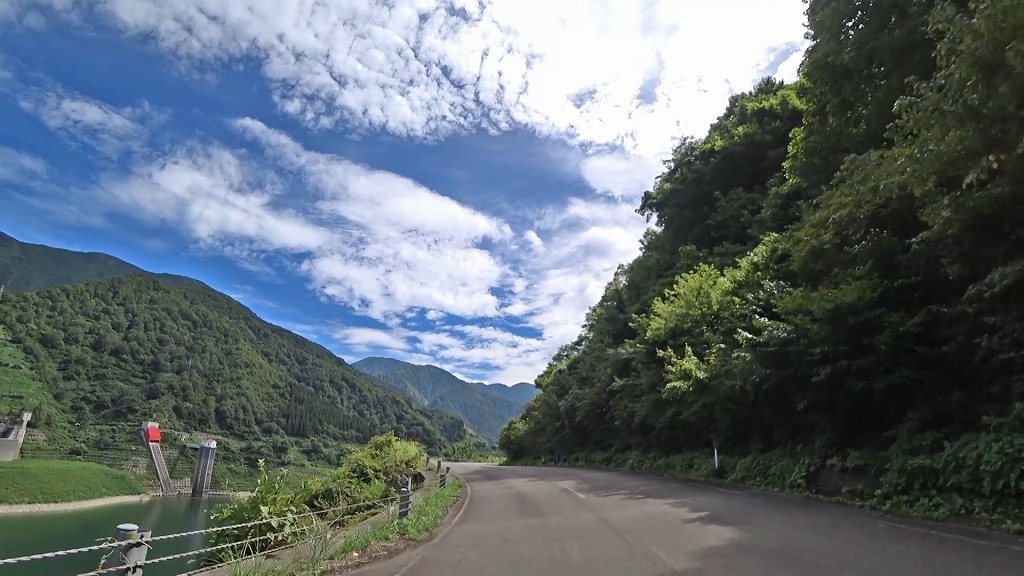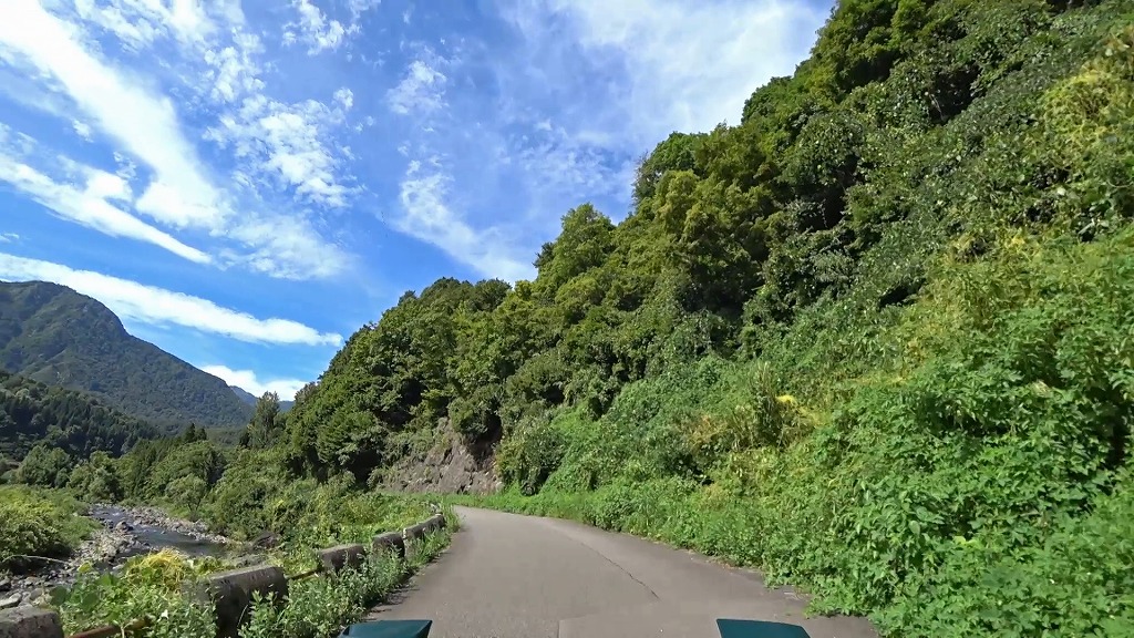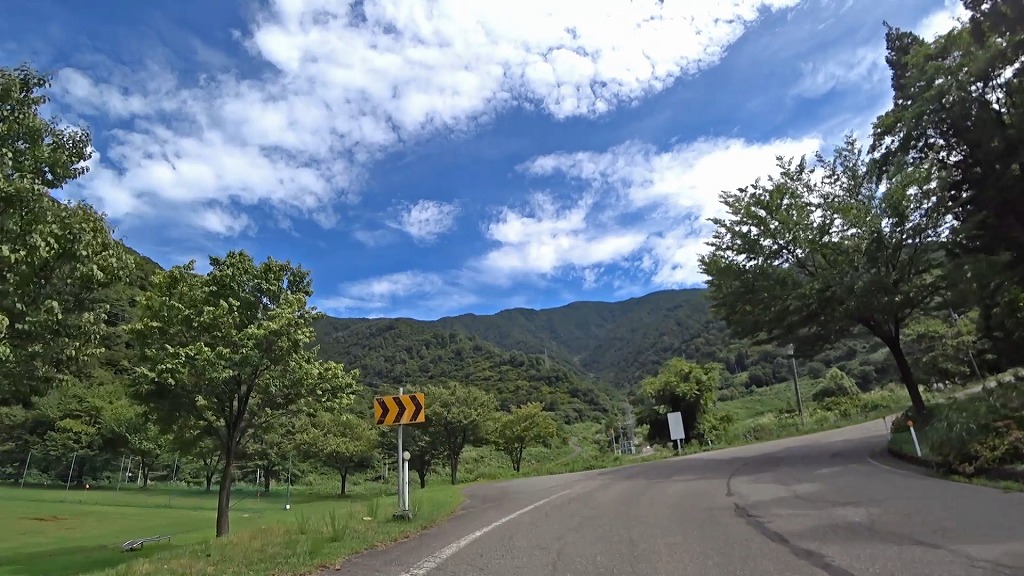 県道の終点に向け、少しずつ荒々しい印象になってきましたが、それでも走りやすい片側一車線の道。