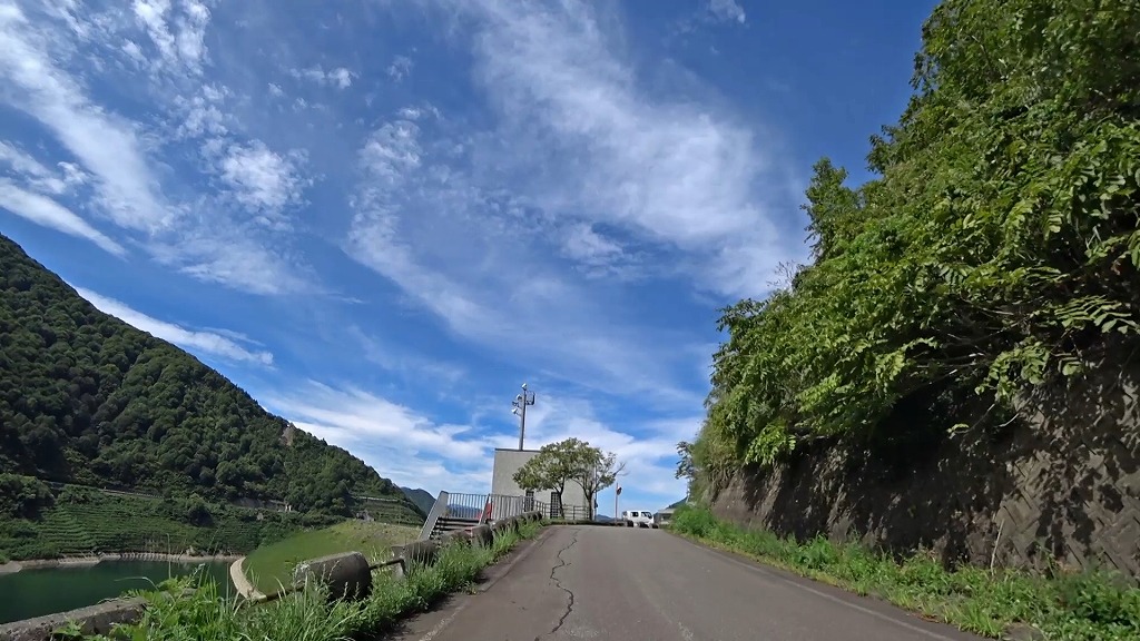 ダムの管理する施設でしょうか。その脇を進んで行きます。