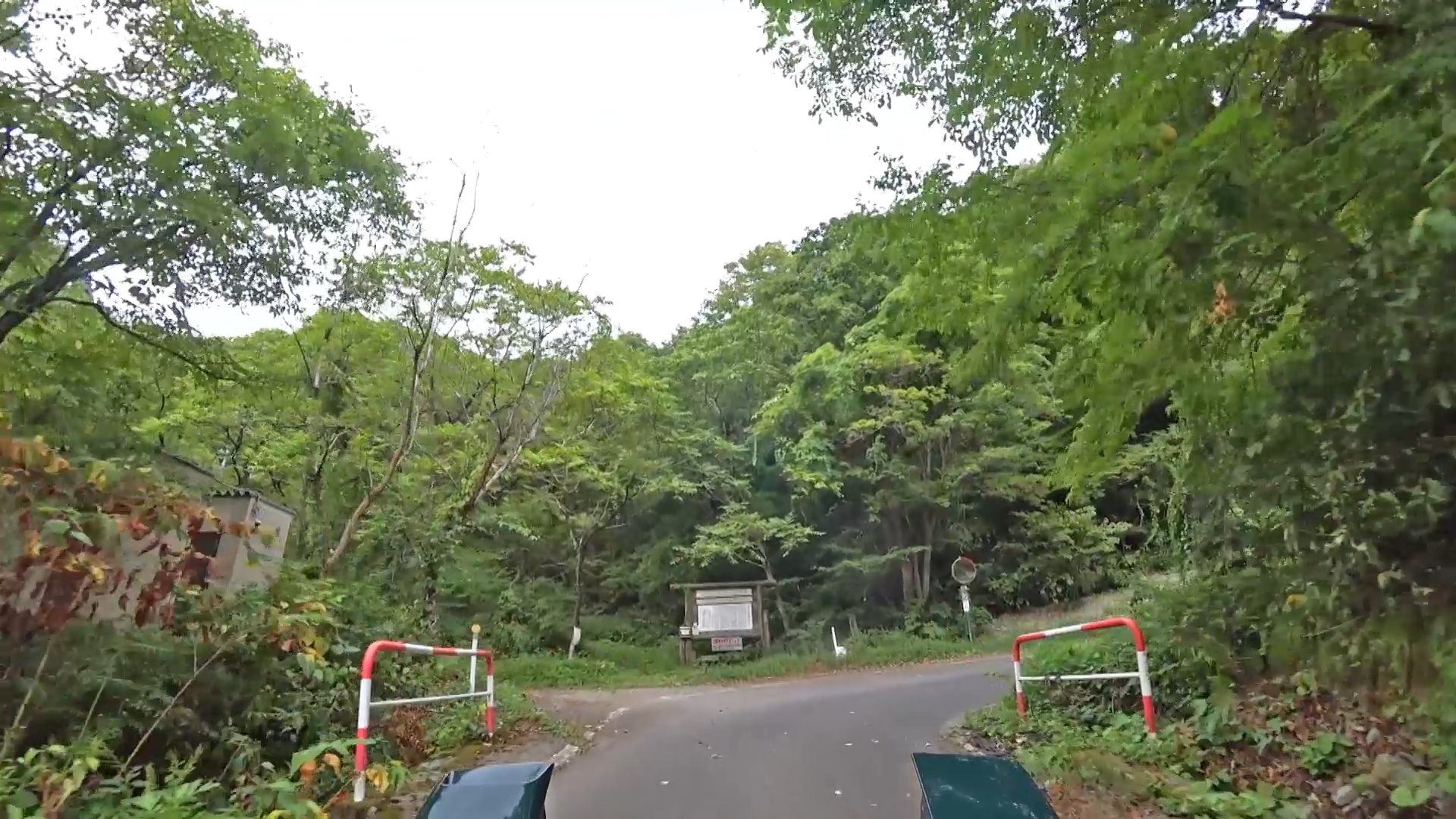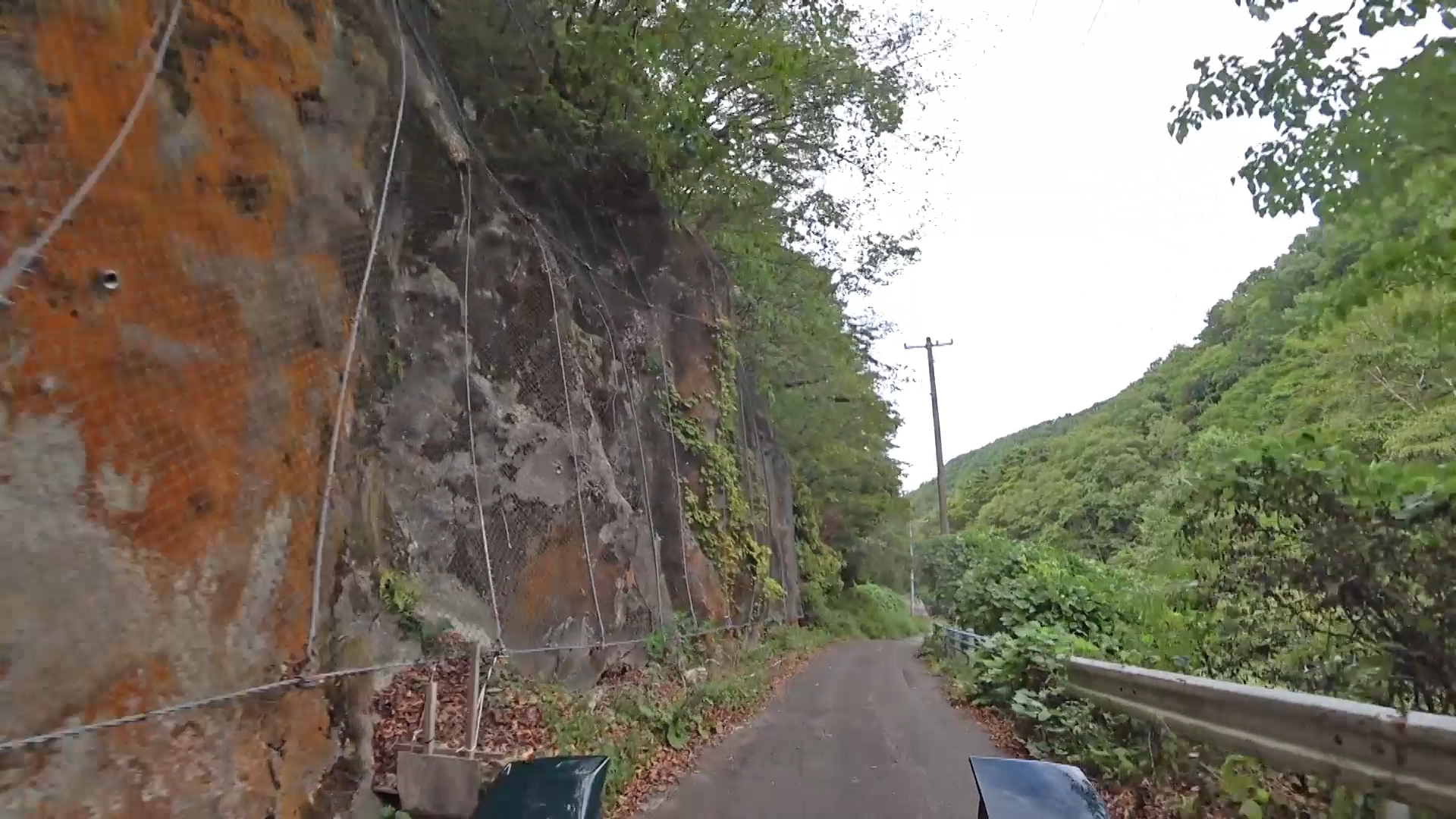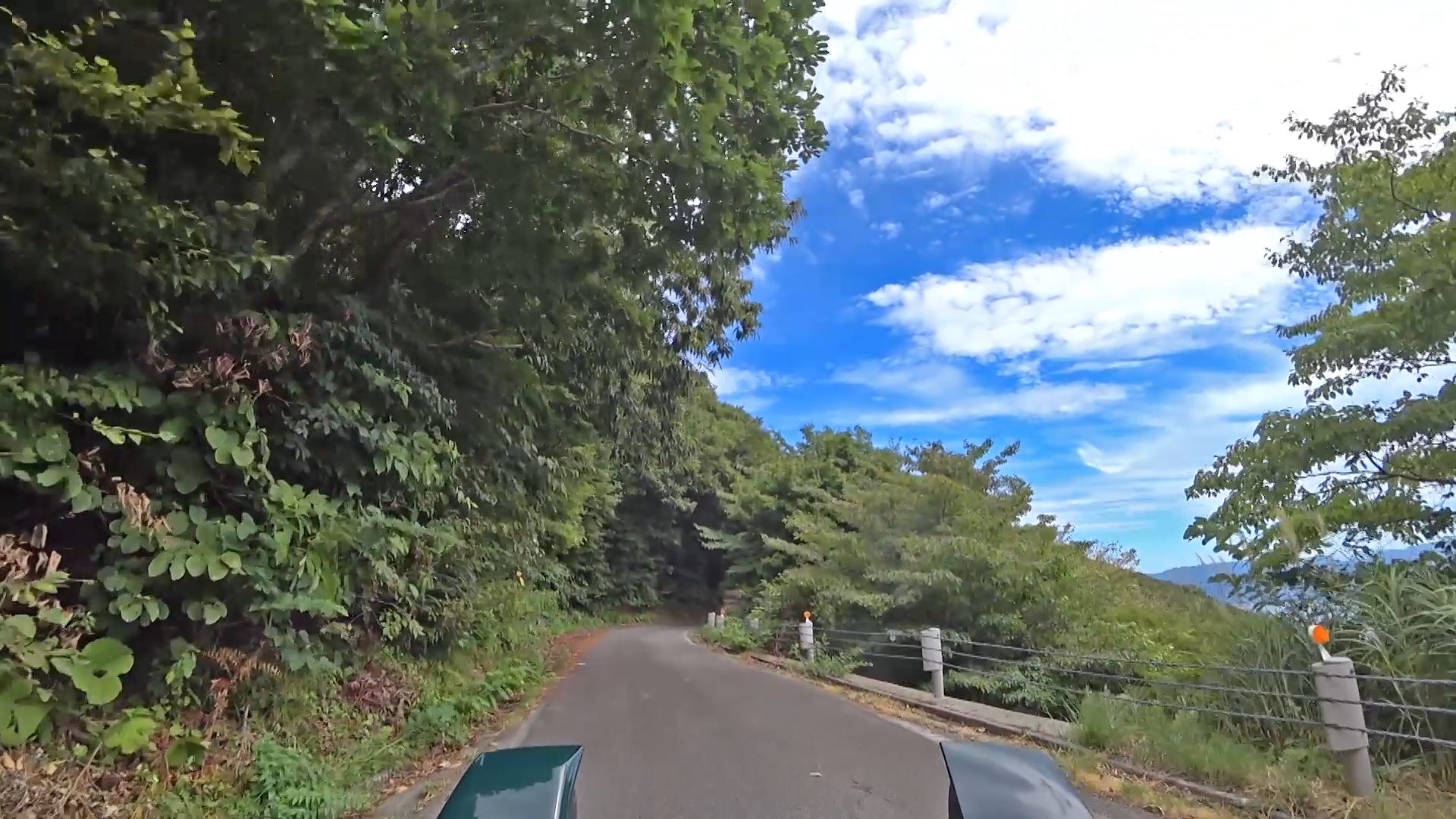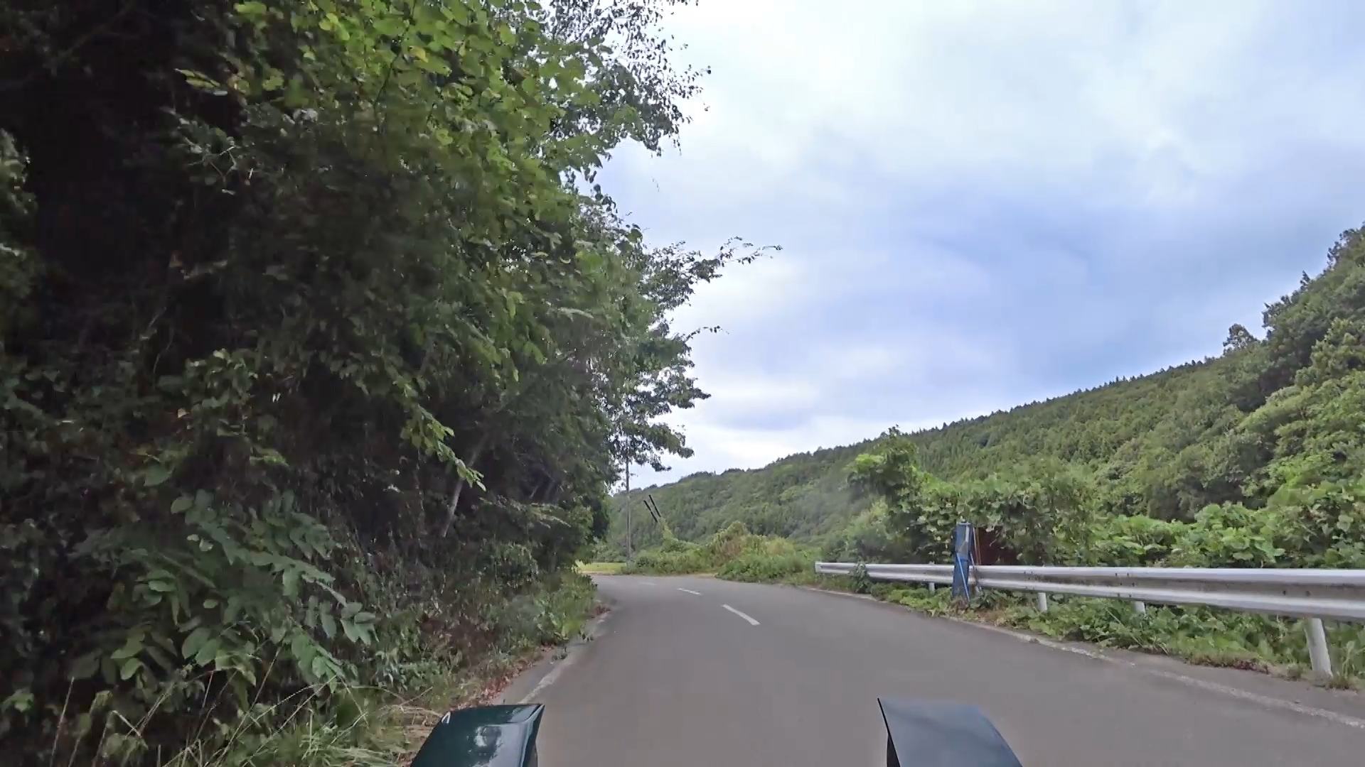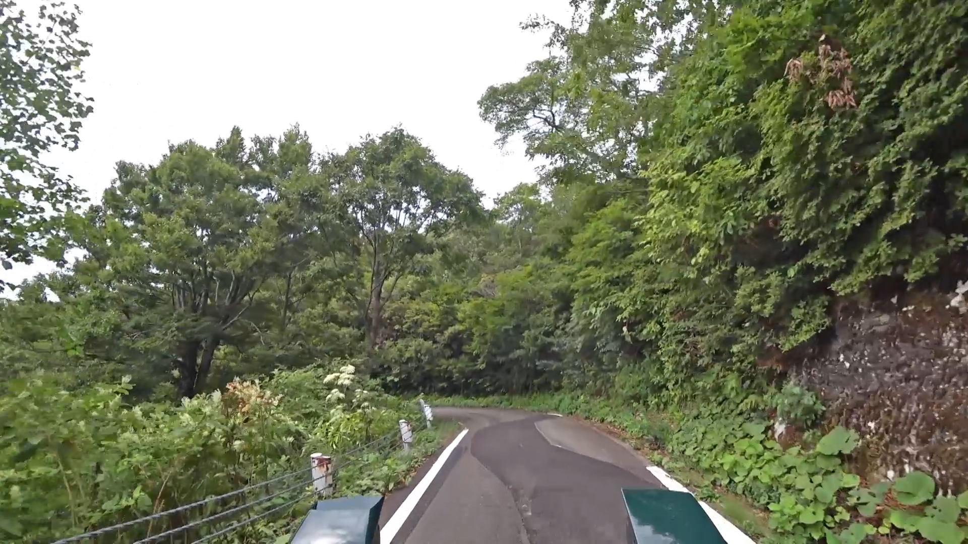 暫くするとセンターラインが消え、A狭路区間が入り混じる区間になります。(狭路区間はドンデン山を越え、ゴール地点手前まで続きます。)