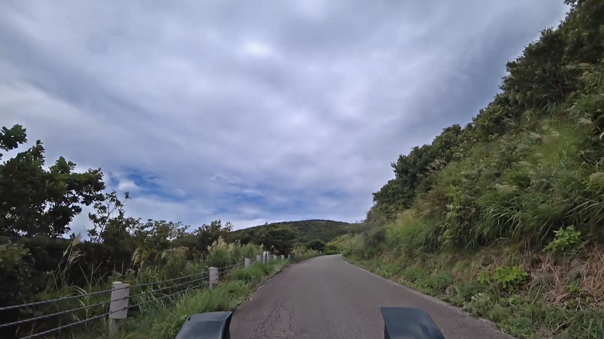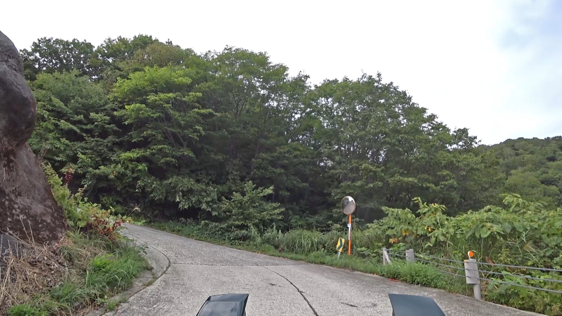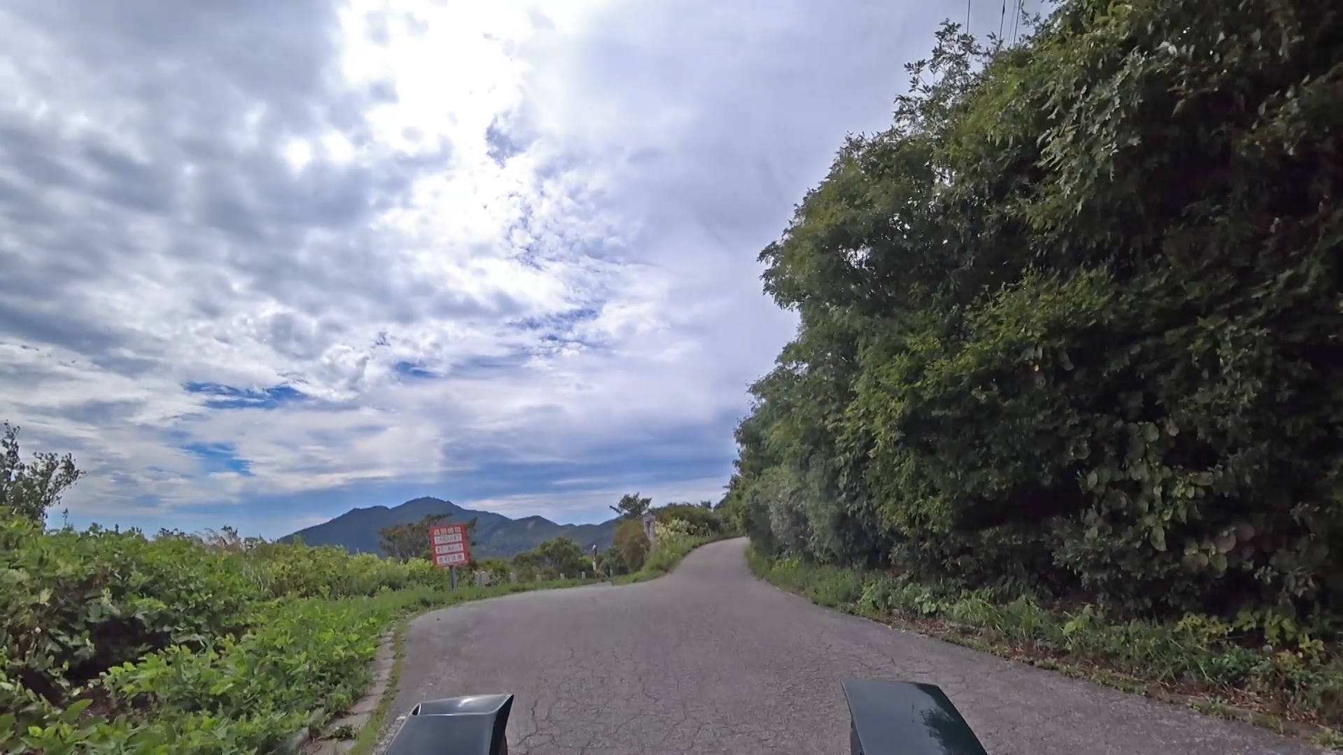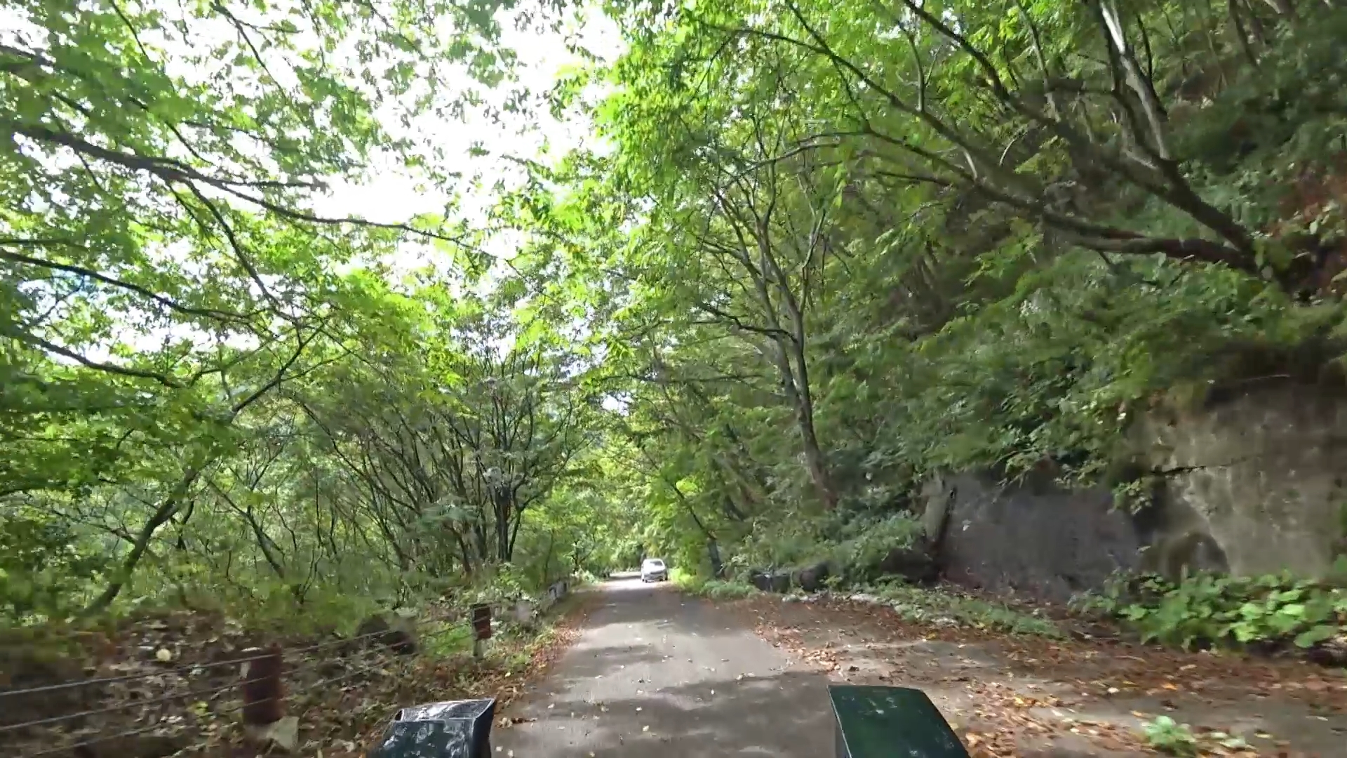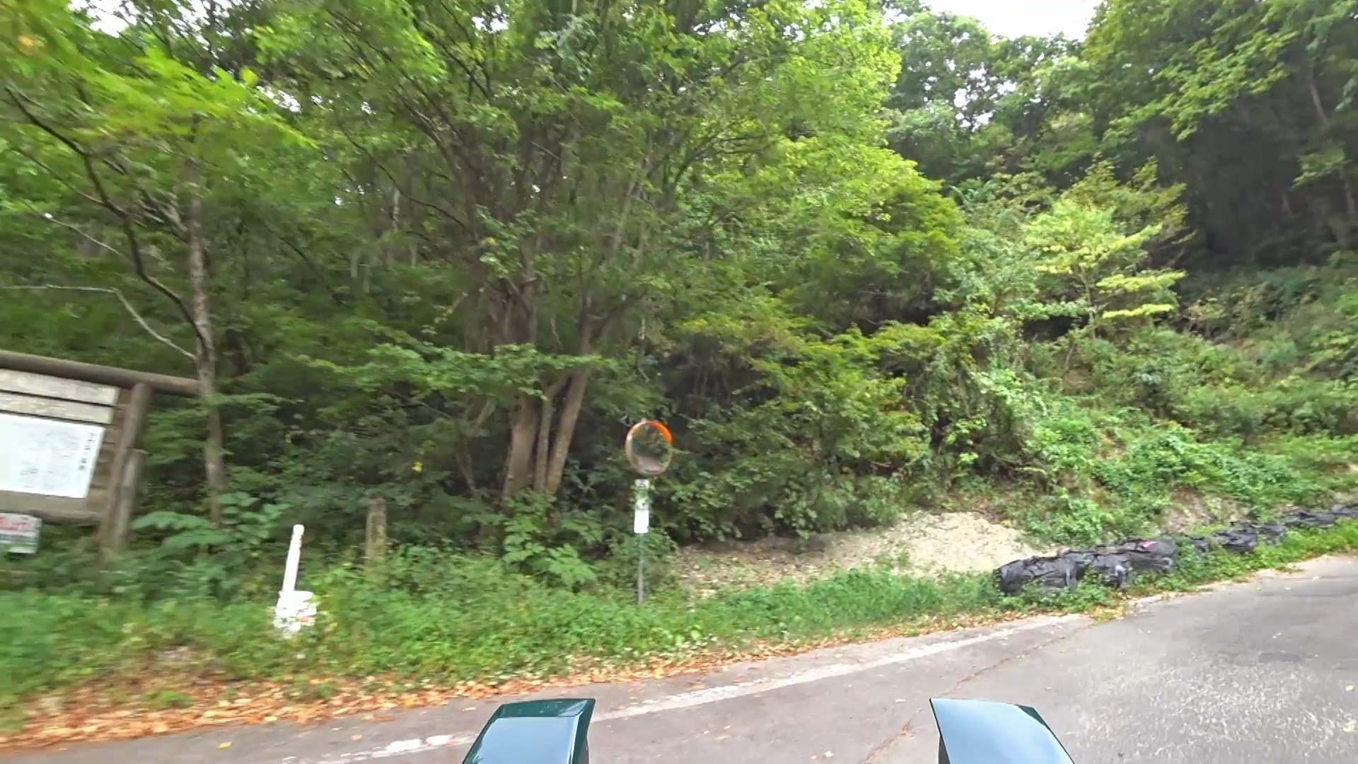 暫くするとセンターラインが消え、A狭路区間が入り混じる区間になります。(狭路区間はドンデン山を越え、ゴール地点手前まで続きます。)