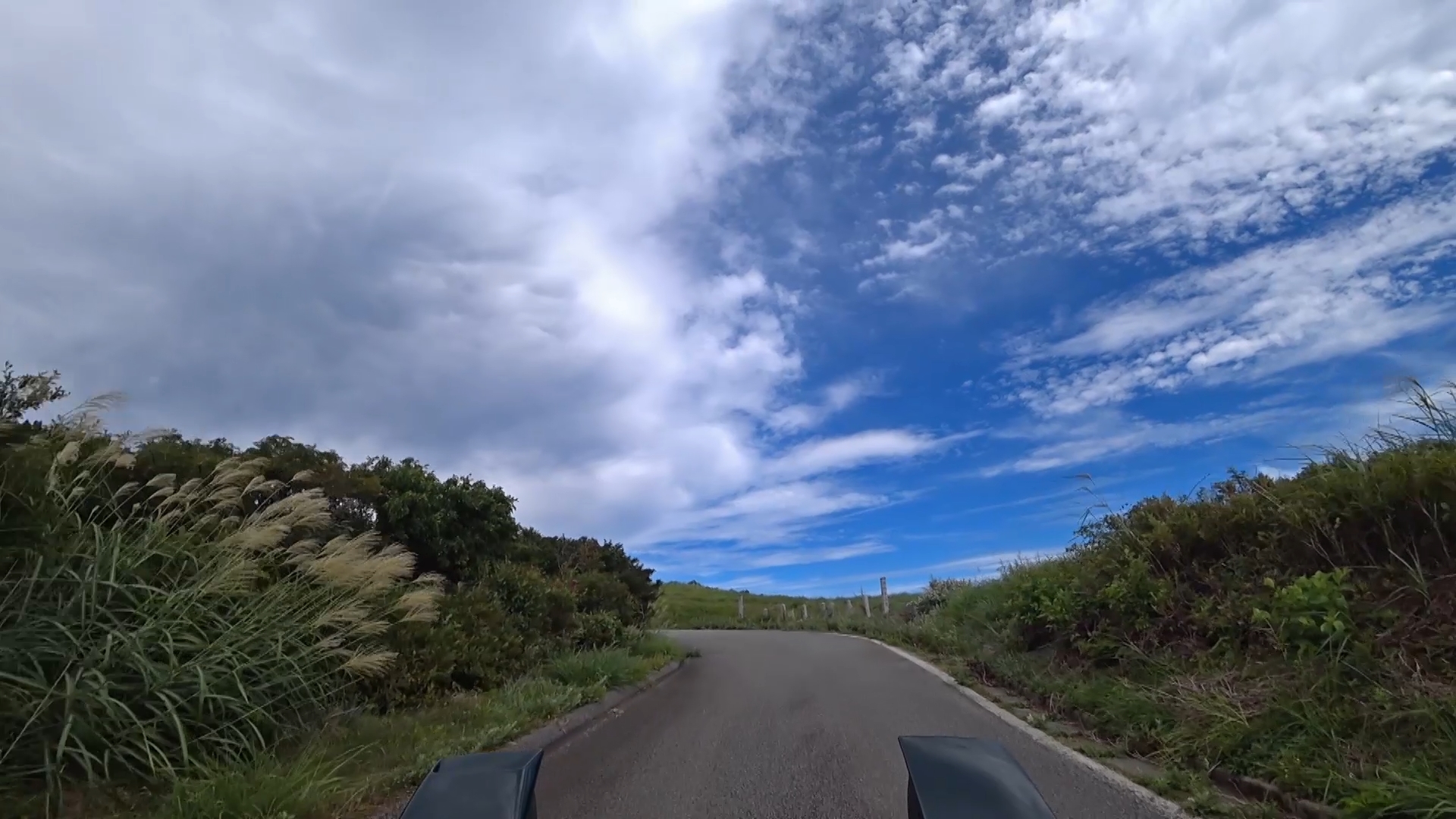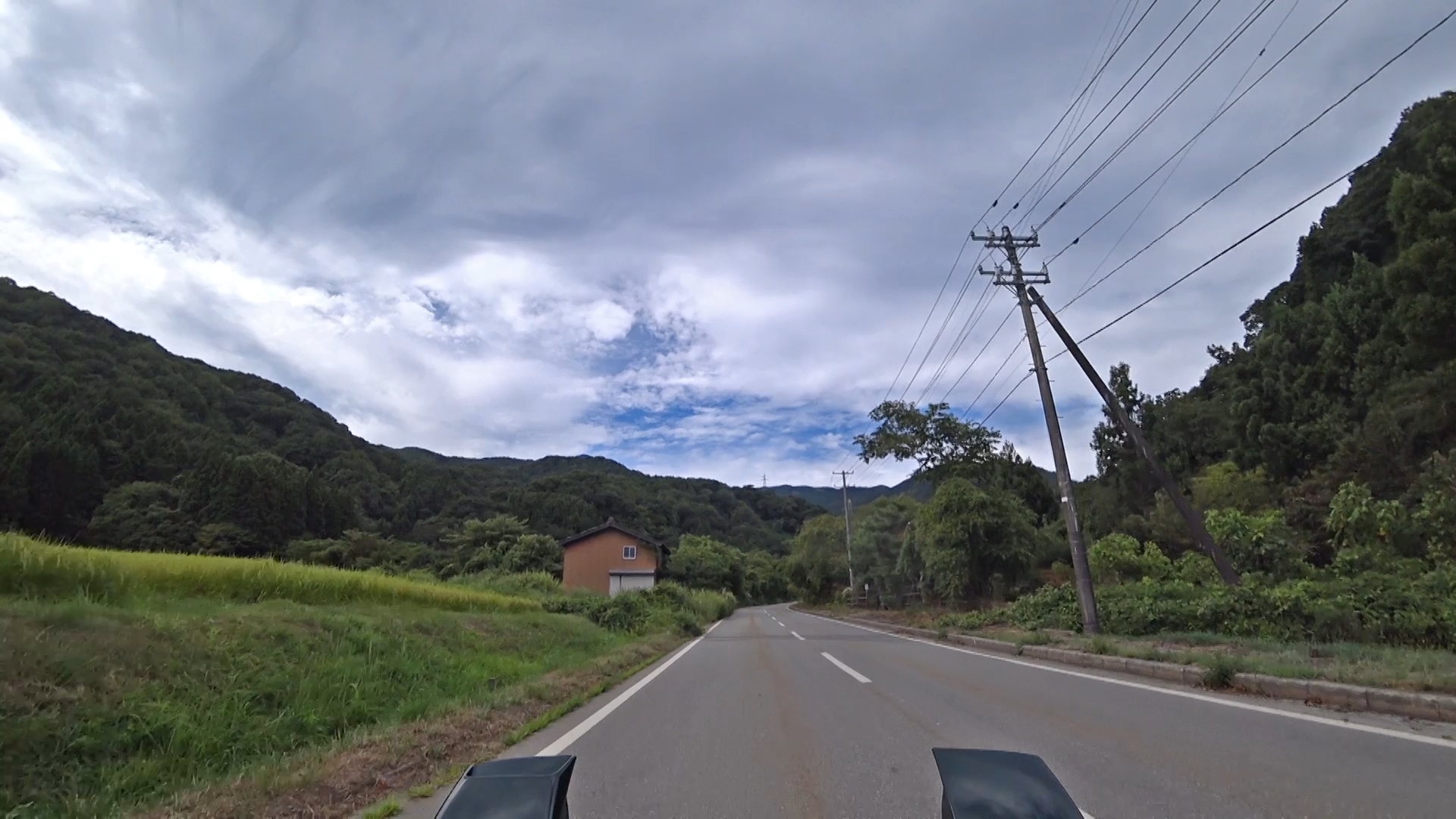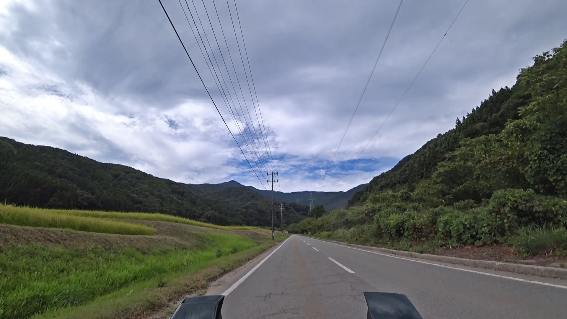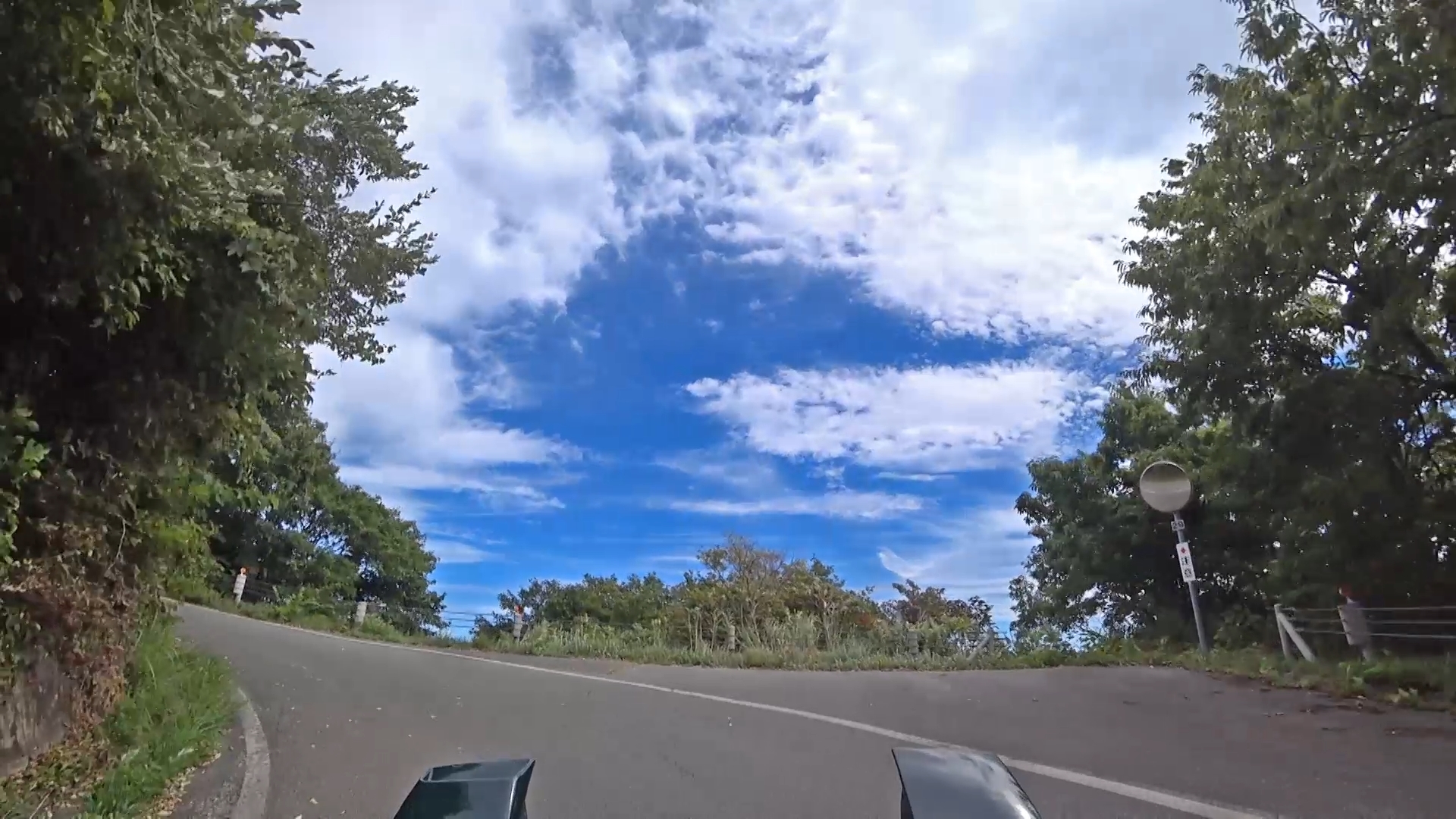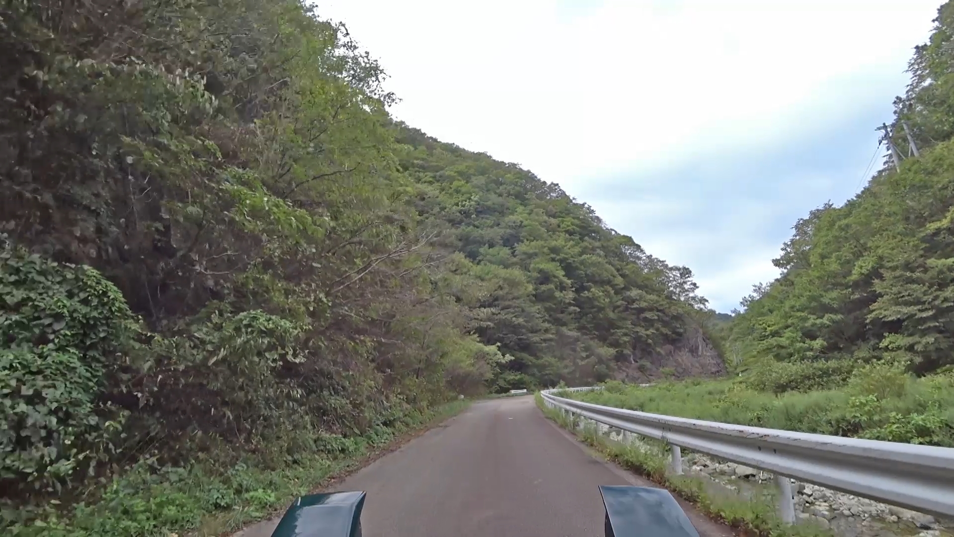 暫くするとセンターラインが消え、A狭路区間が入り混じる区間になります。(狭路区間はドンデン山を越え、ゴール地点手前まで続きます。)