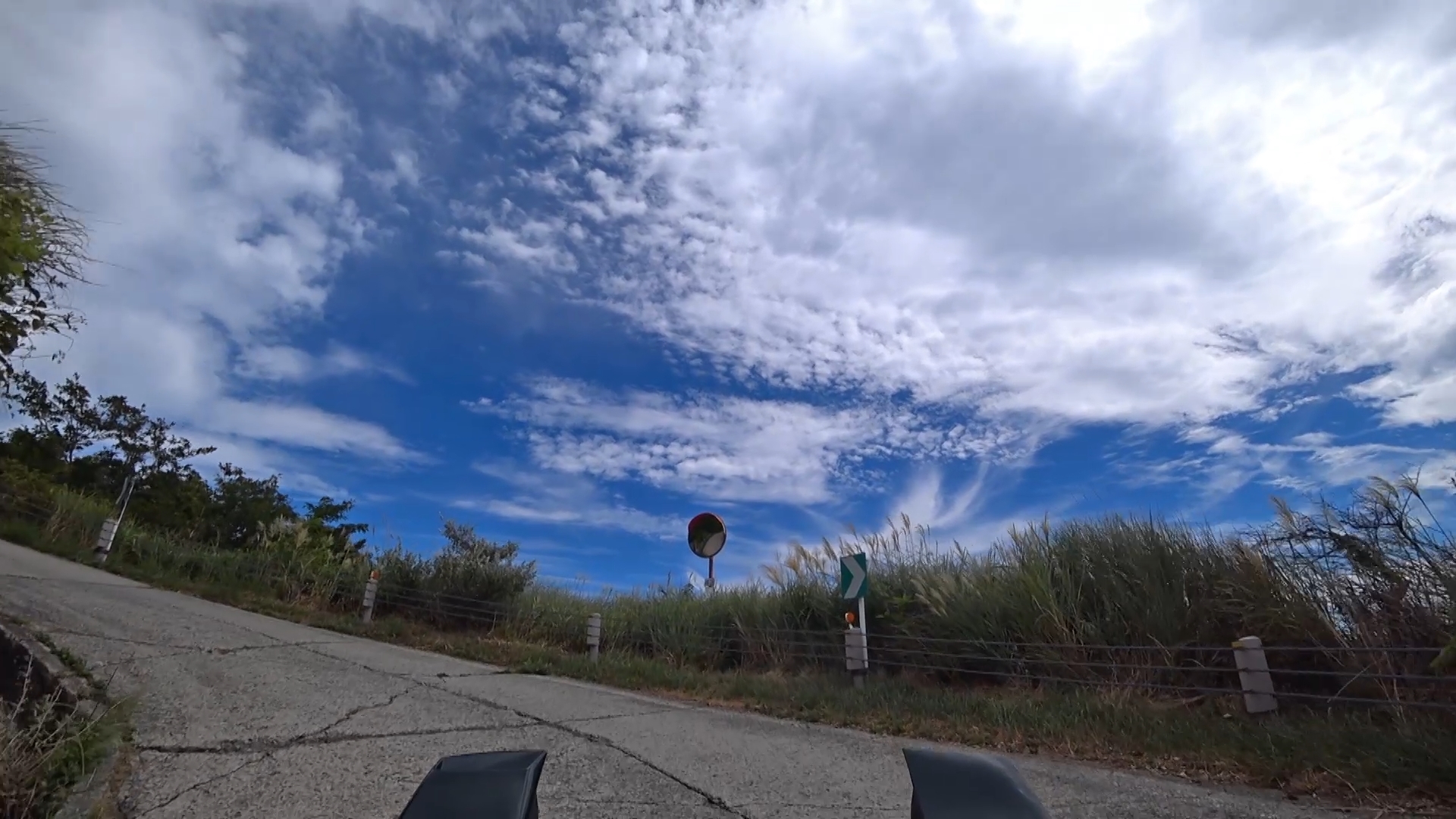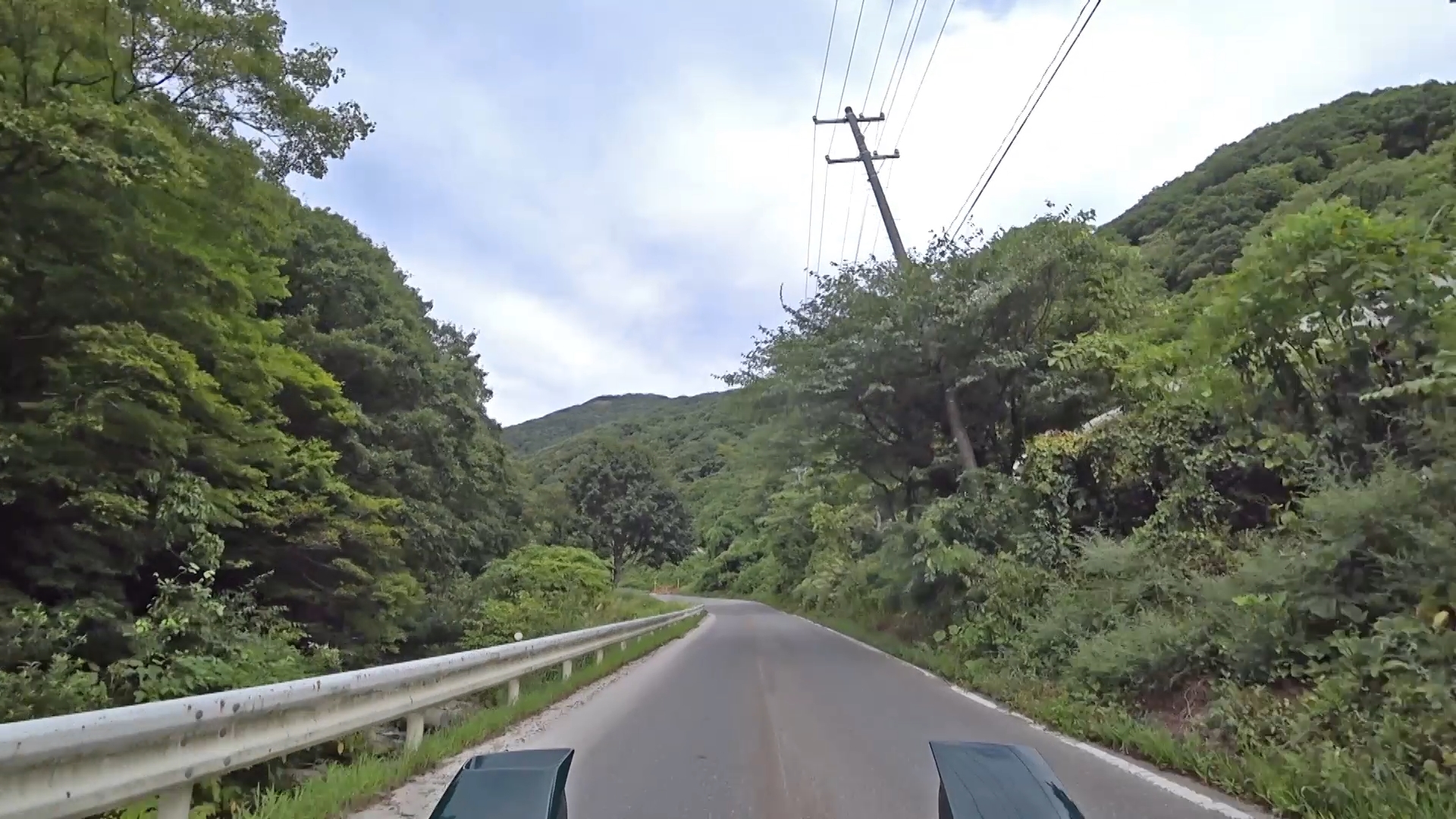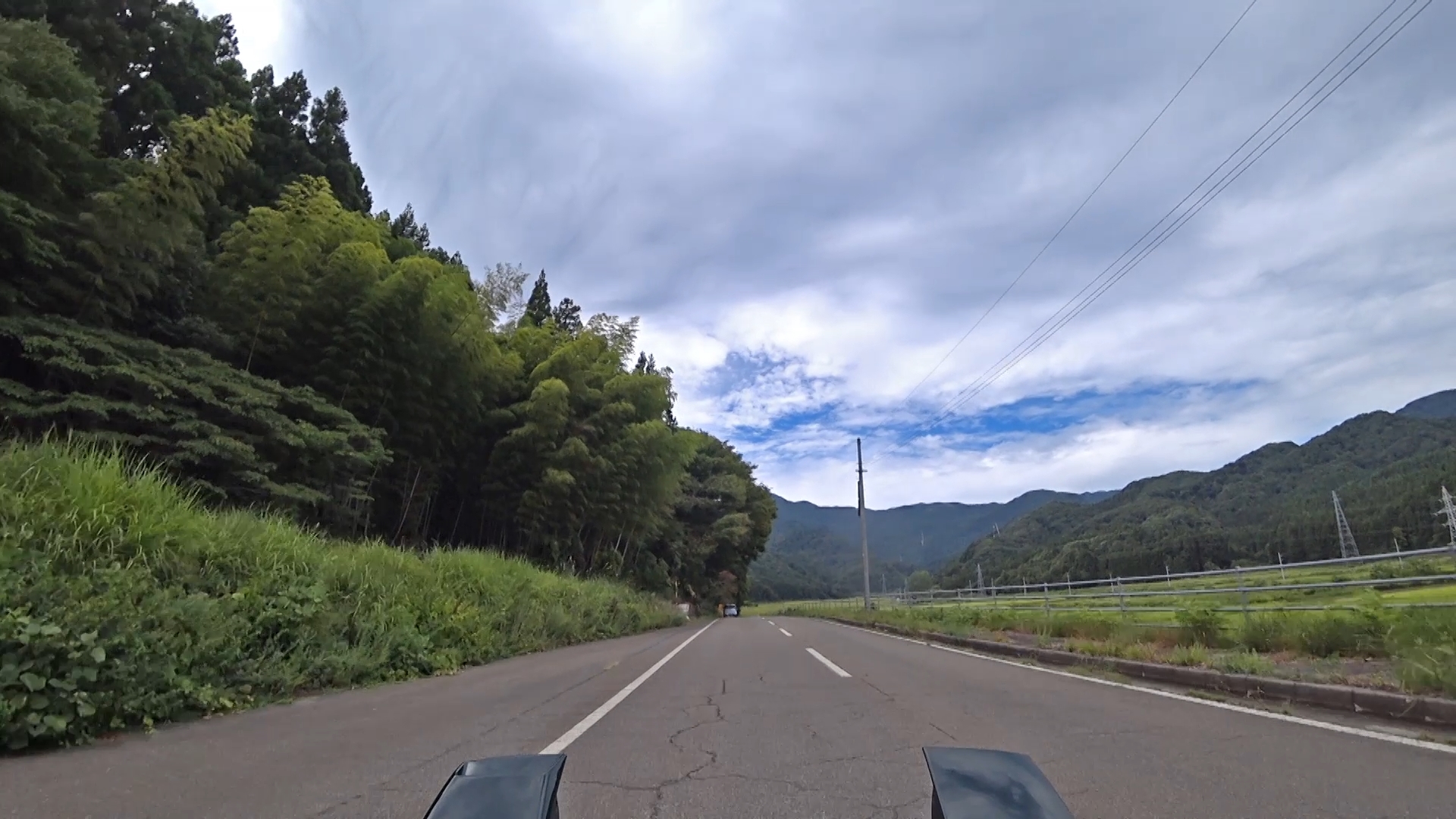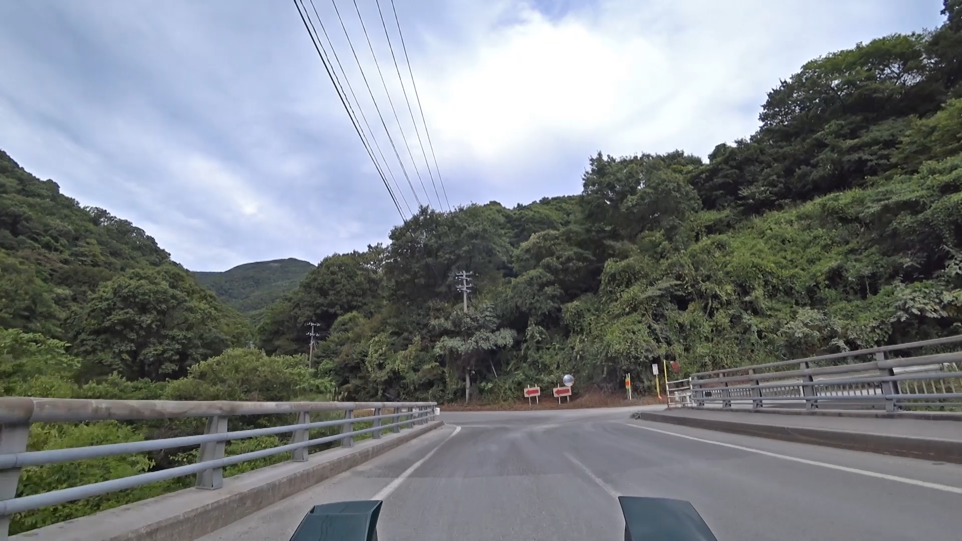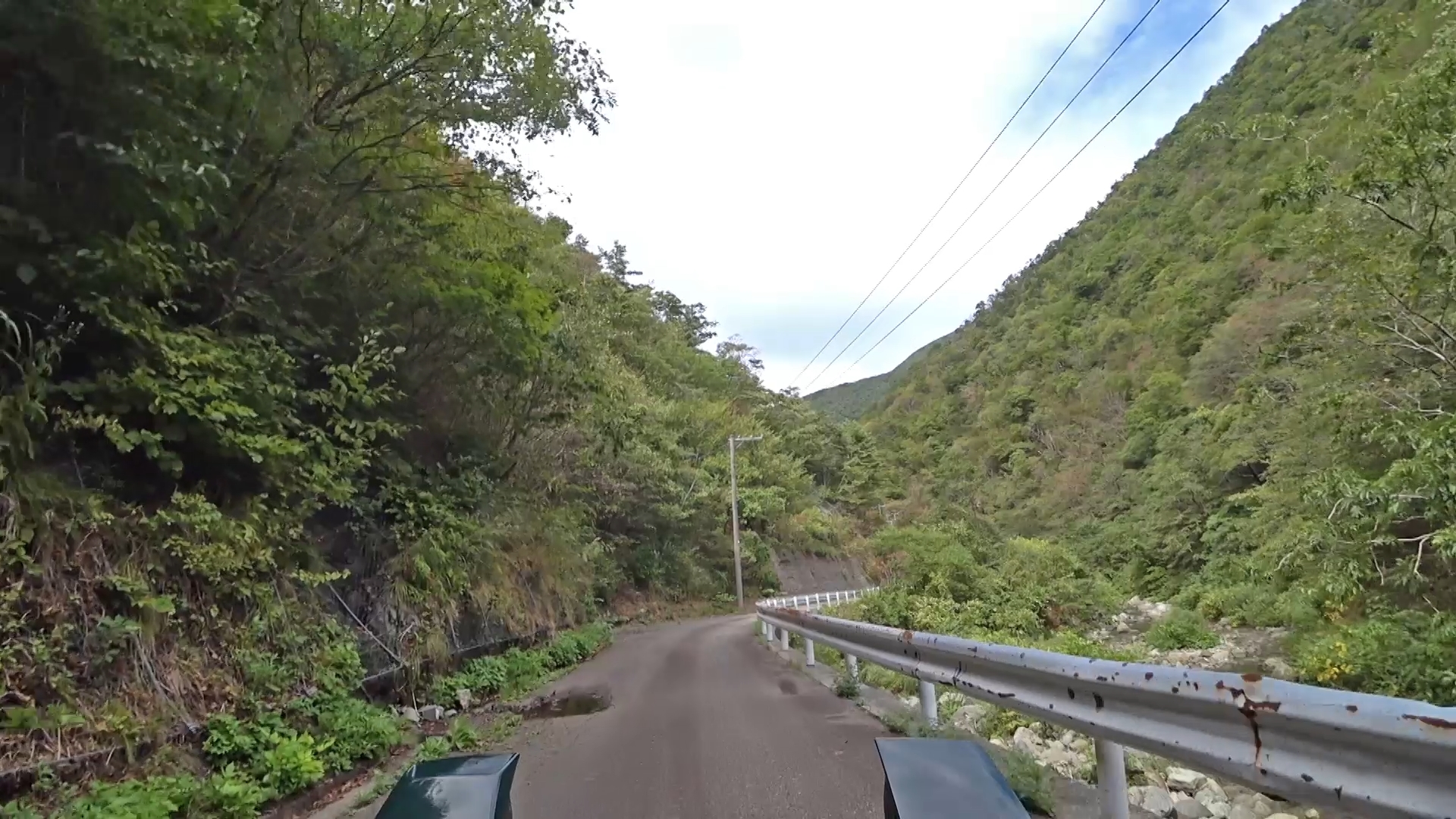 暫くするとセンターラインが消え、A狭路区間が入り混じる区間になります。(狭路区間はドンデン山を越え、ゴール地点手前まで続きます。)