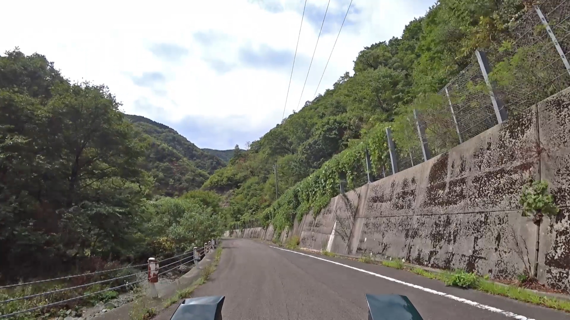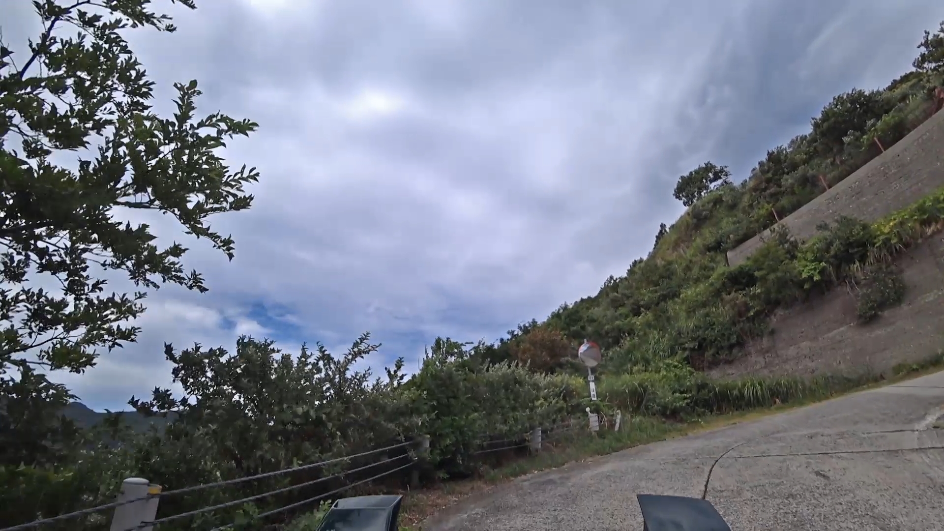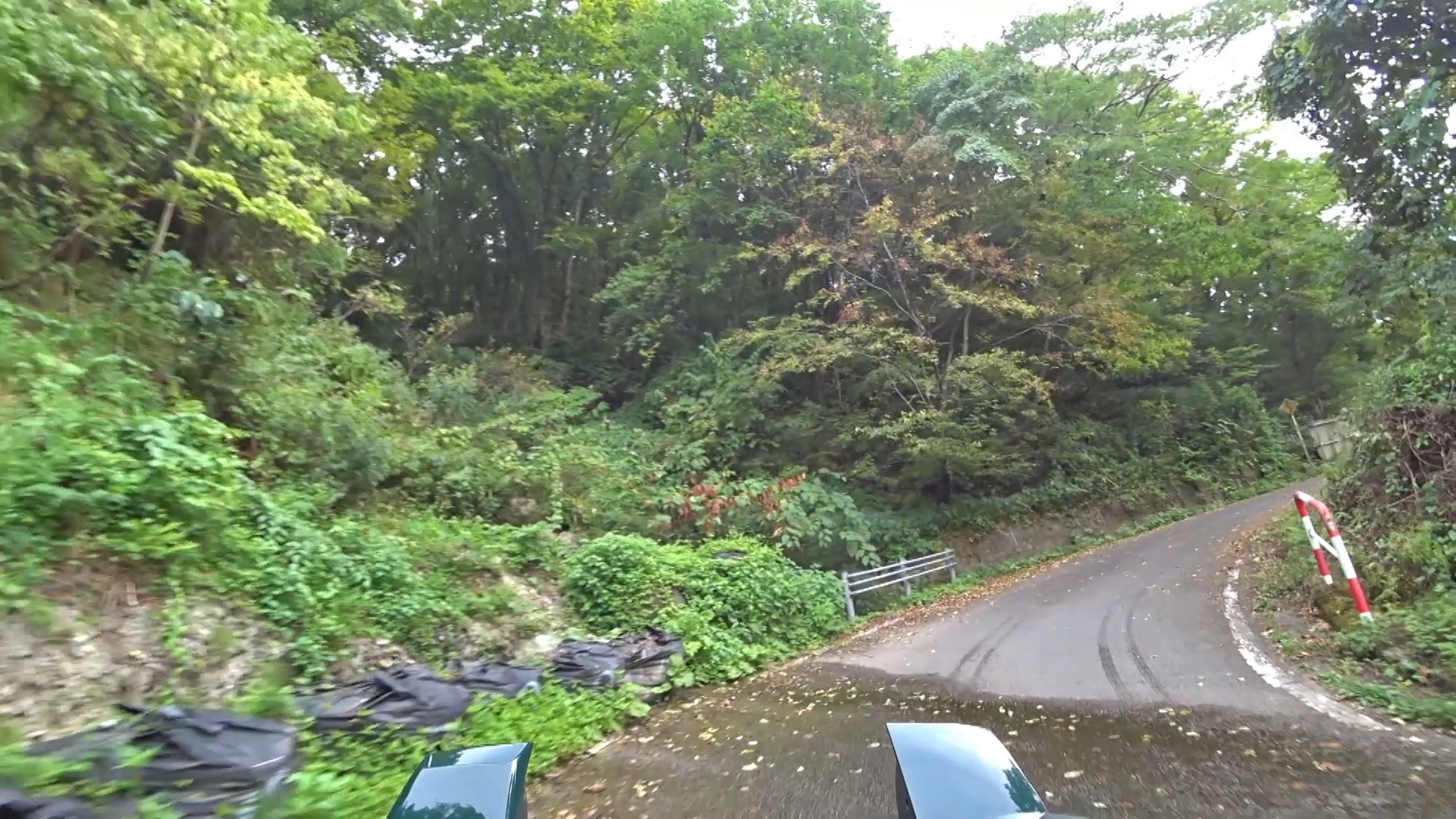 登り側(南側)に比べ、幾分穏やかになった印象ですが、狭路、急カーブ・急勾配は続きます。