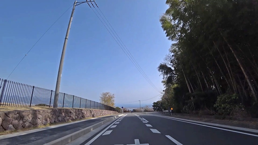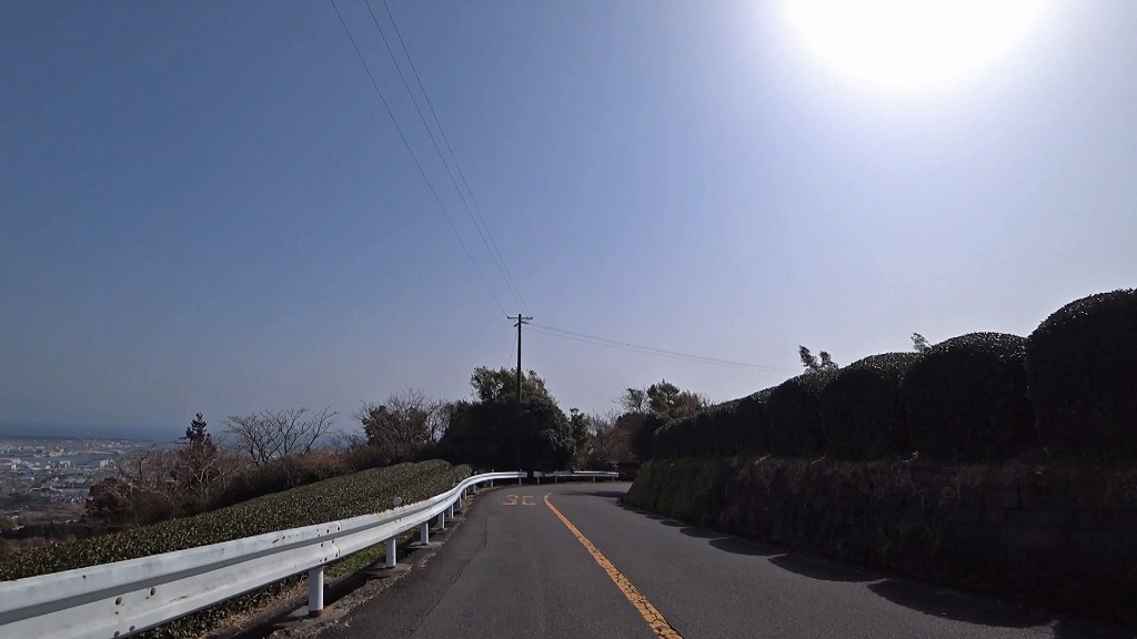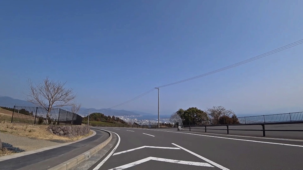 今回はこの日本平さくら通りを頂上にある日本平の碑脇(静岡県静岡市清水区)の交差点から降って行き、静岡県静岡市清水区にある静岡県道198号駒越富士見線との交差点までの約5kmのドライブコースです。
