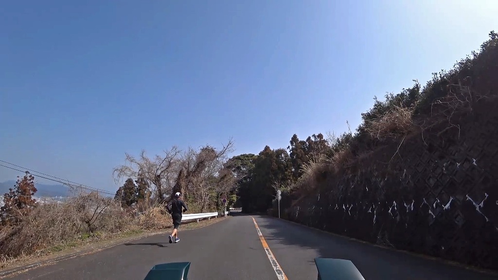 他の2つの道に比べ、道幅が狭く走りづらい印象の道。