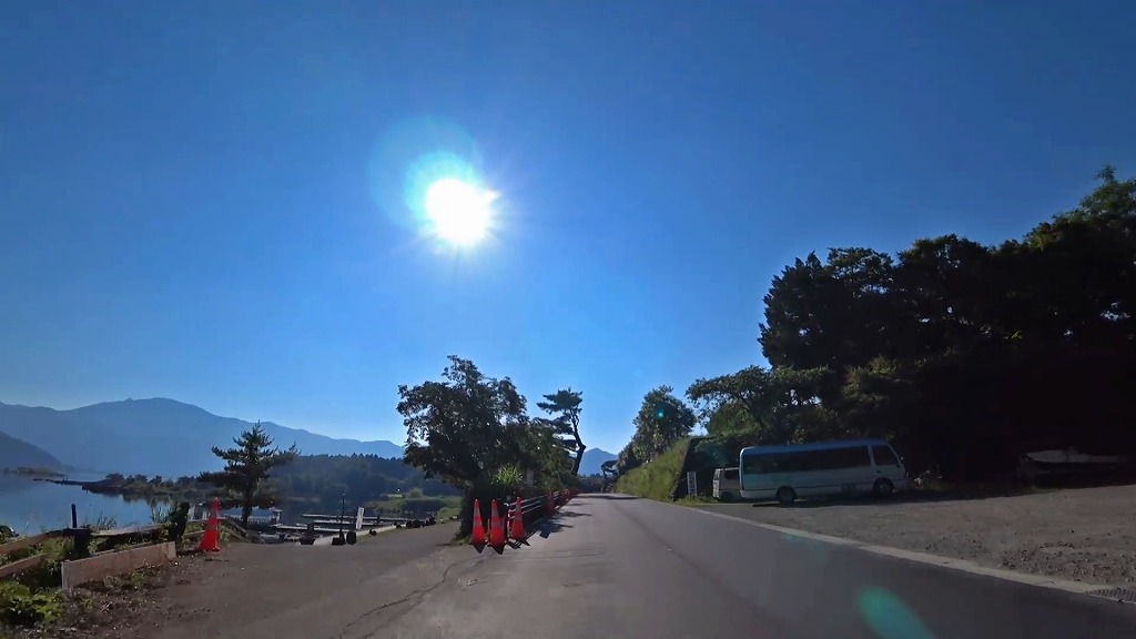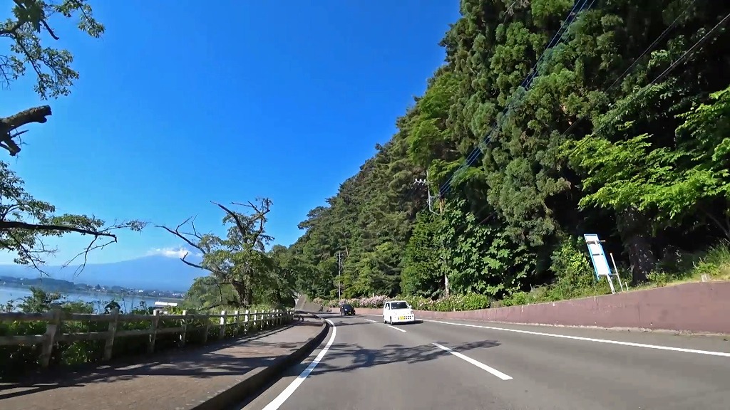 他の富士五湖と比べ、綺麗に整備された道が目立つ反面、道幅の狭い場所も点在しており、湖を一周するドライブにはあまり向いていない印象でした。