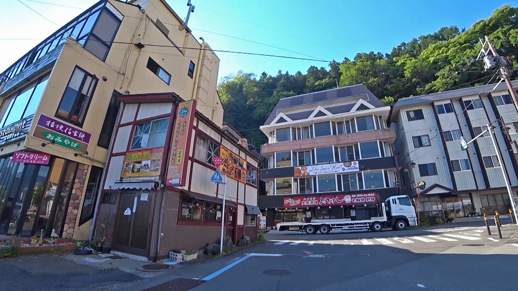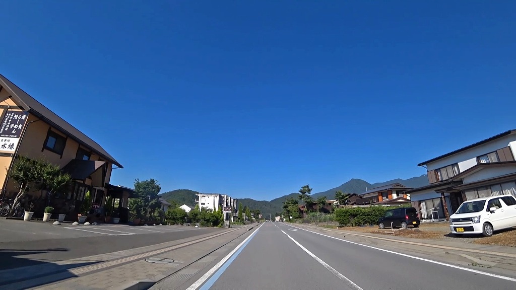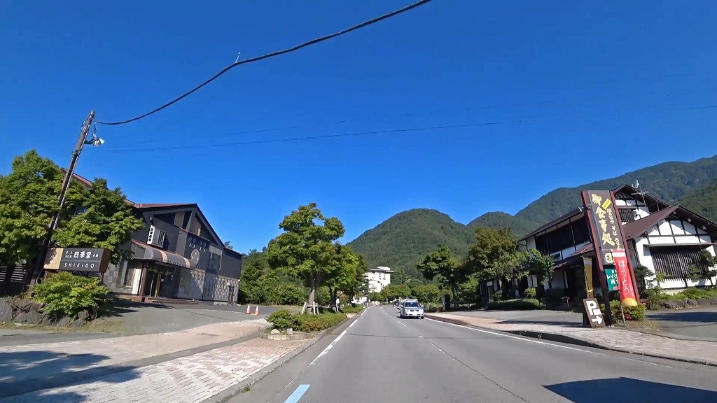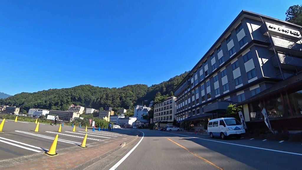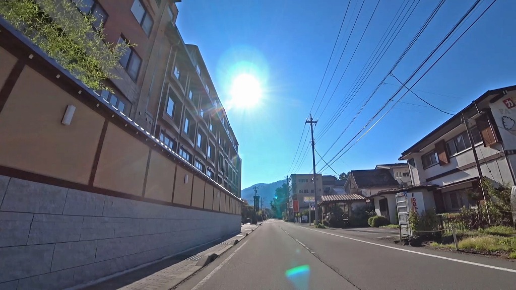 要所要所では素晴らしい道があるものの、宿泊・観光・商業施設が多くあり、人や交通量が多い印象(動画は平日の朝なので少な目)。