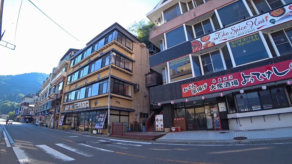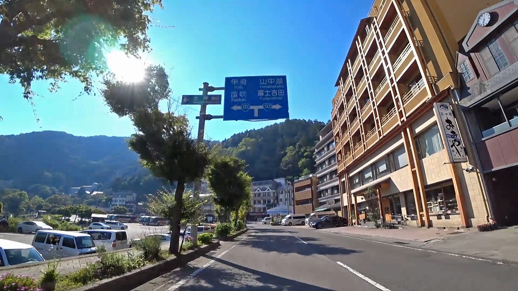 そのまま湖の東側へと向かうと、次第に活気が増し、多くの宿泊施設や土産物店、飲食店が並ぶメインストリートへと入ります。特に河口湖大橋や国道137号周辺では観光施設が密集しており、交通量や歩行者が非常に多いため、休日は特に渋滞が発生しやすく、慎重な運転が求められます。