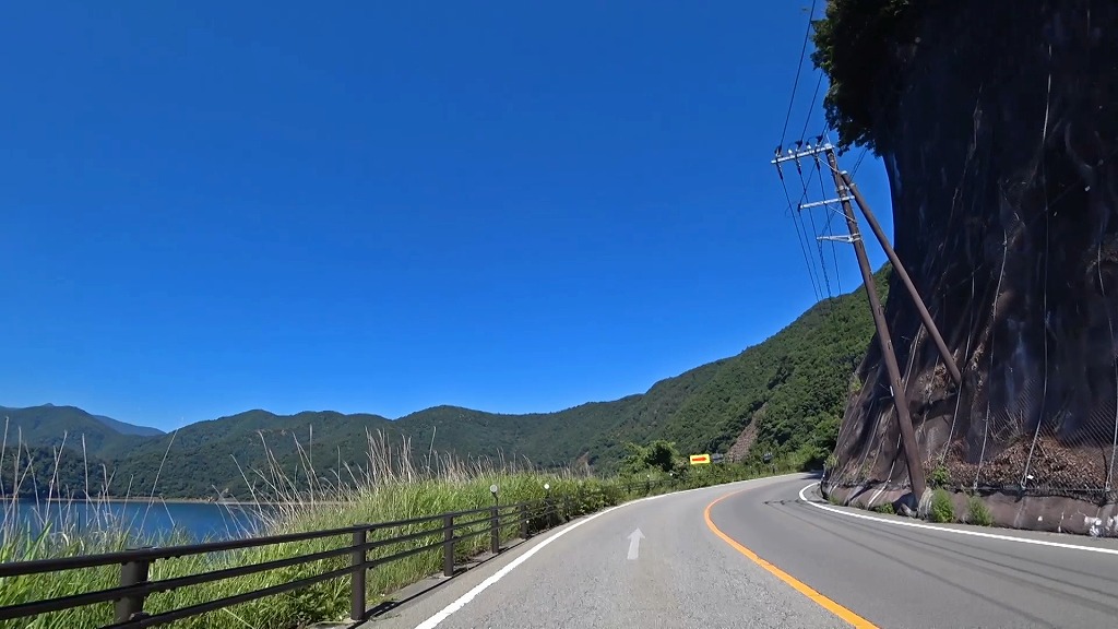 本栖湖から西へ下り、富士川沿いを走る国道52号(富士川街道)まで走る本栖みちです。
