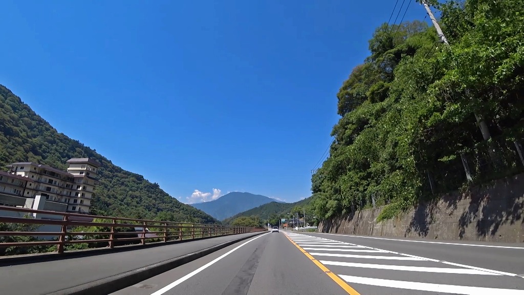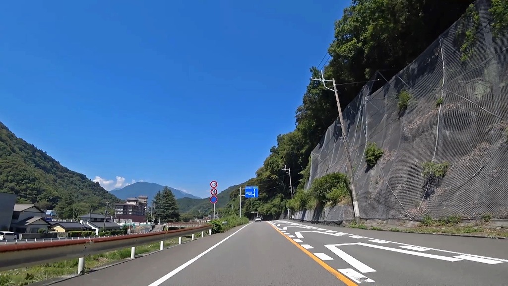 三桁の300番台の国道ですが、走りやすい道。ただ、途中には甲州いろは坂と呼ばれる様な急カーブなカーブが続く場所もあり。