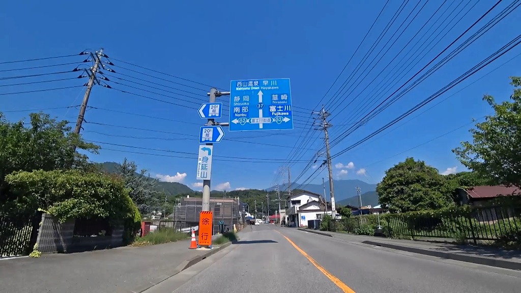 そして最後は南巨摩郡身延町にある国道52号との交差点(上沢交差点:信号あり)にて(G)ゴール。