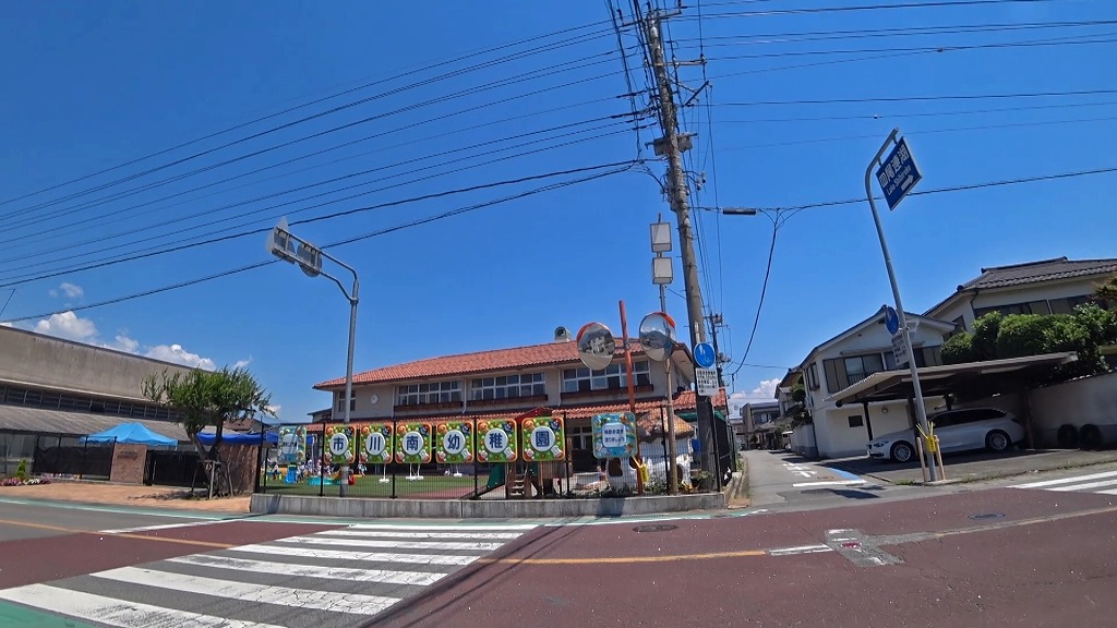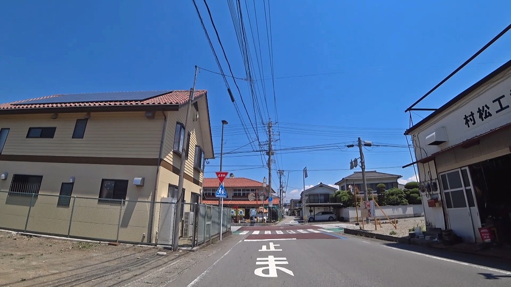 場所によっては民家と道の距離が違いのでE歩行者注意