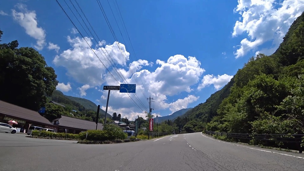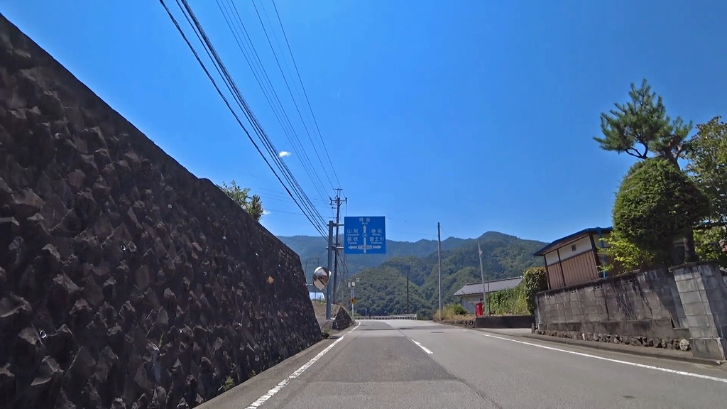 (S)スタートは山梨県西八代郡市川三郷町にある山梨県道3号甲府市川三郷線との交差点(芦川駅入口交差点:信号あり)から。