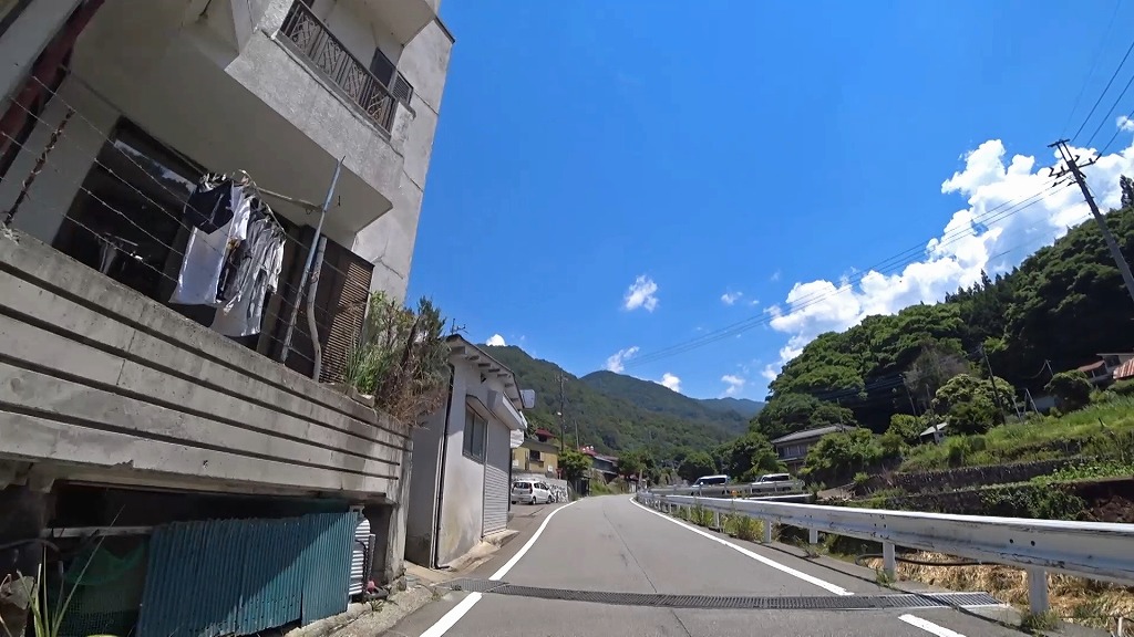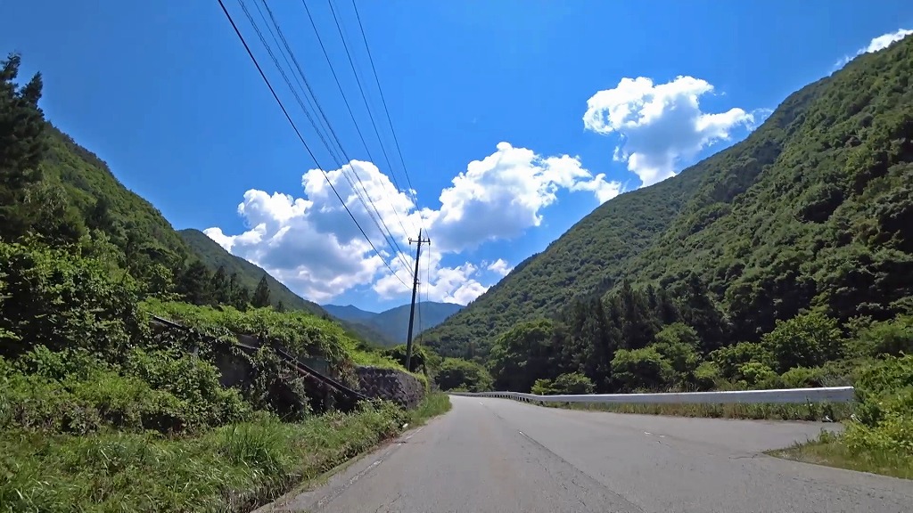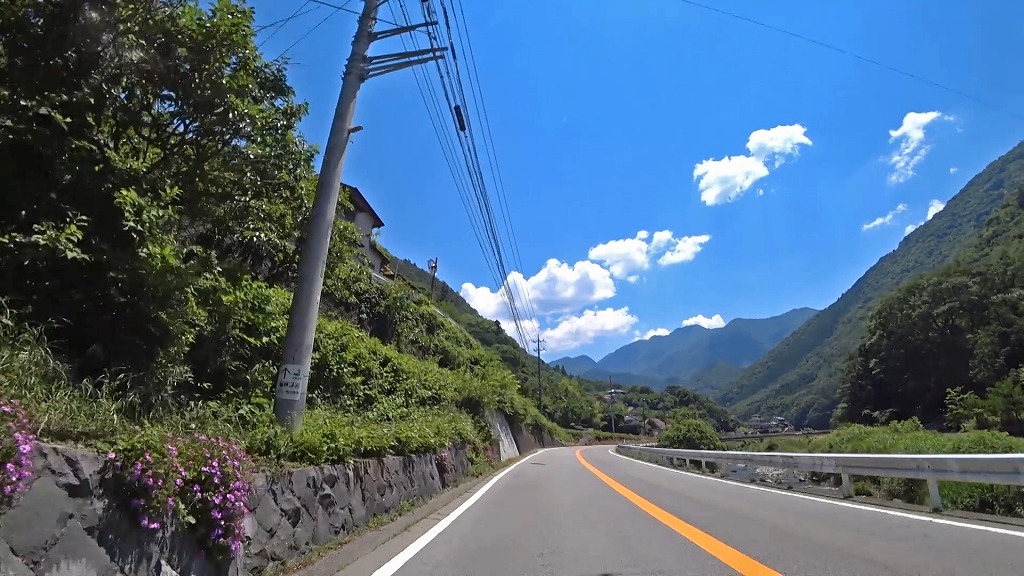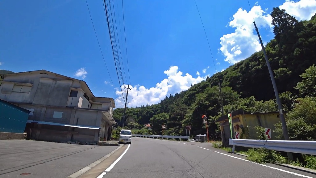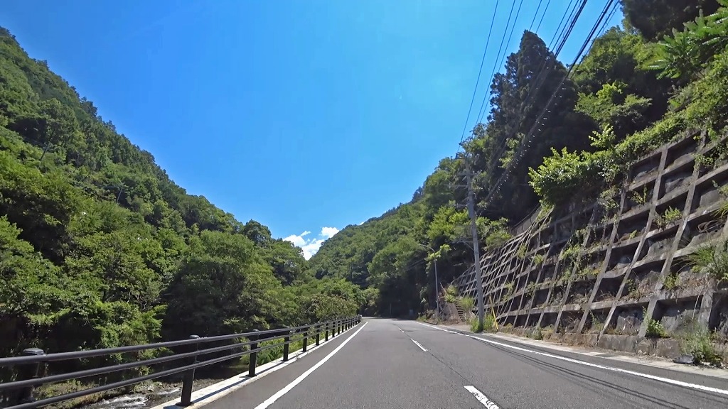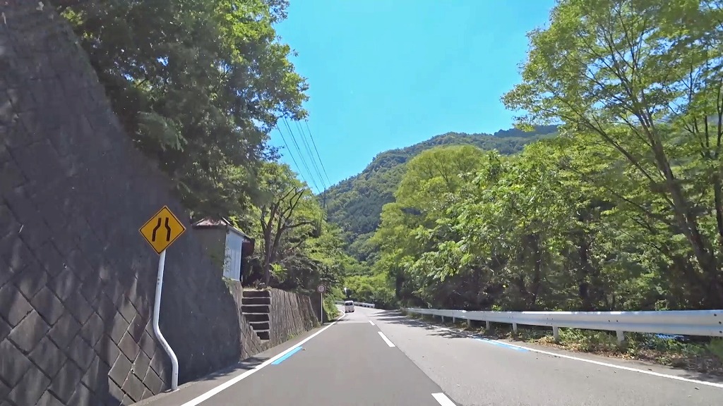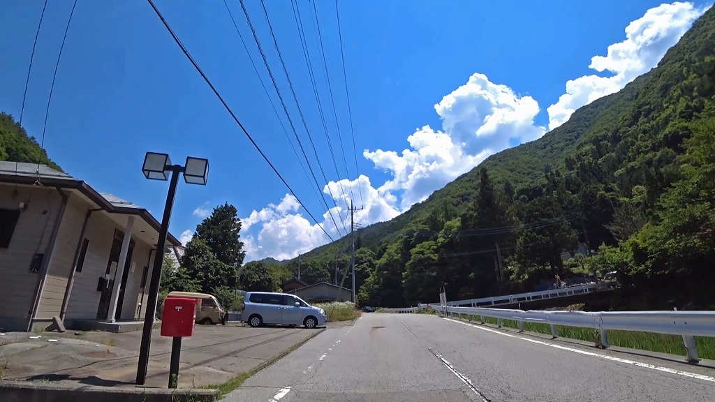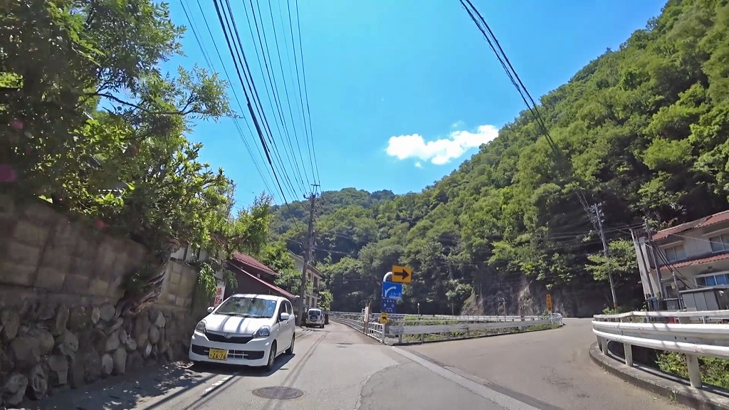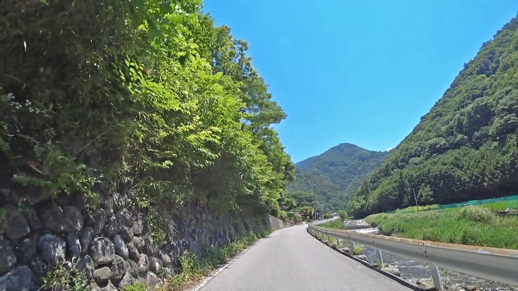 川沿いを走る気持ちの良い道ですが、時折現れるA狭路・急カーブには注意