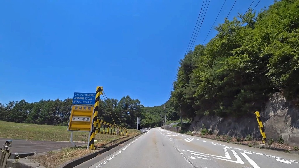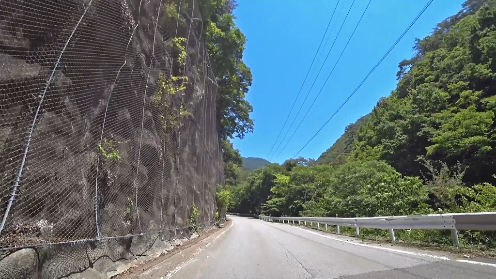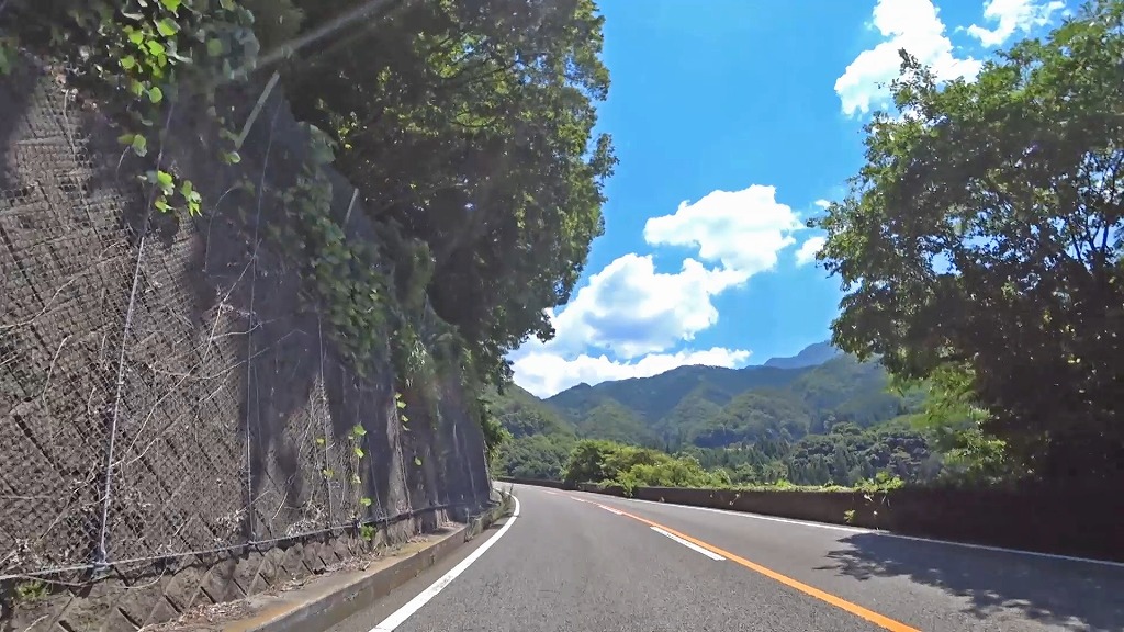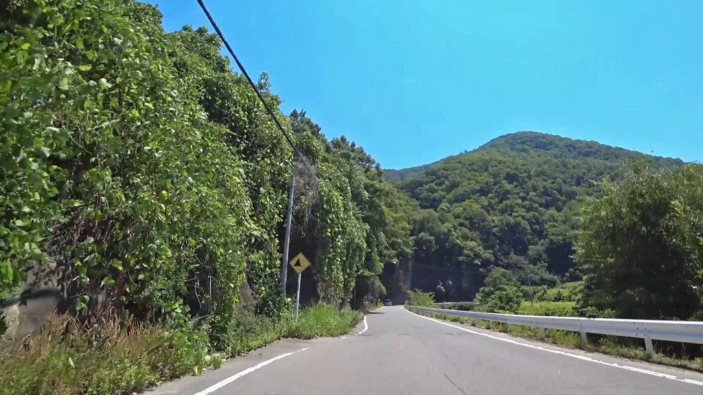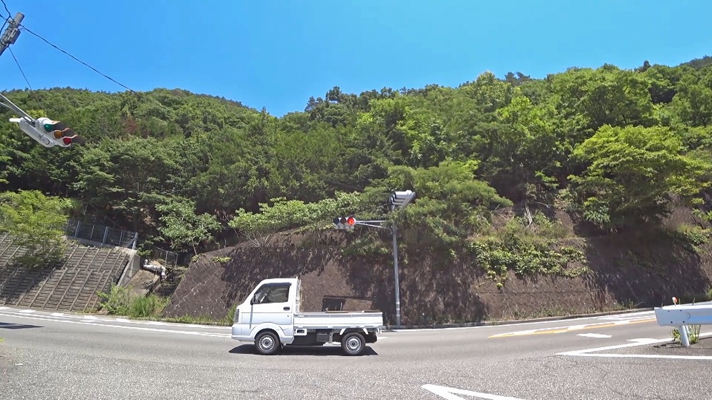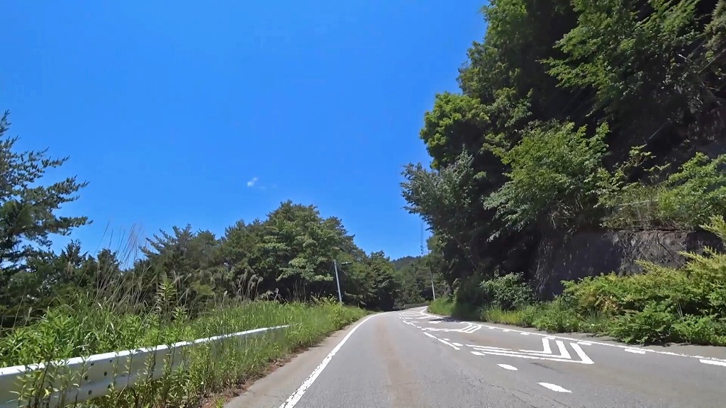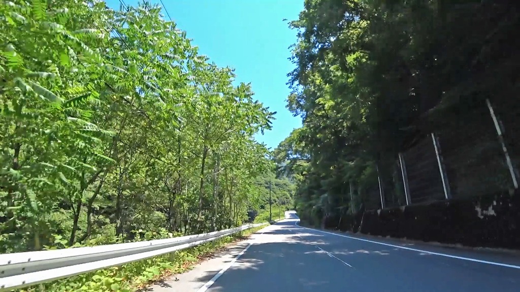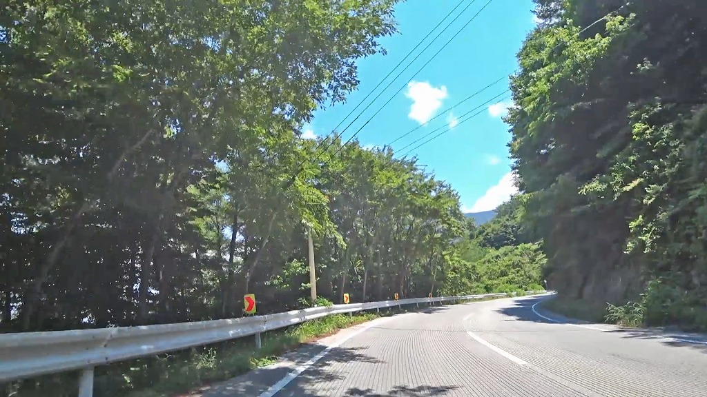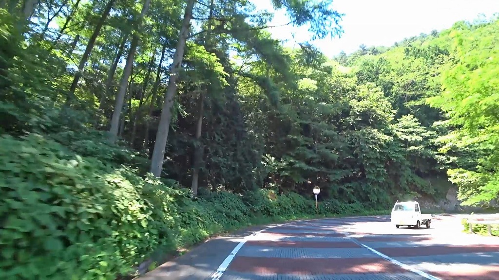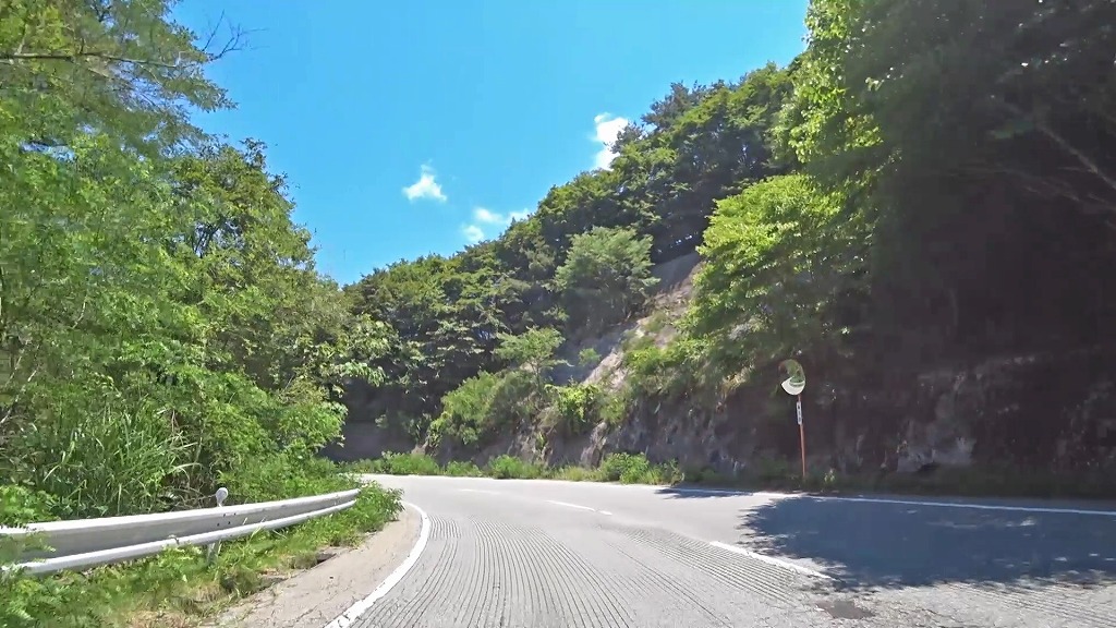 峠を越える道はこれまでの道とは違い、綺麗に整備された片側一車線の道になり、急勾配・急カーブの続く道へ。