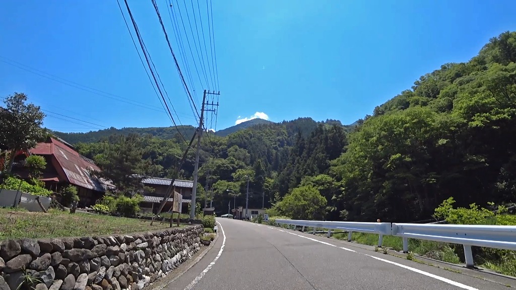市川三郷町からの道は、芦川沿いを進み、集落を結ぶような長閑な道。