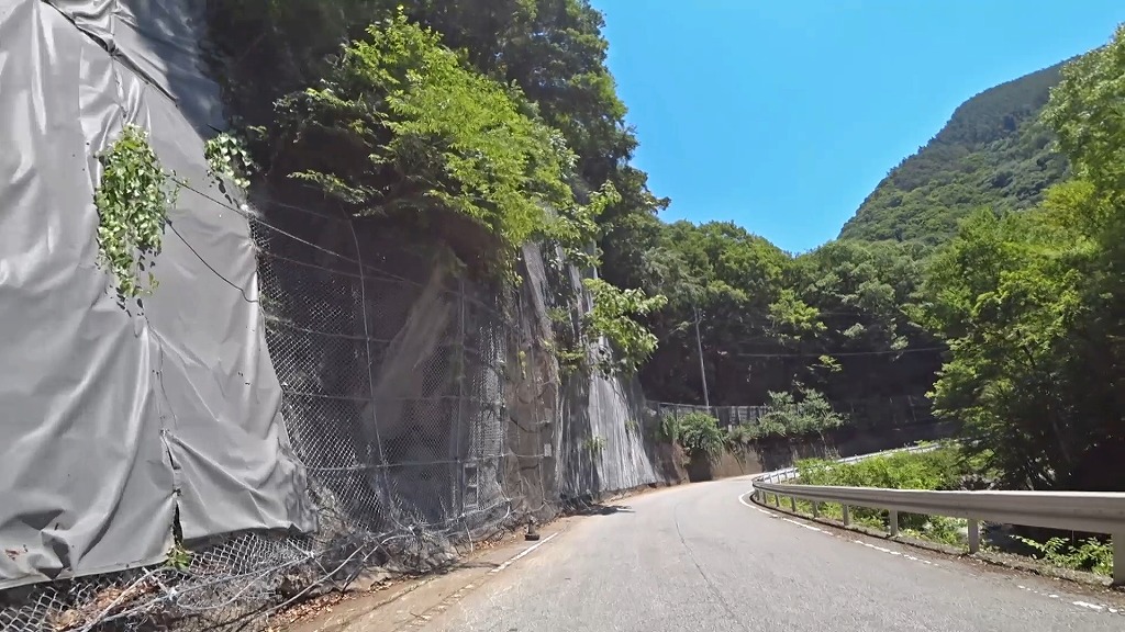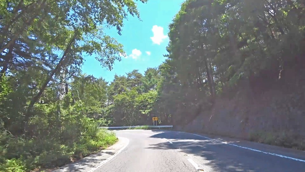 急カーブの区間を過ぎても暫くは長い下り坂なので、スピードには注意を。