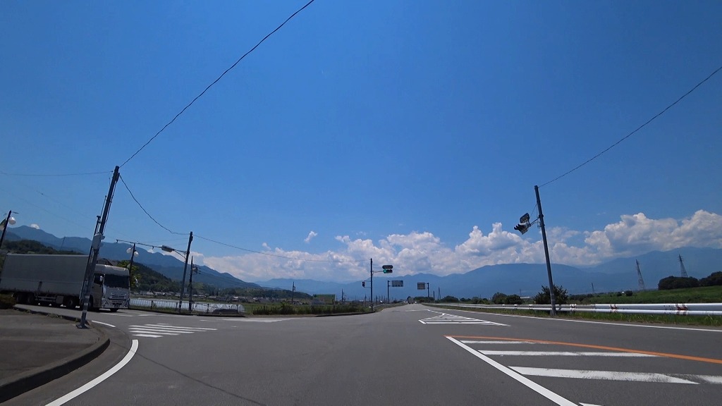 さらにその先の道を進み同じく中央市にある交差点までの約5.5kmのドライブコースです。