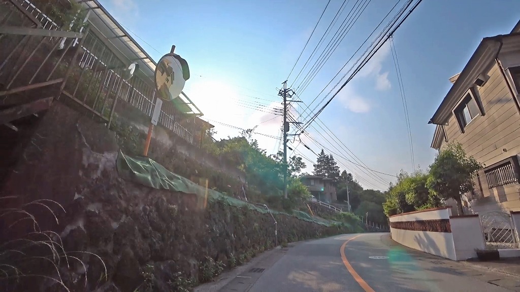 甲府市の中心へと降って行く道は、つづら折りの急カーブ。だけではなく、路面にはこれでもかと言う位、溝が掘ってあり車の振動が凄まじい道です。