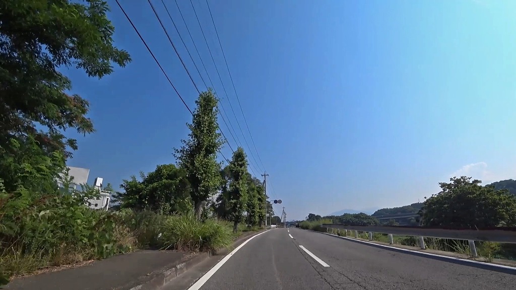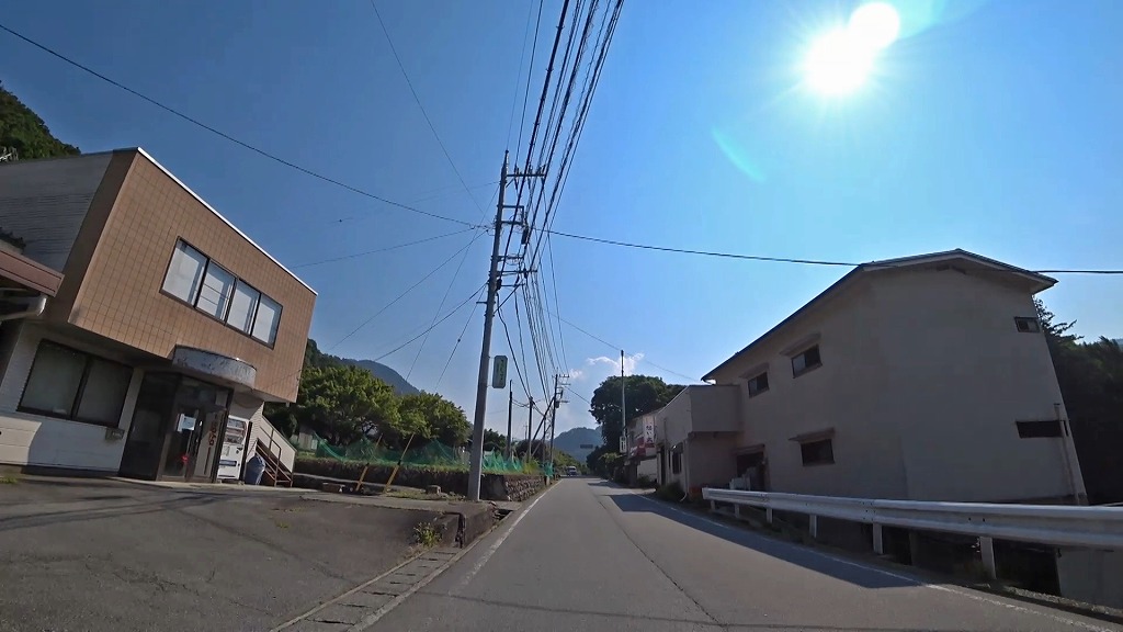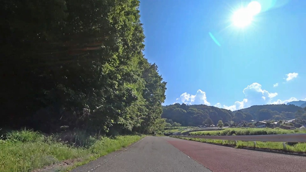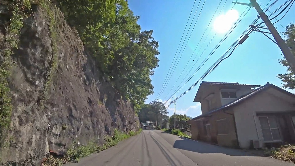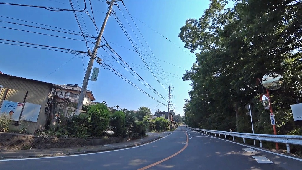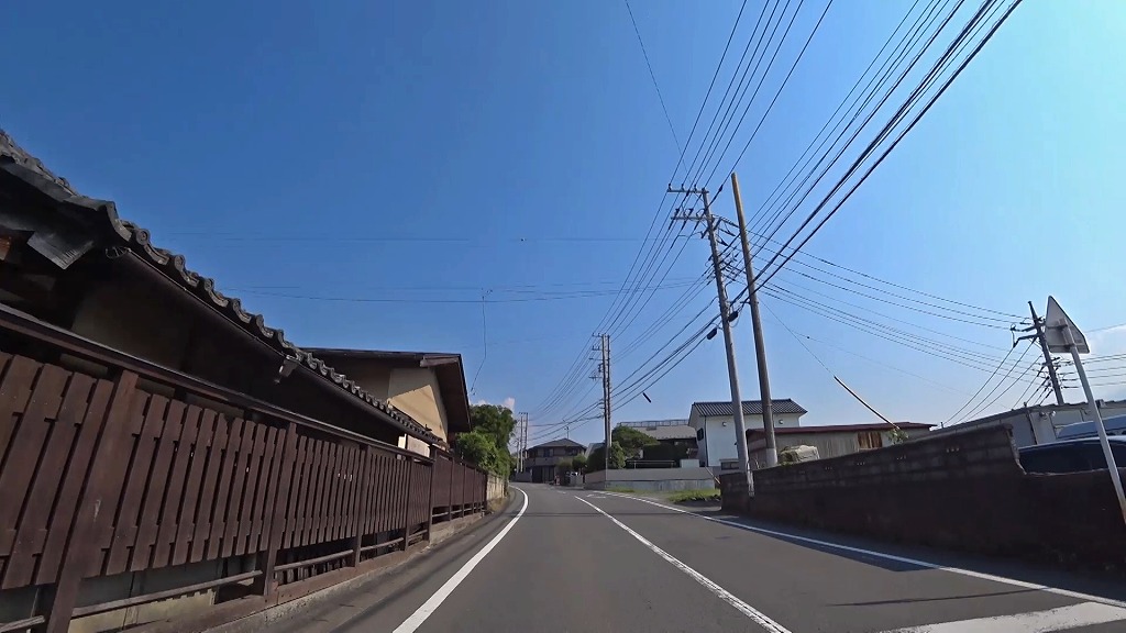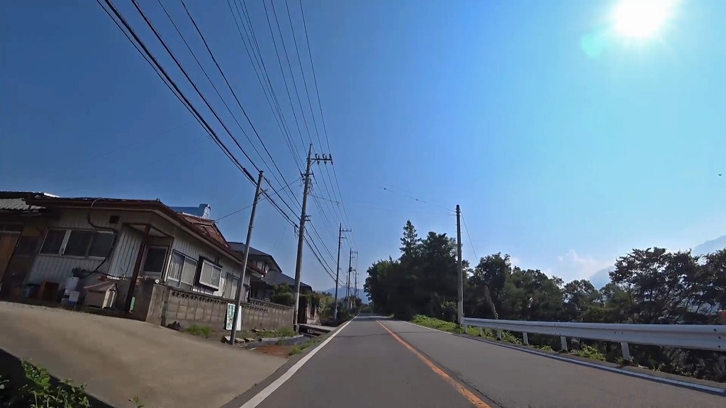 道沿いには民家も多く建ち並び、センターラインが無いやや狭い場所がある道です。