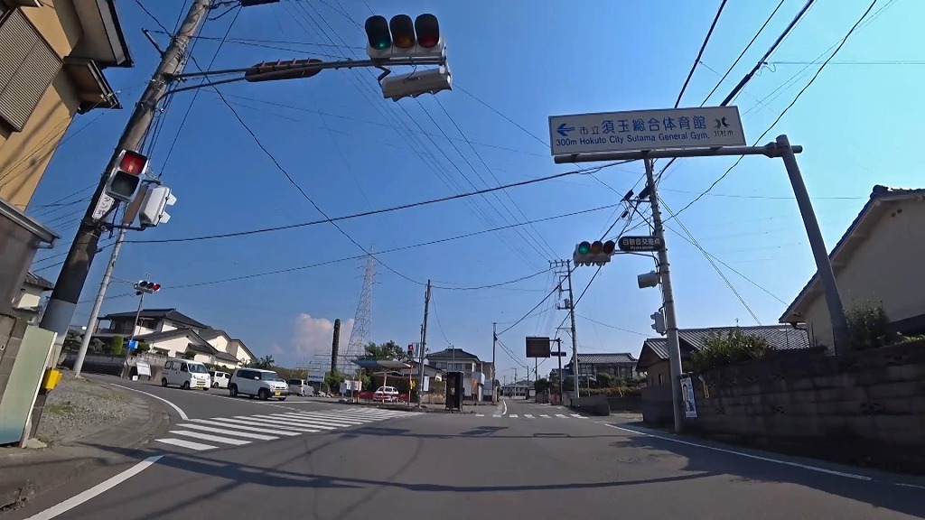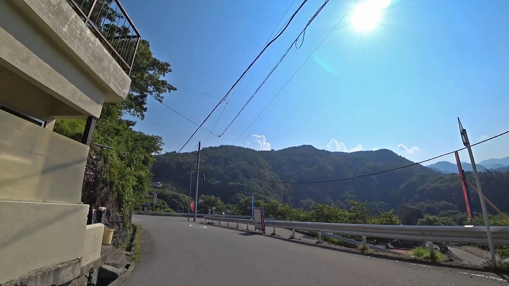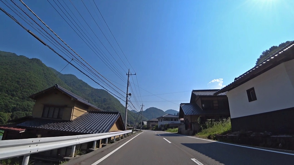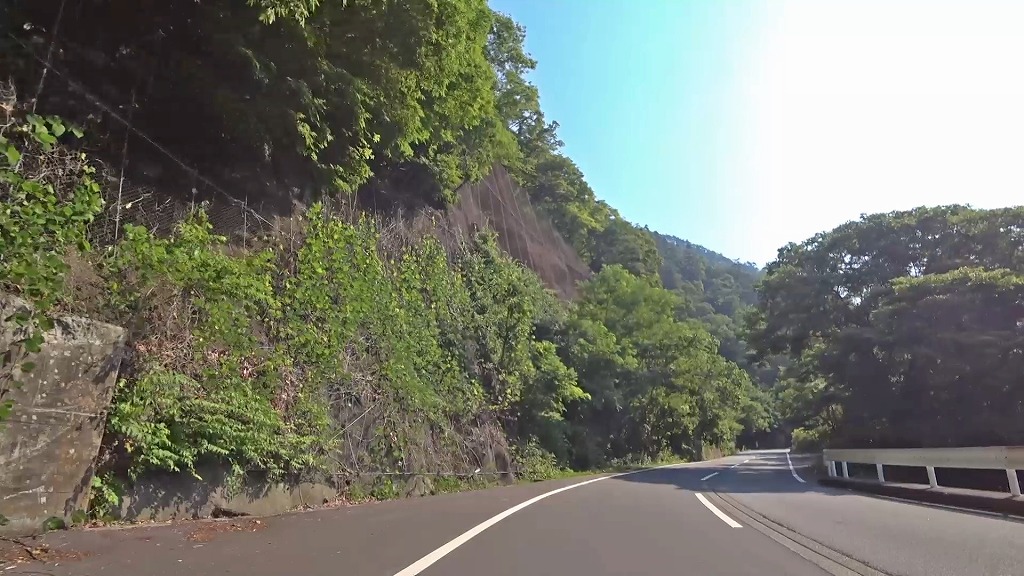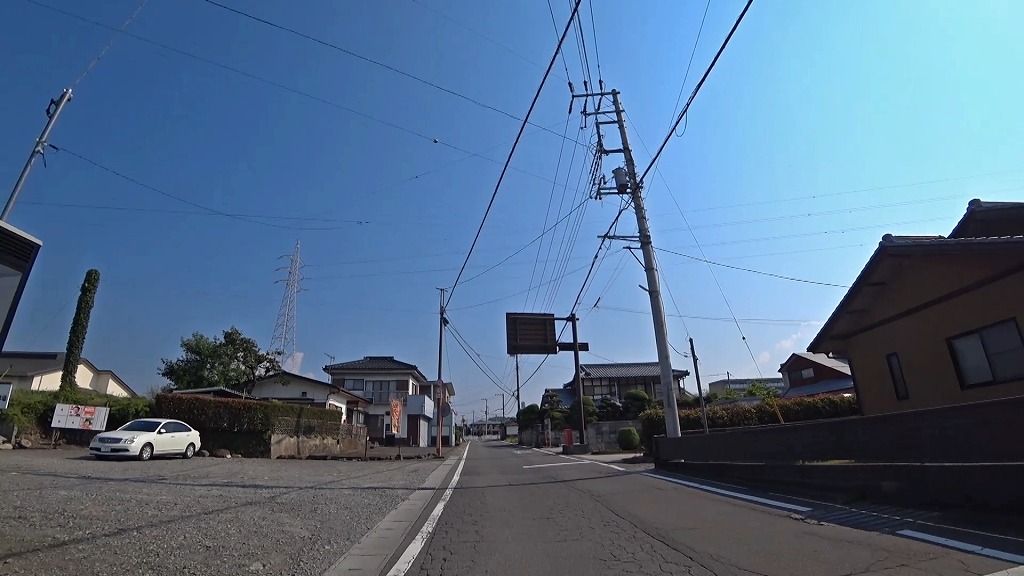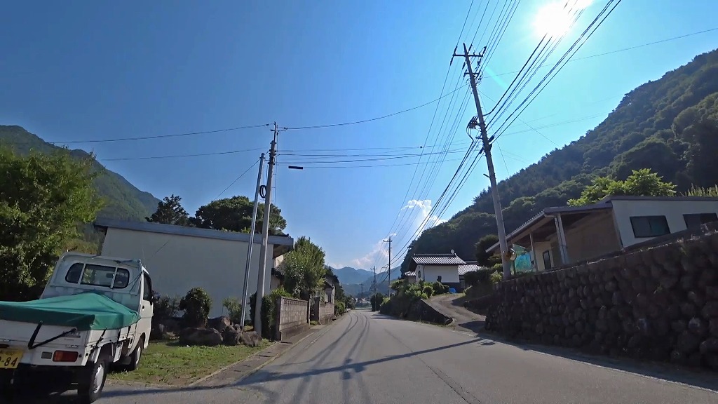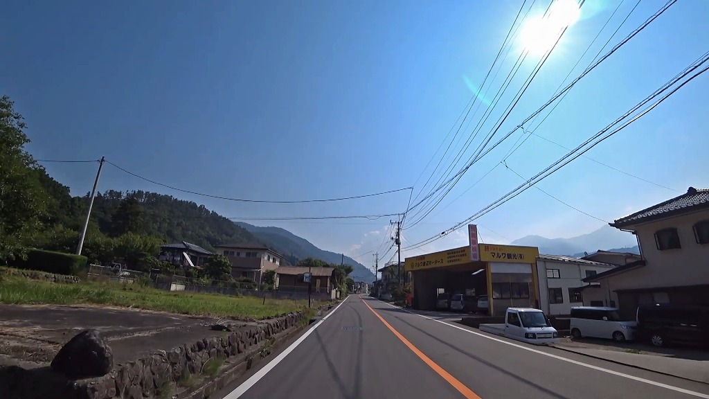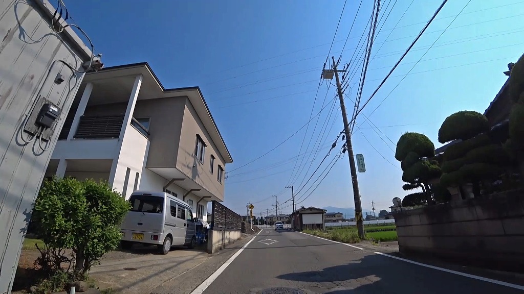 道沿いには民家も多く建ち並び、センターラインが無いやや狭い場所がある道です。