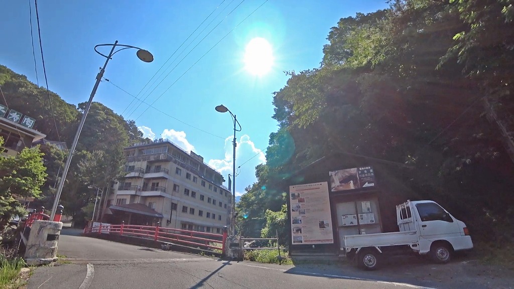 また増富温泉街では入り組んだ細い道となっており、歩行者、対向車には十分注意が必要な道でした。