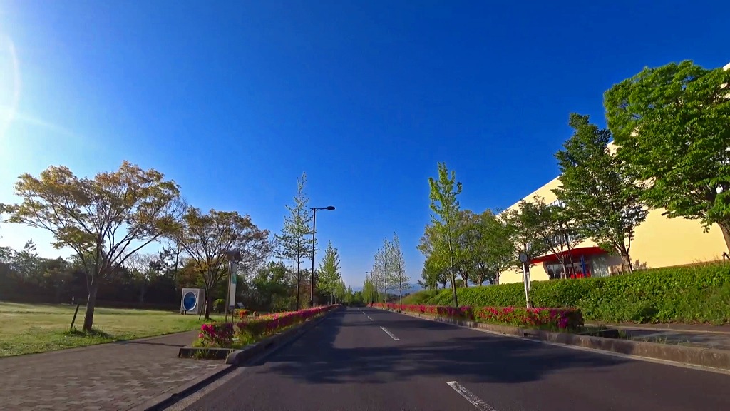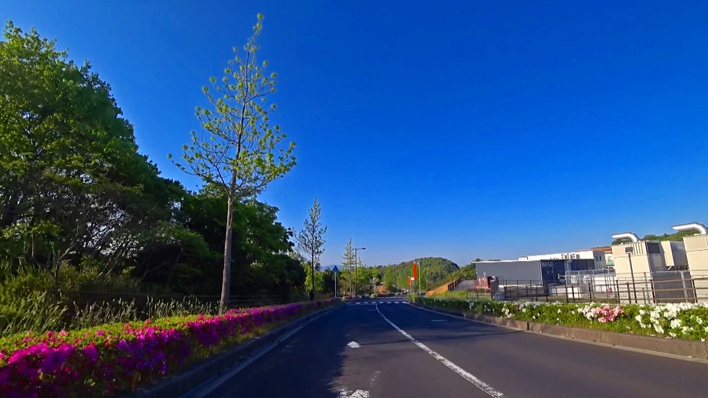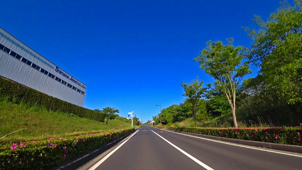 そして今回は北山農免農道先にあるソフトビジネスパーク島根の道も走っており、同じく片側一車線の道ですが、綺麗に整備された道や沿道も相まって走りやすい道になっています。